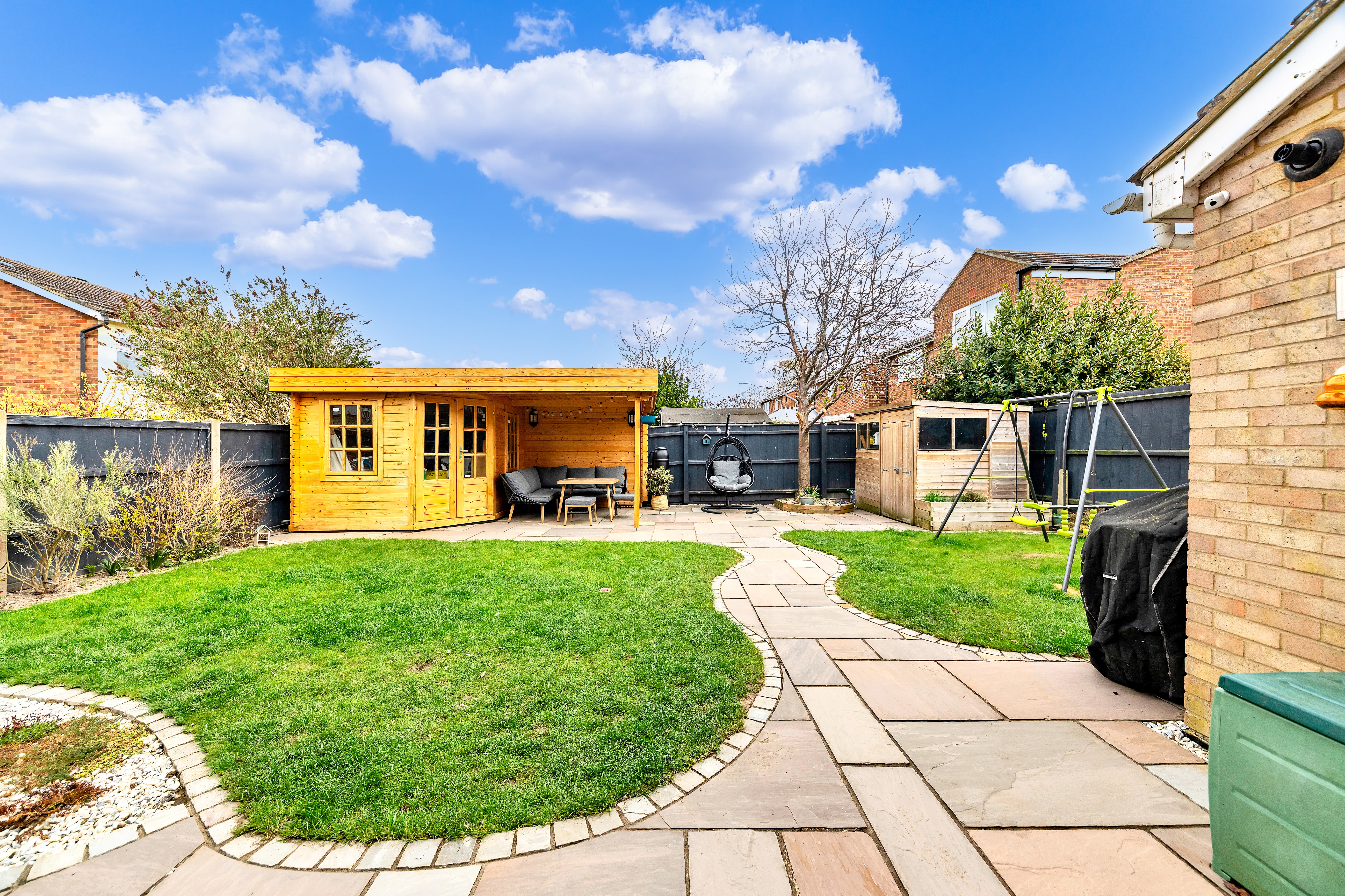 Outside, to the rear, the landscaped garden is a very good size, fully enclosed by fencing and offering a wonderful space to sit and enjoy the warmer weather. It is laid to lawn and paved patio, providing ample space for garden furniture, cooking meals al fresco on the BBQ and entertaining guests. There are stunning borders of well-tended plants, flowers and shrubs, and a beautiful rockery with alpine plants and a pond. A pathway leads down to another paved patio area, with access to a large summerhouse with power and lighting and with an attached covered pergola, and a shed with power and lighting.