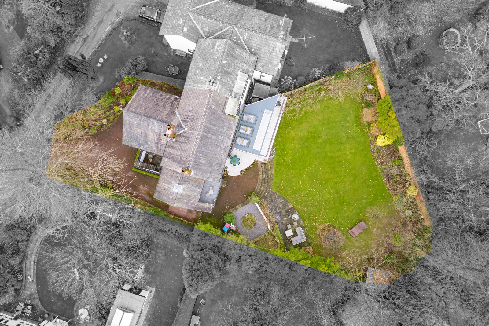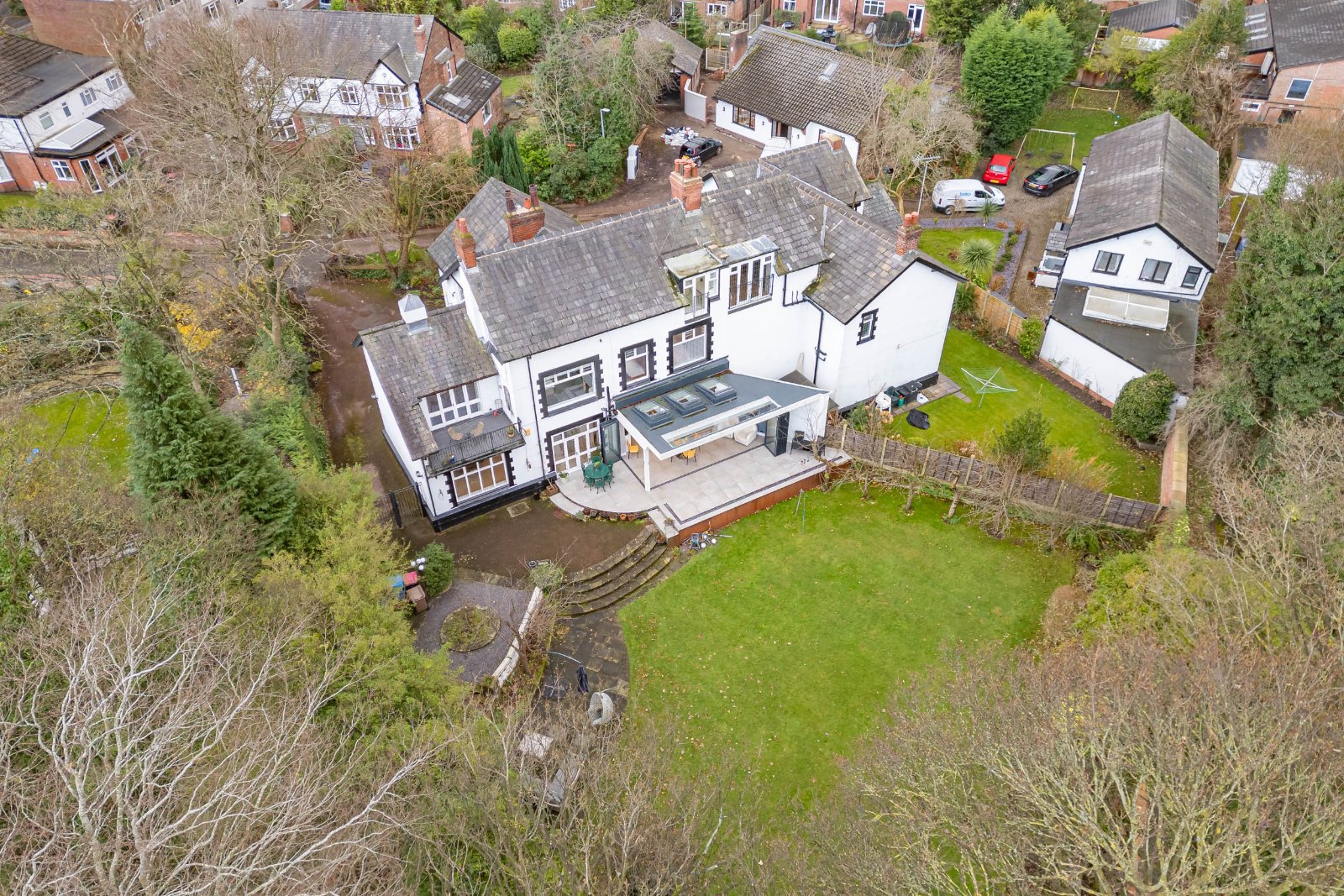 Externally, the property enjoys mature, well-tended gardens to the front and rear which offer complete privacy. The rear garden is mainly laid to lawn with established trees and a large paved terrace perfect for outdoor entertaining. A driveway provides off-road parking for several vehicles and includes an EV charging point.