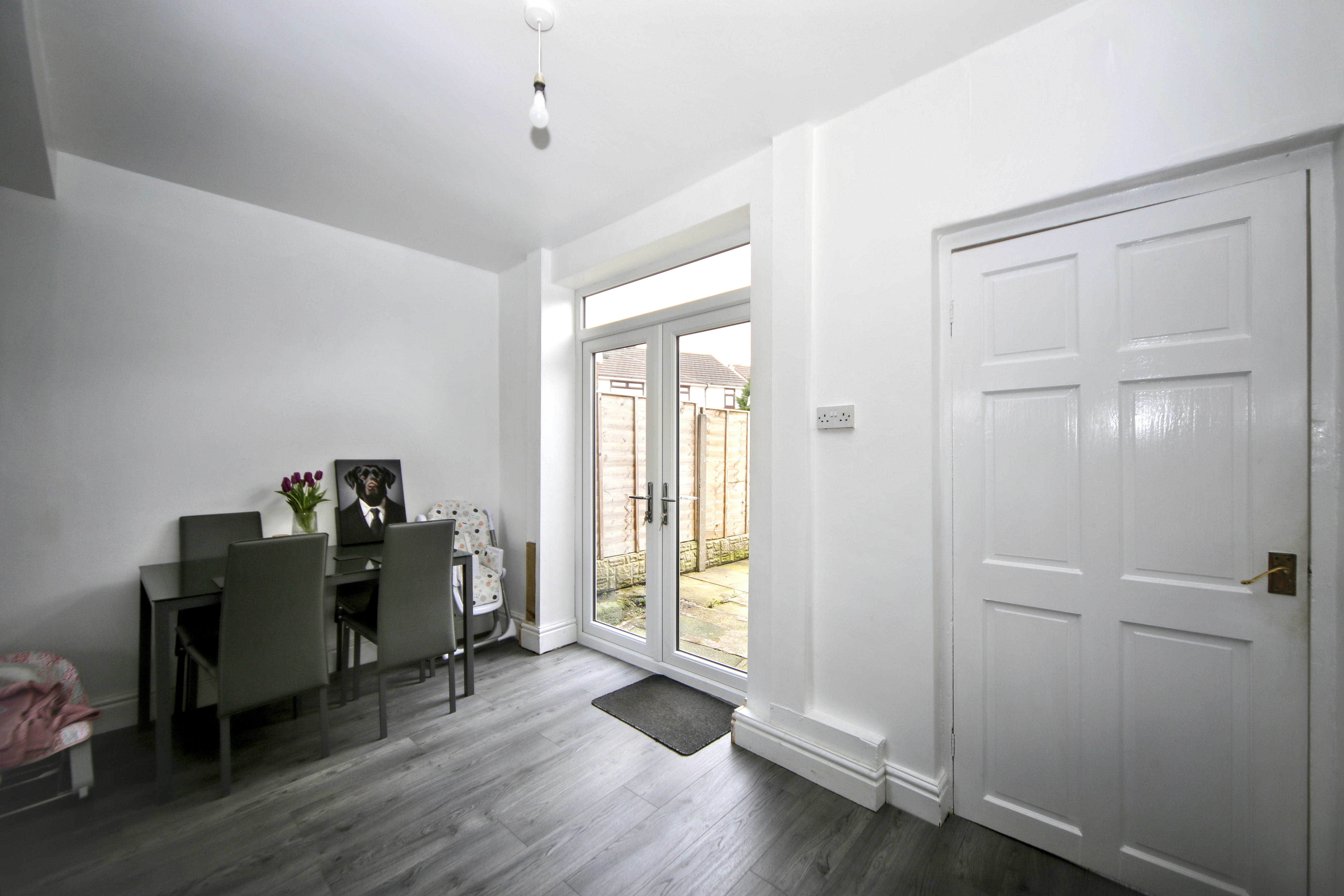 - Kitchen with newly installed back door