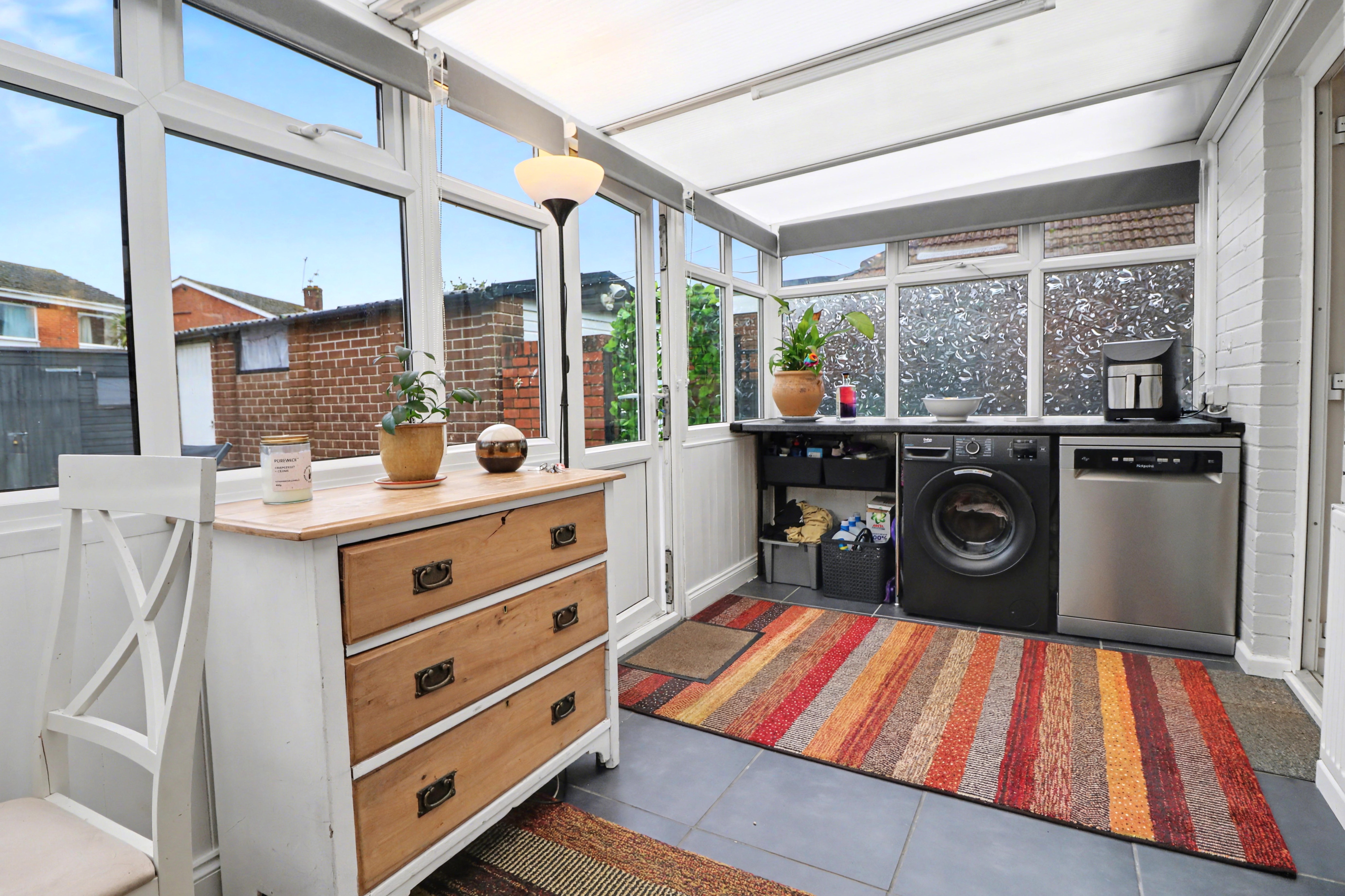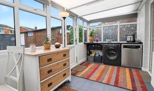 The spacious lounge is a well-proportioned room with sliding doors leading through to the conservatory which is currently being used as dining room and has a utility area to one side and a door leading out to the rear garden.