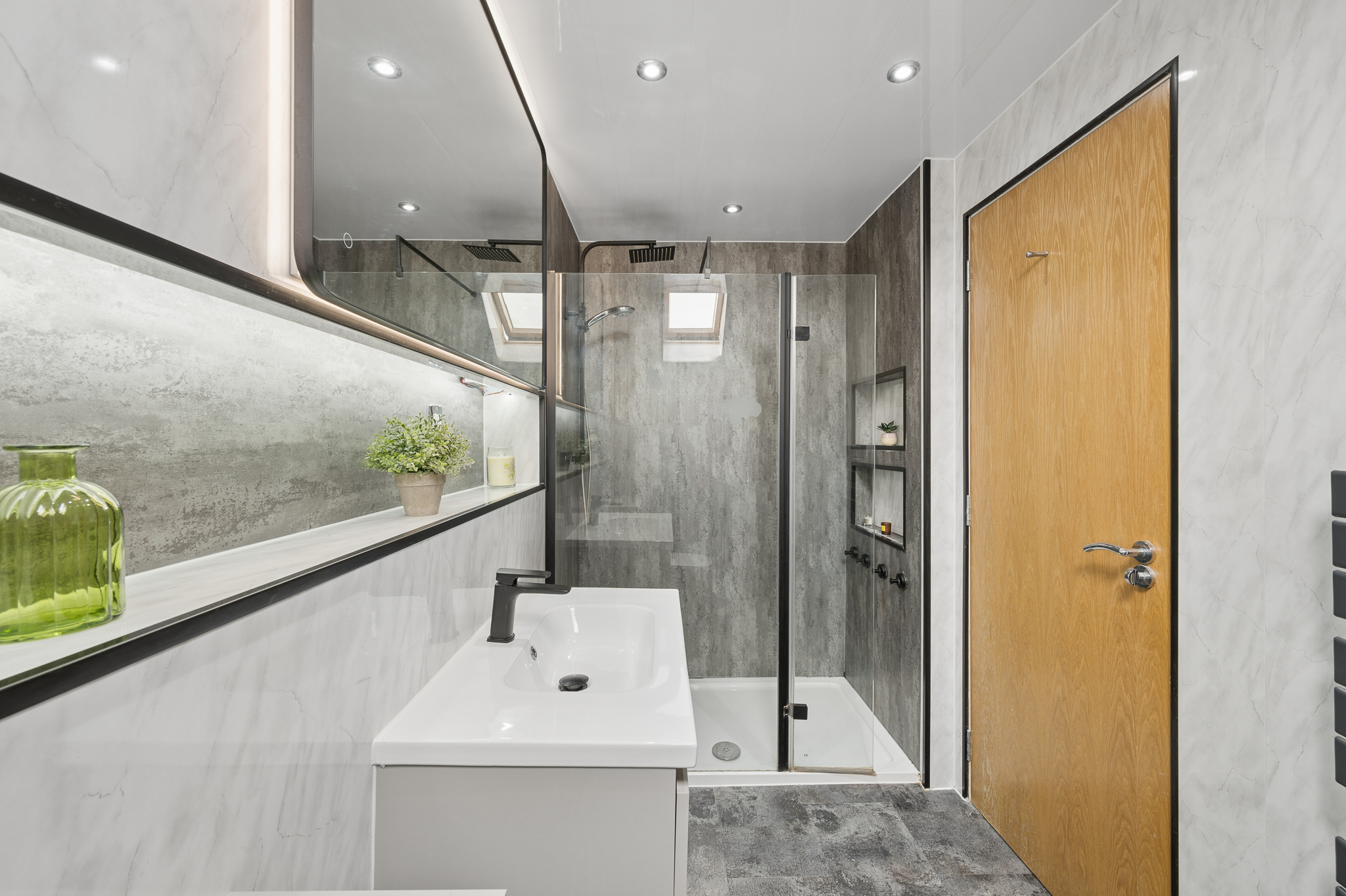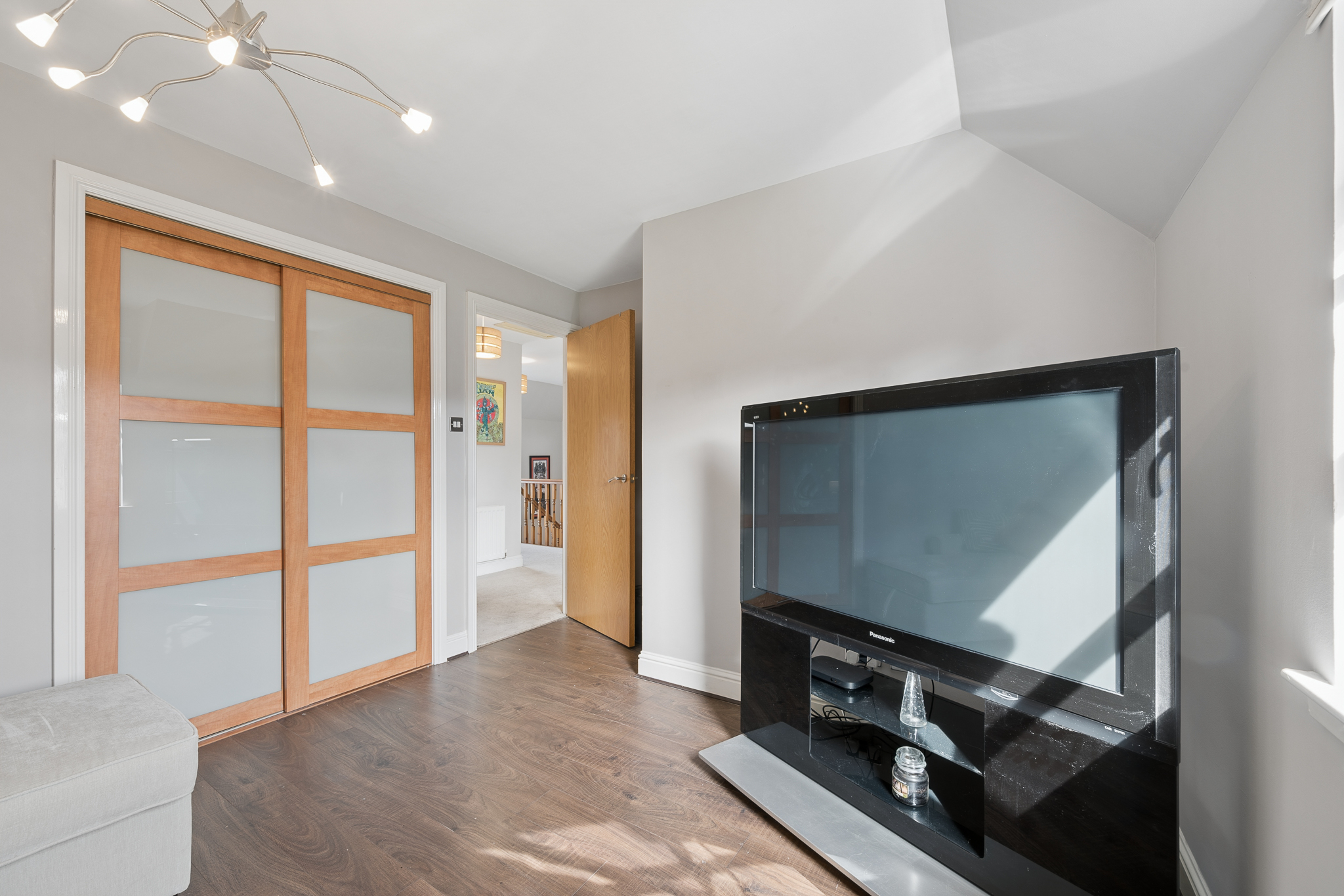 The principal bedroom is particularly impressive, offering generous proportions, fitted wardrobes and a luxurious en-suite shower room finished with sleek, contemporary wet wall panelling and high quality fittings, creating a seamless and elegant finish.