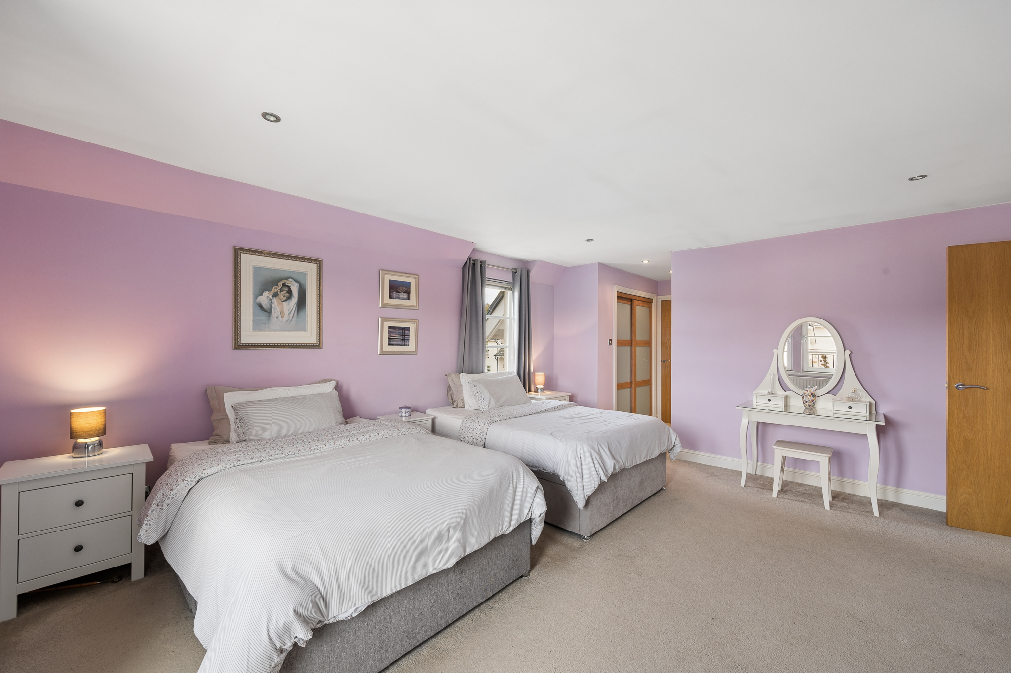 Bedroom two also benefits from its own en-suite shower room and fitted wardrobes, providing excellent flexibility for family living or guest accommodation. The remaining bedrooms are all well proportioned and notably, each features fitted wardrobes, ensuring cohesive and practical storage throughout.