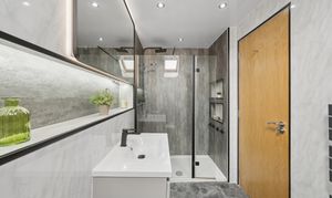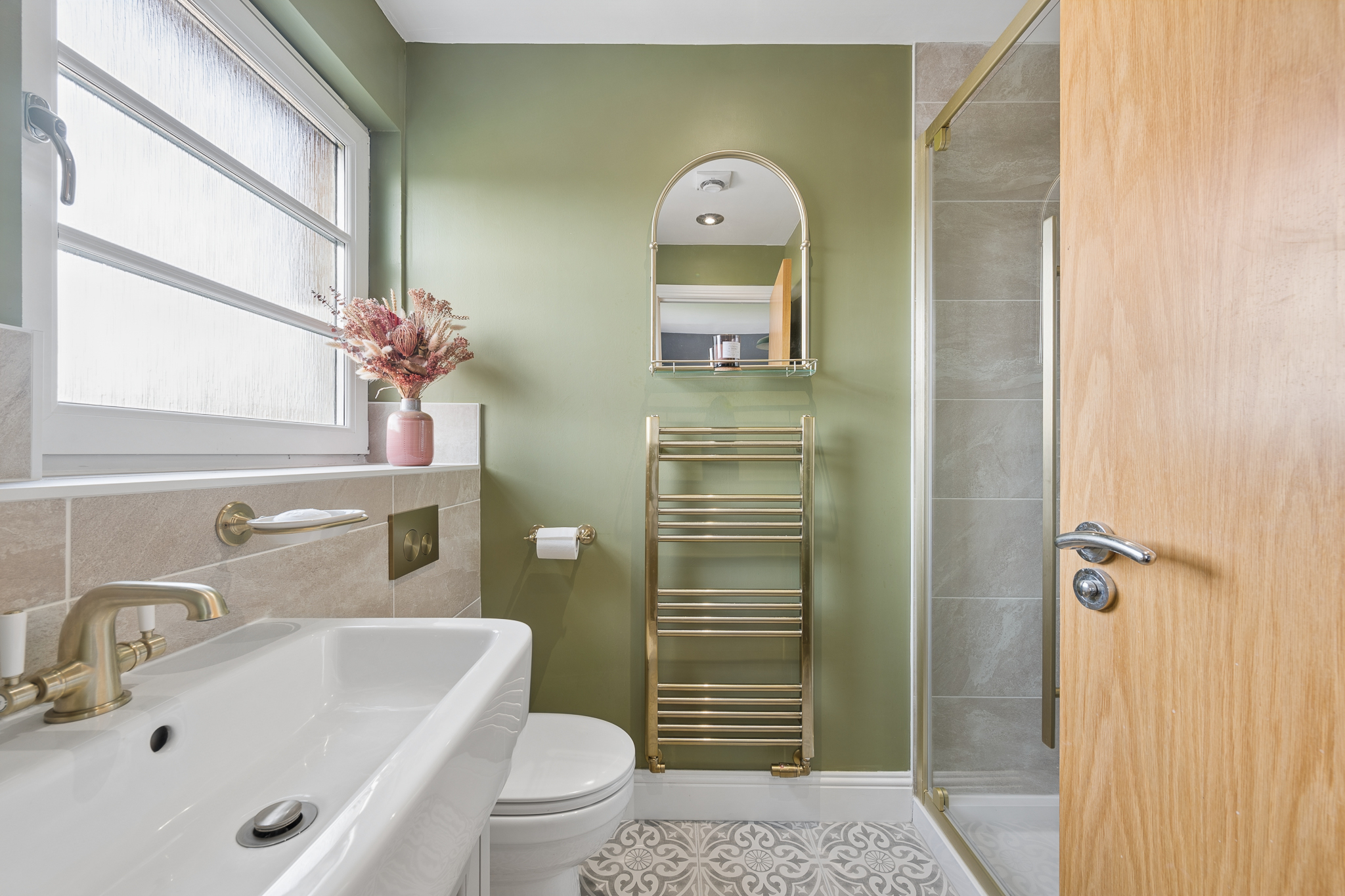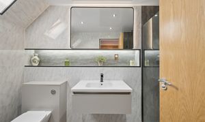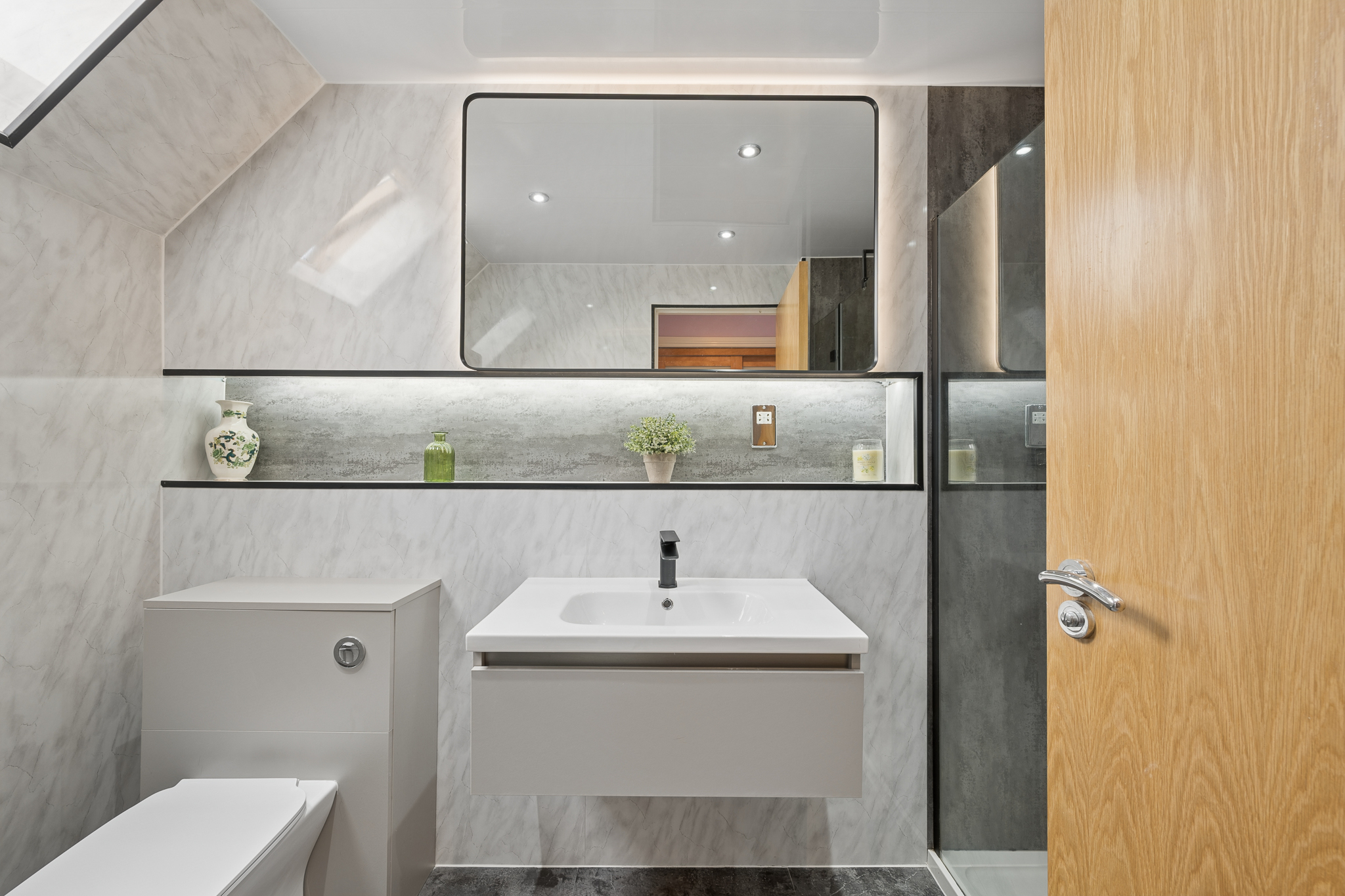 The family bathroom is finished to an equally high standard and includes a bath, delivering both style and functionality in keeping with the rest of the home.