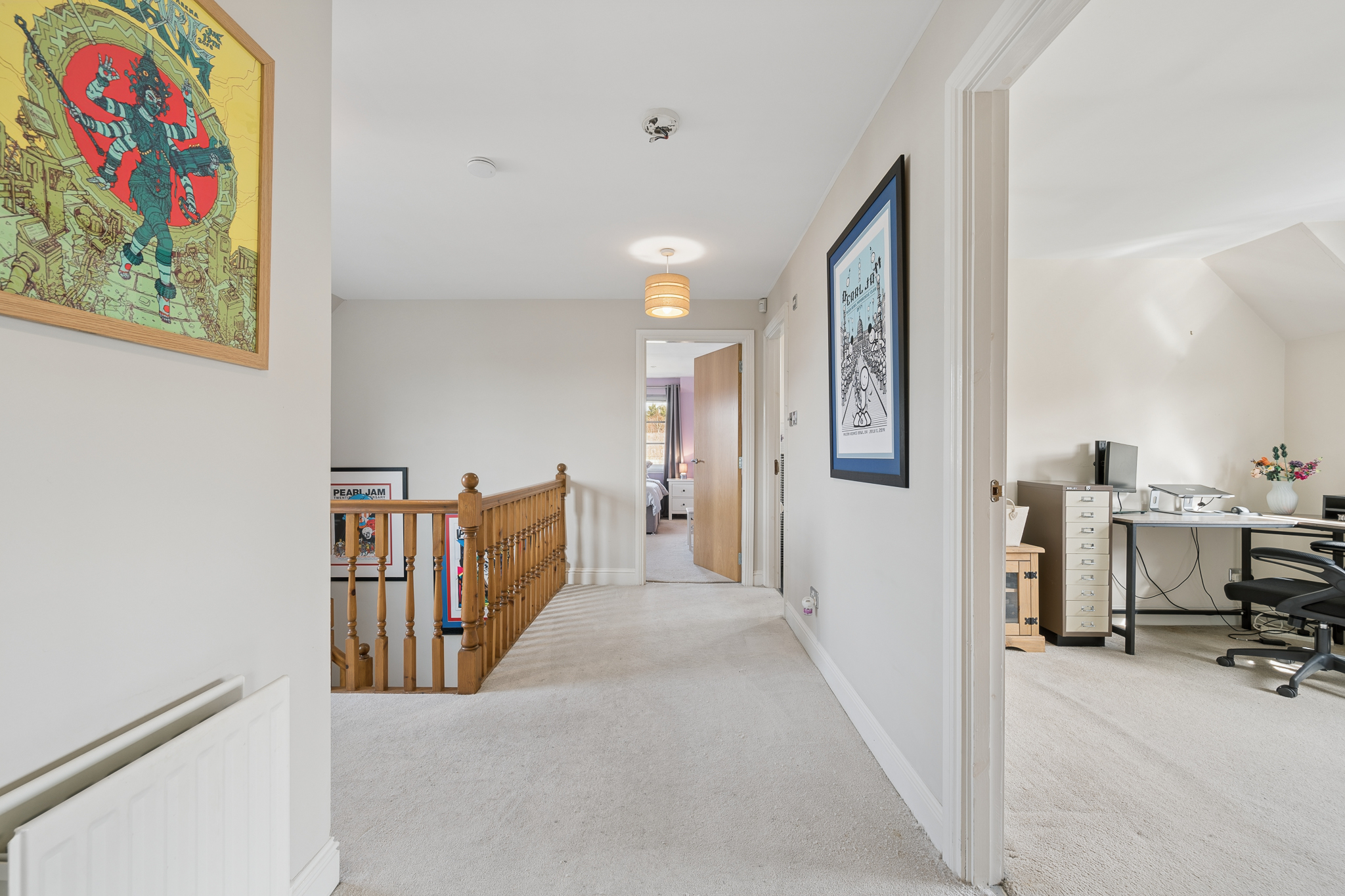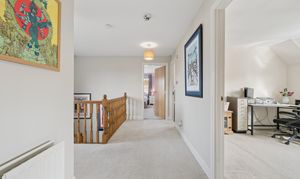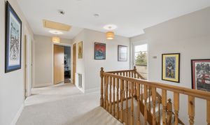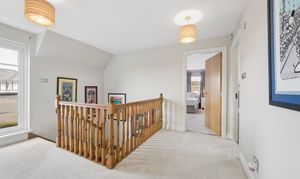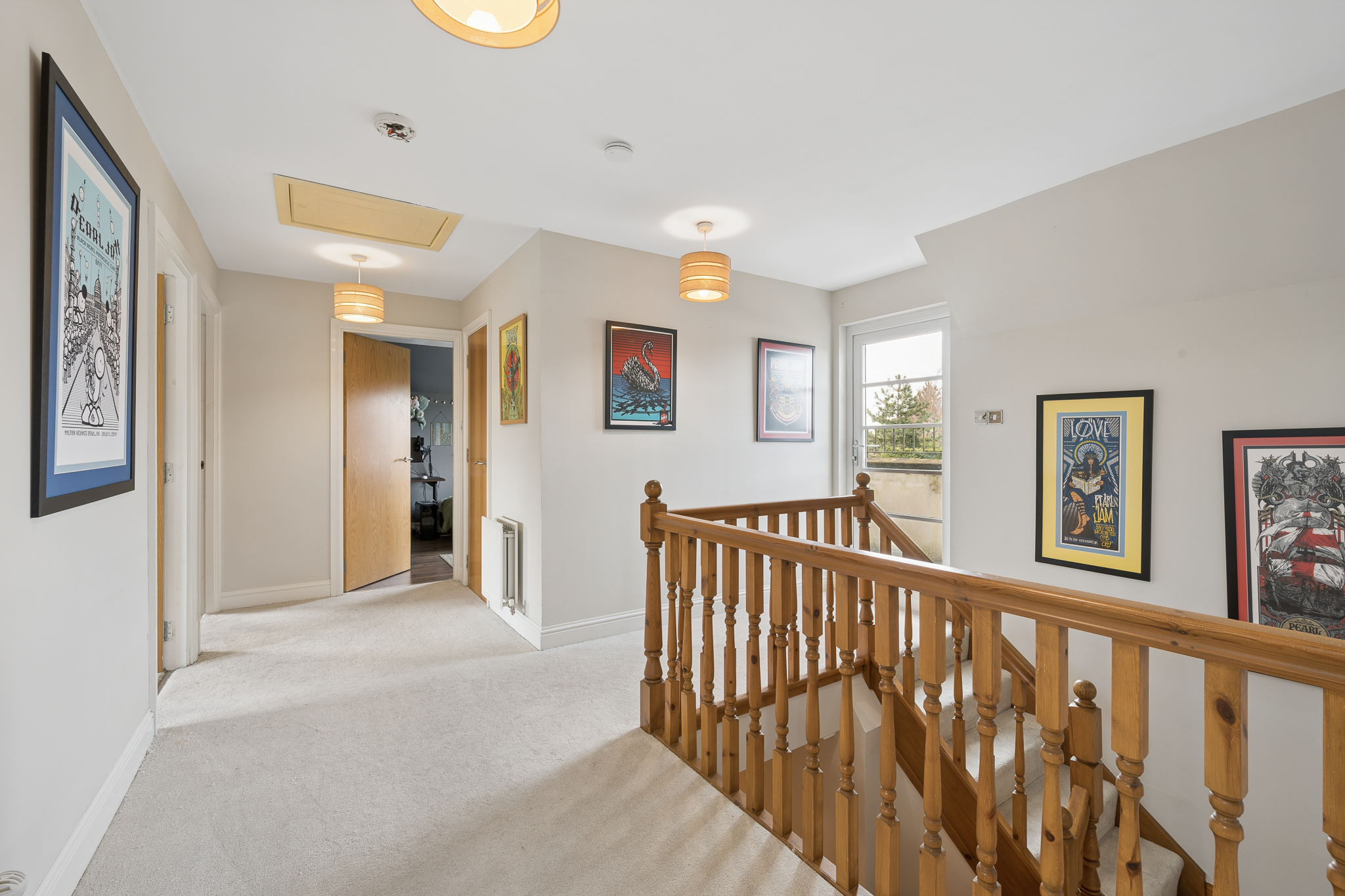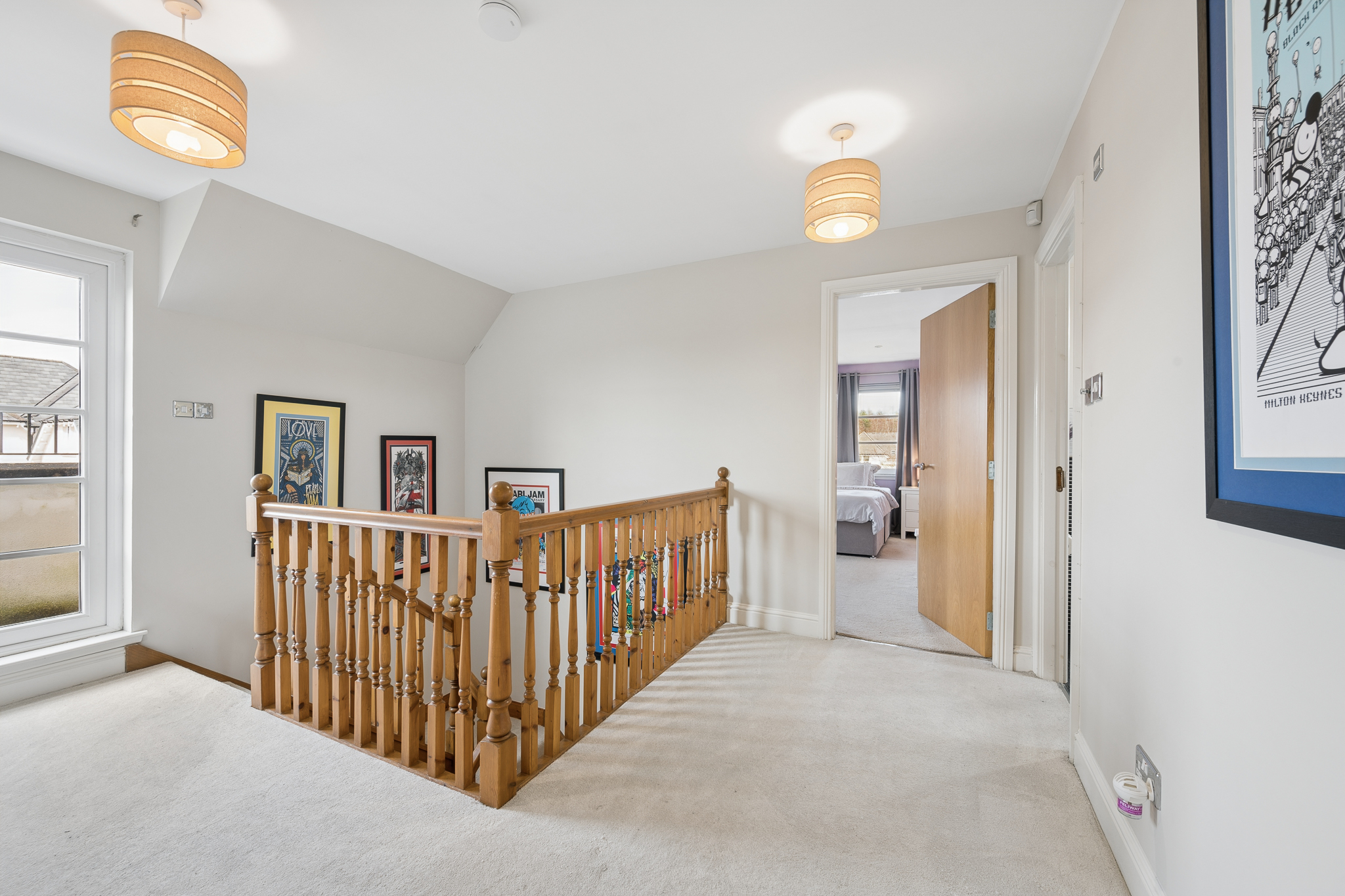 The upper level continues the home’s sense of space and quality. A generous landing provides access to all rooms, along with a charming balcony area accessed via a door from the landing, offering a unique architectural feature and an additional outdoor vantage point.