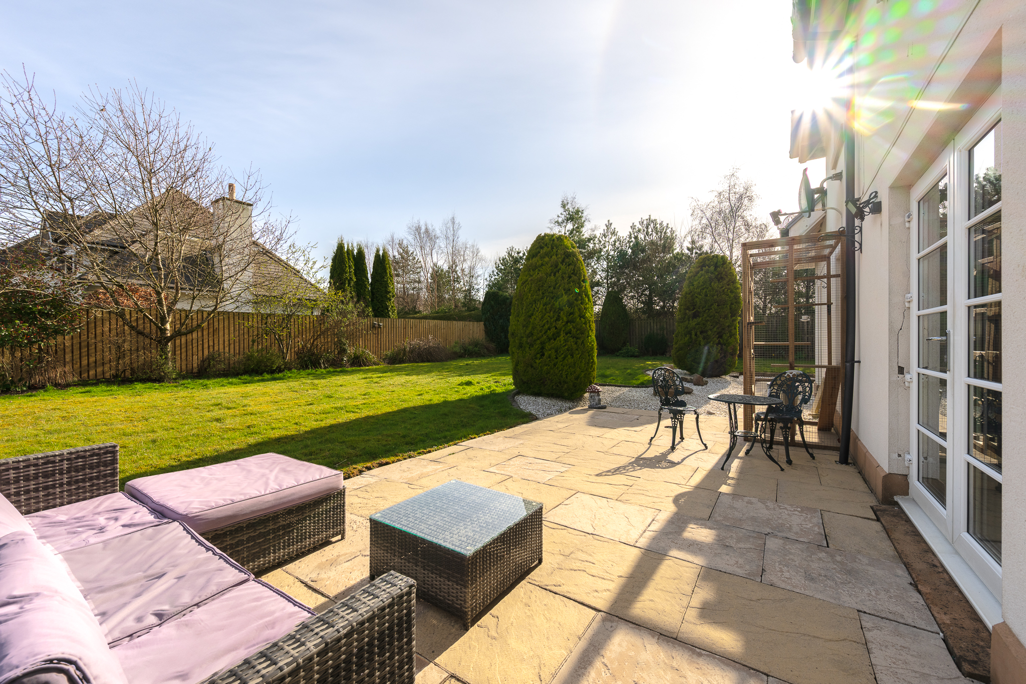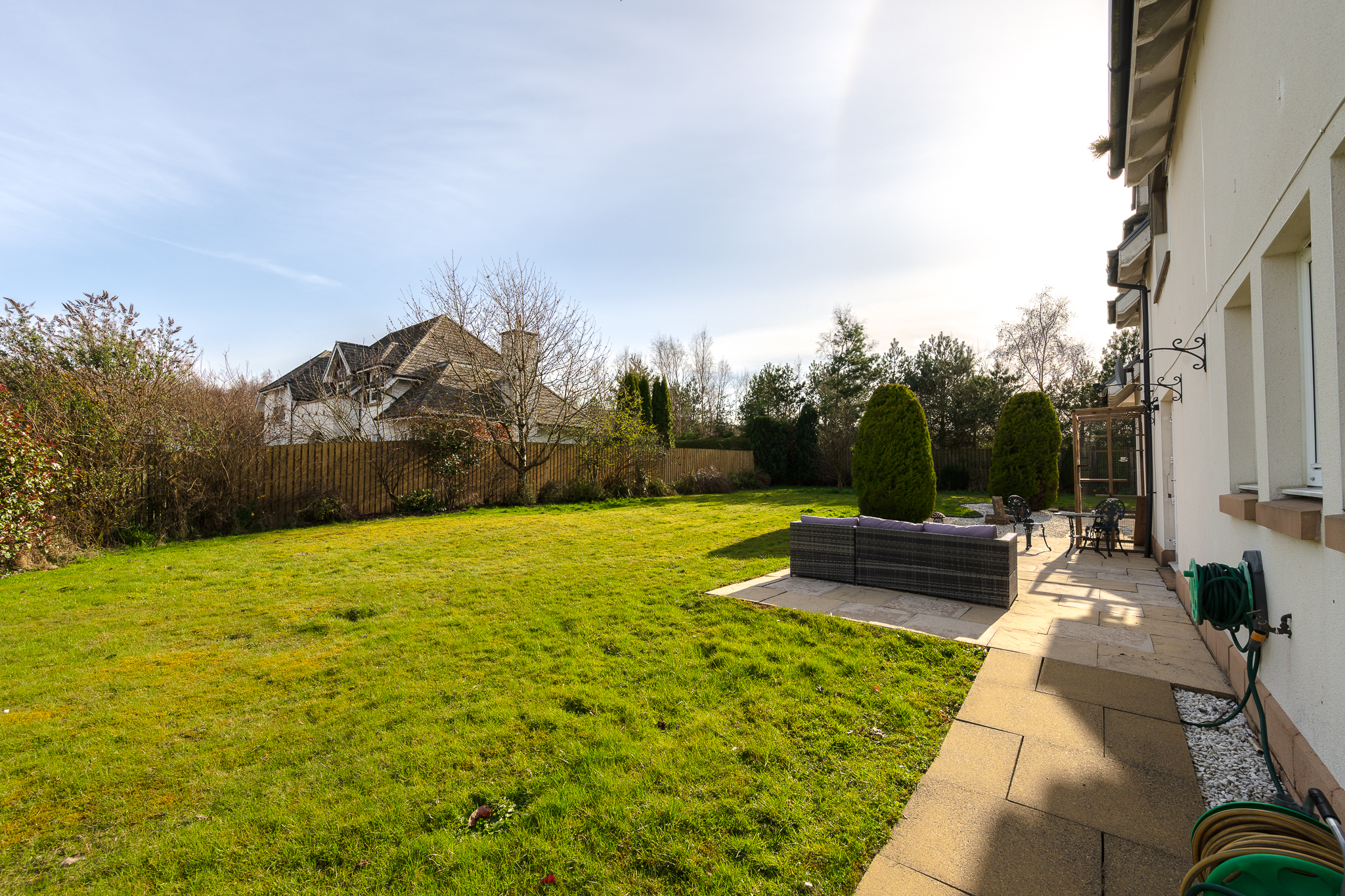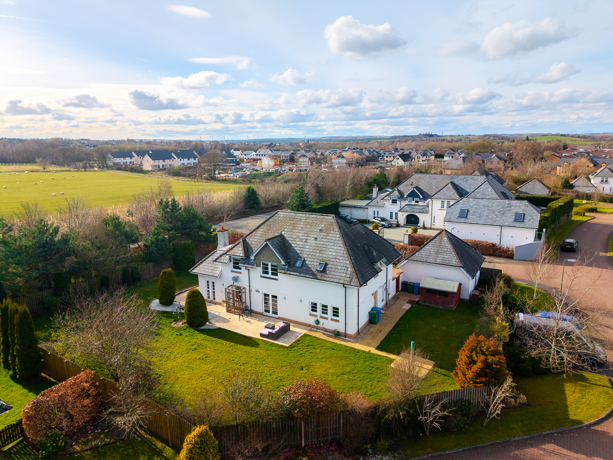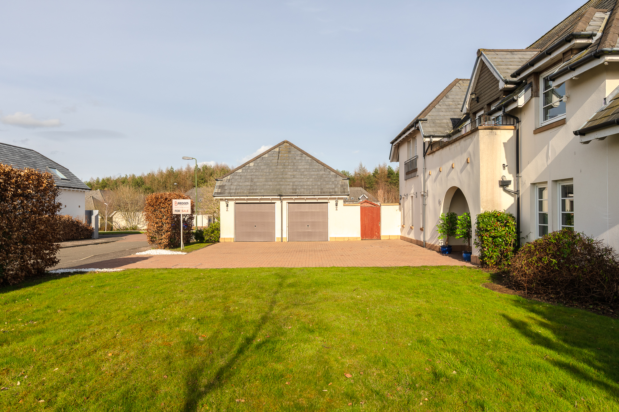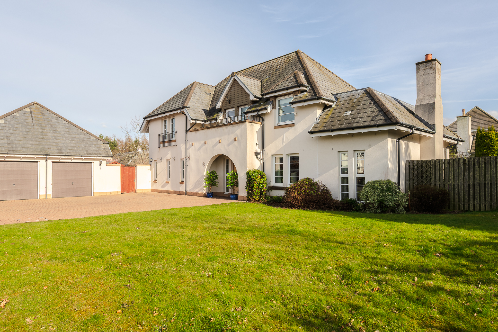Welcome to Mains Place, a highly coveted and rarely available address where homes of this calibre are seldom brought to market. The property is introduced by an expansive monoblock driveway, providing generous parking and leading to a detached double garage, all framed by manicured grounds that immediately set a tone of quality and exclusivity.