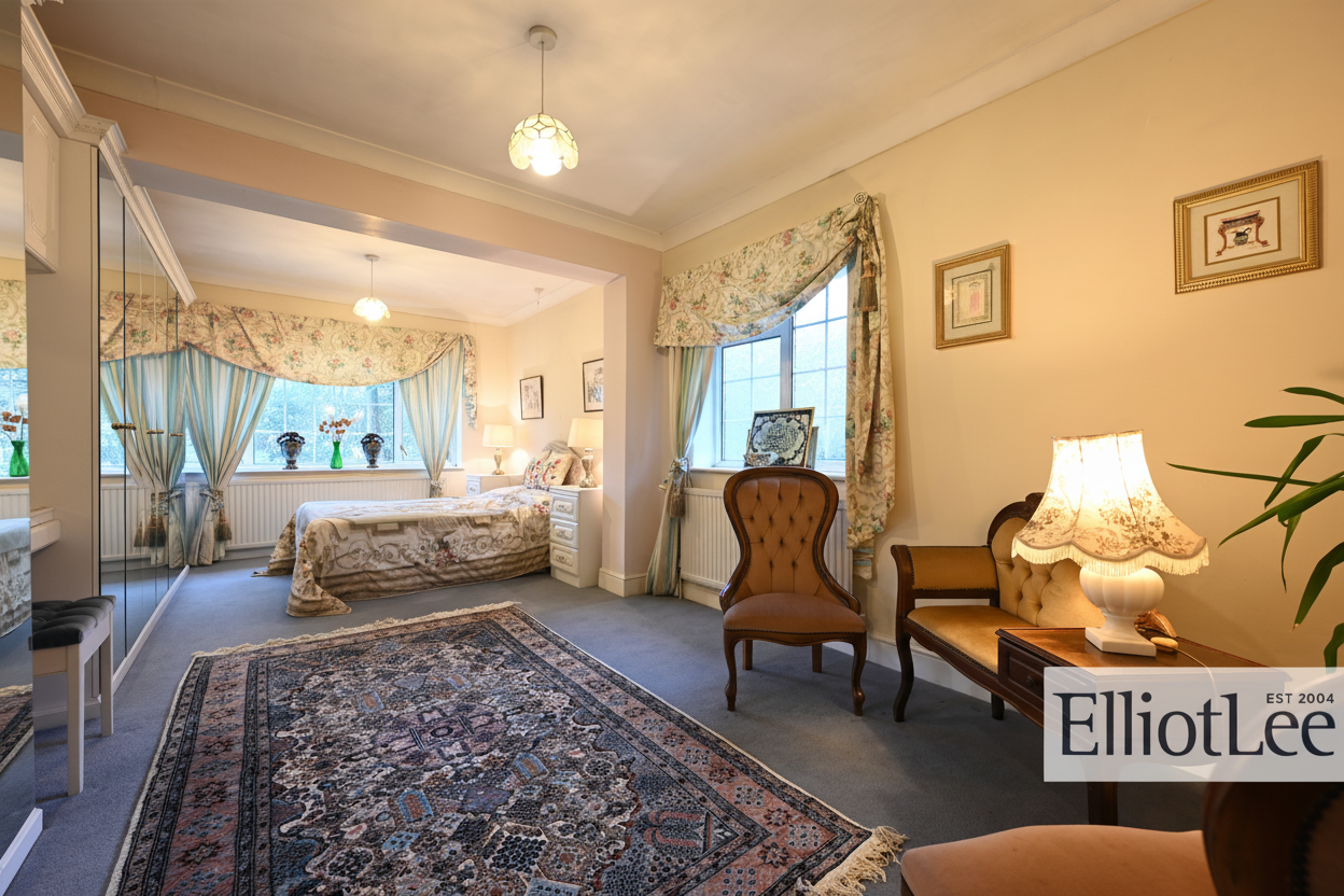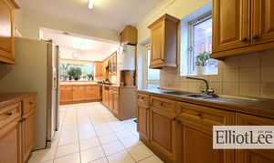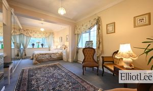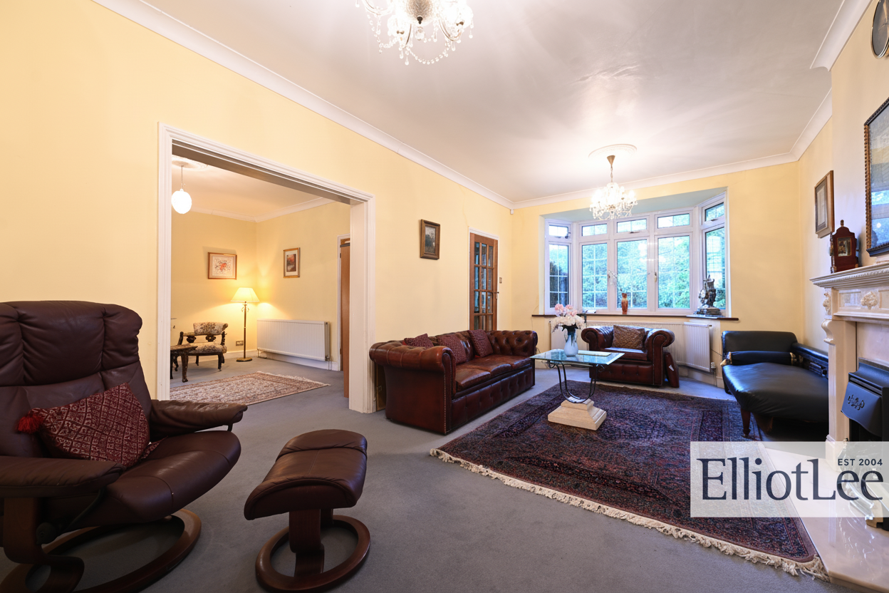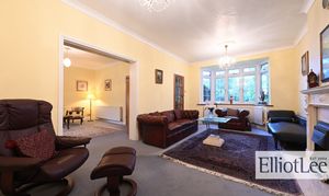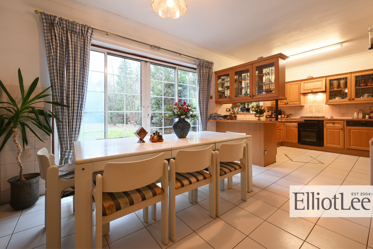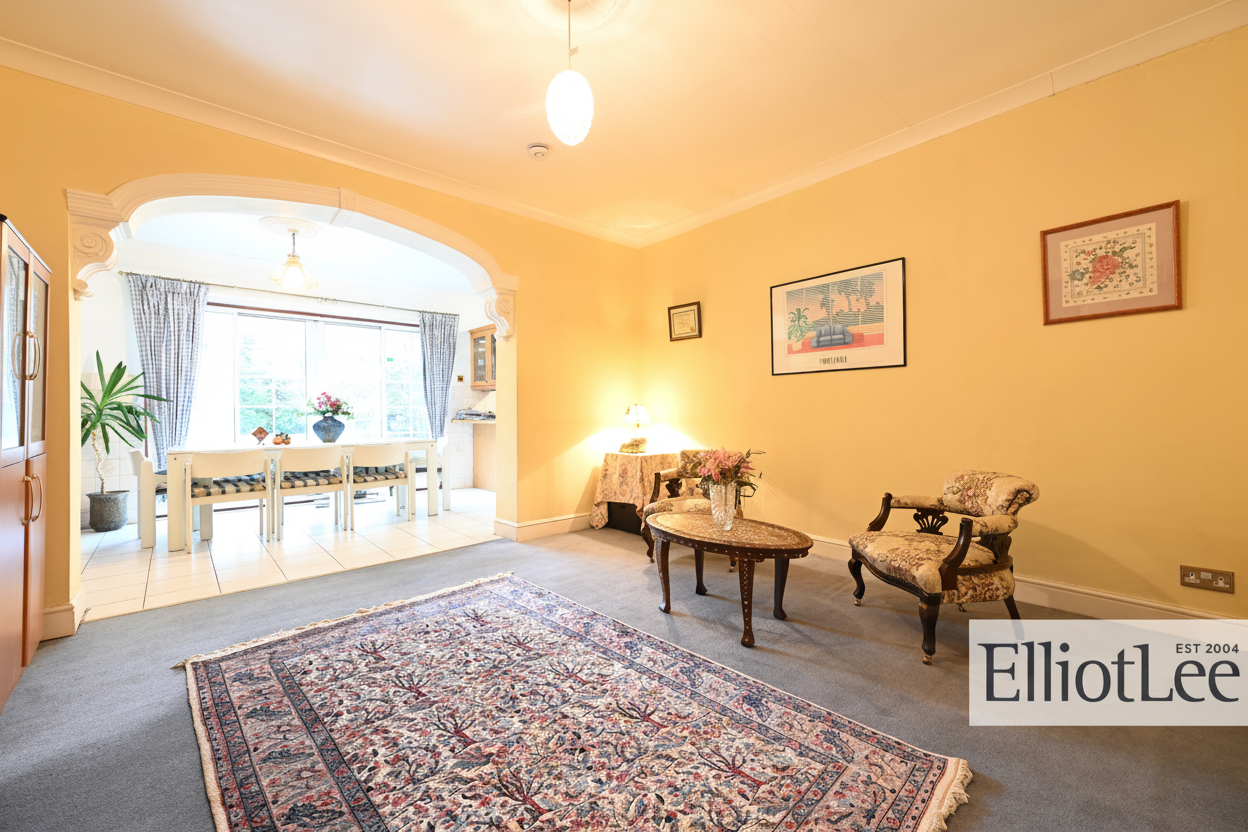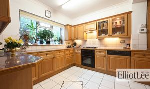 This impressive six-bedroom detached house offers a wealth of space and classic charm, perfectly suited to modern family living. The property welcomes you with a beautifully maintained front garden, mature trees, and a traditional brick facade, complemented by attractive bay windows and a paved pathway leading to the main entrance. Inside, the home features three generous reception rooms and an open plan dining area connected by a decorative archway. Large windows throughout ensure abundant natural light, creating a bright and inviting atmosphere in every room. The kitchen is both functional and stylish, boasting classic wooden cabinetry, integrated appliances, ample counter space, and a seamless open plan layout with the dining area.
