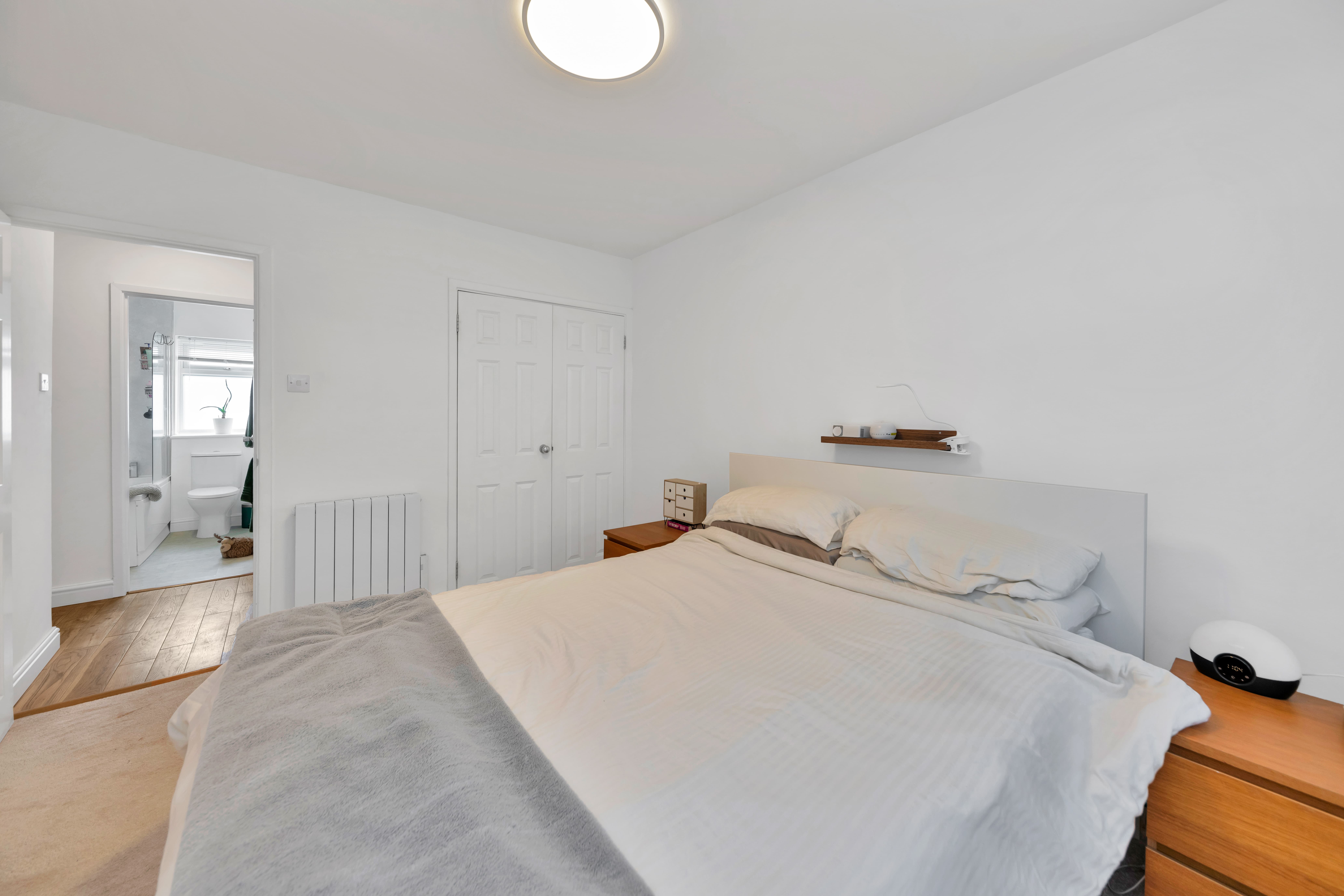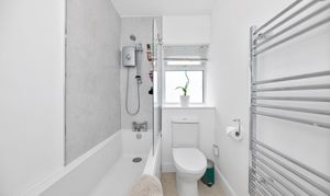 Through to the sleeping quarters, this lovely home continues to offer impressive accommodation, with 2 well-proportioned bedrooms, excellent integrated storage, and a family bathroom comprising a bath with an overhead shower, a heated towel rail, a WC and a hand wash basin.