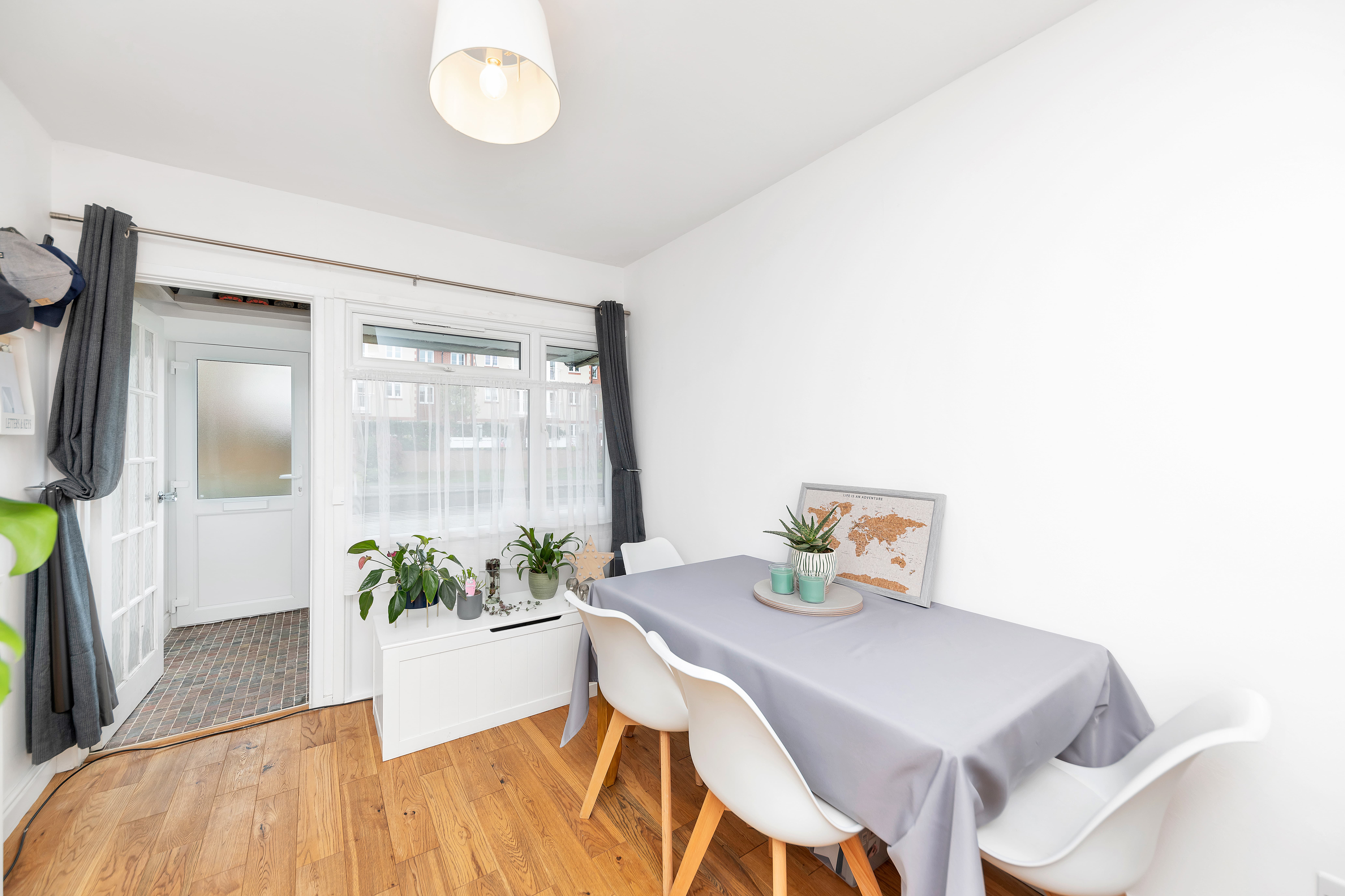 This lovely property belongs to a pleasant and tidy development, incredibly close to the station with direct links to both London Kings Cross and Cambridge. Upon stepping inside, the entrance porch opens up into a bright and nicely decorated open-plan lounge/dining room, benefiting from a window to a front aspect, attractive wood affect flooring, pendant lighting, integrated storage, and ample space for a variety of lounge, dining and storage furniture.