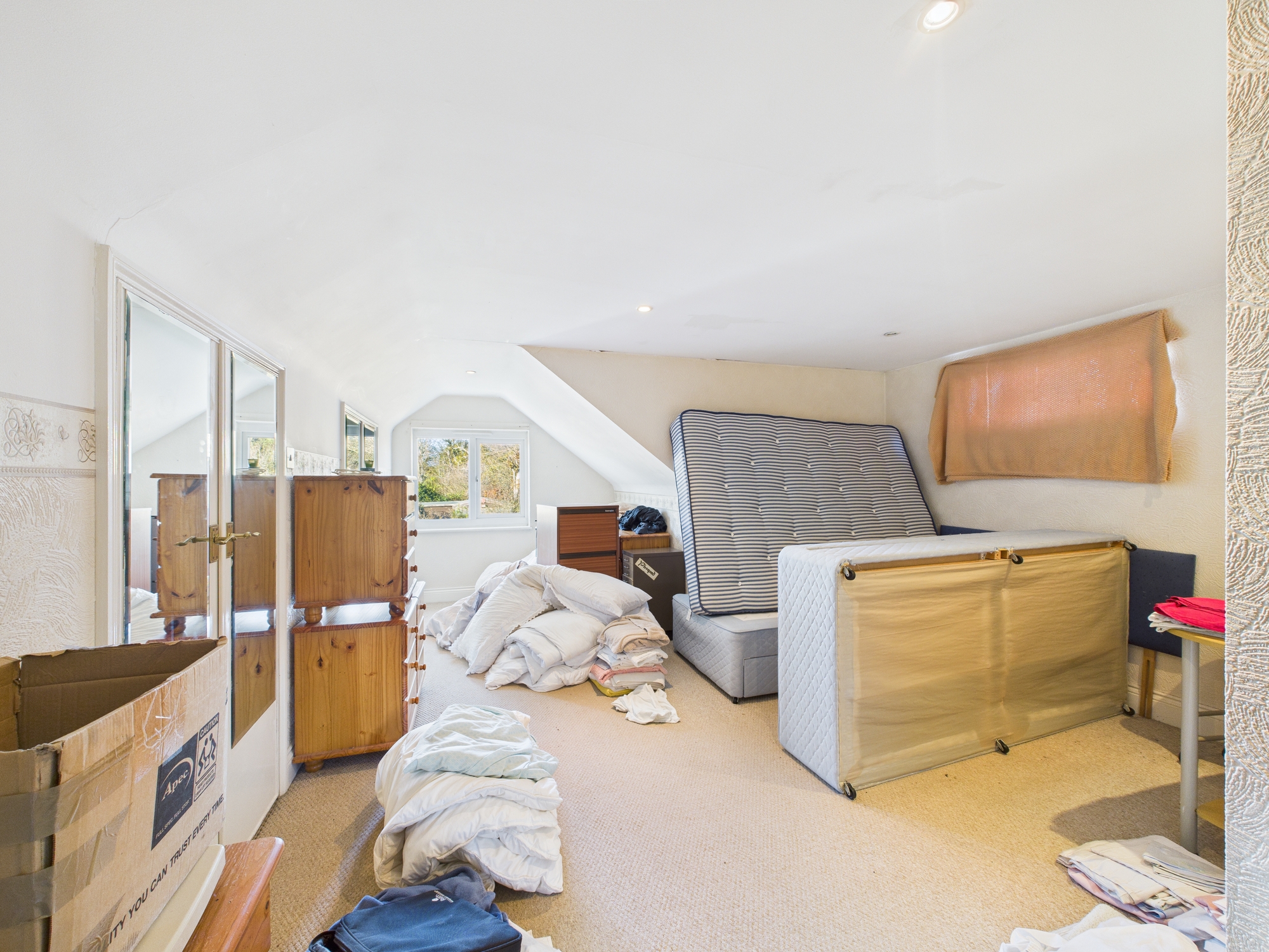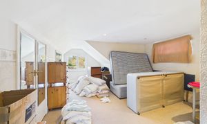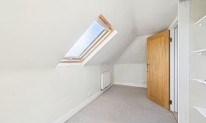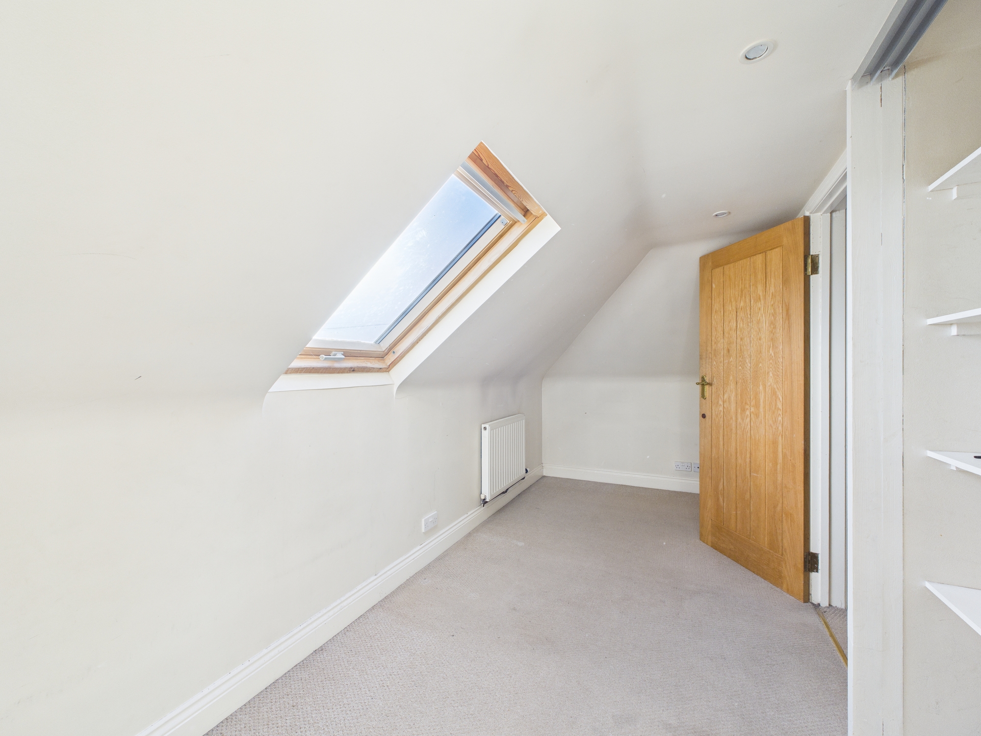Upstairs, the home boasts an attic conversion with Velux window, integrated shelving and radiator heating, presenting a perfect option for a bedroom or home office.