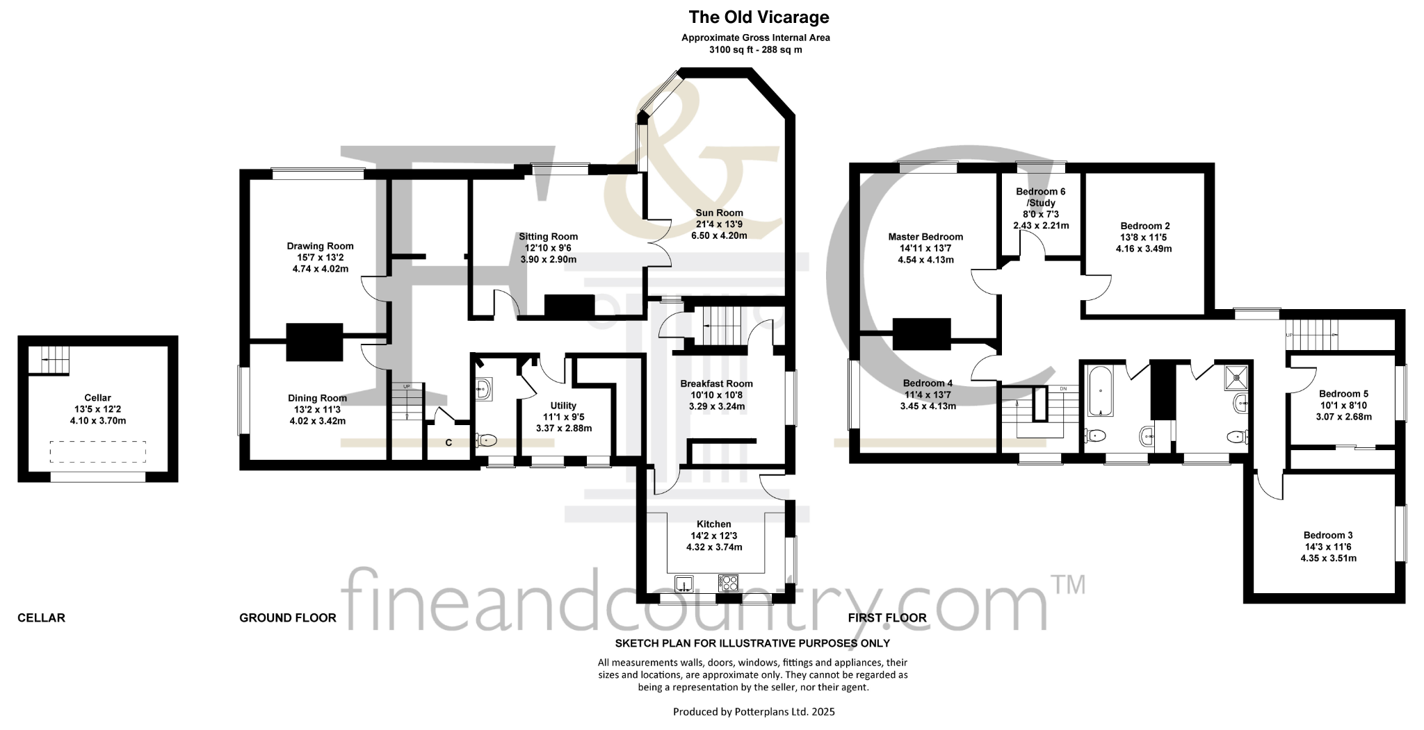 A loft space (insulated and standable) and a cellar with slate shelving adds valuable storage and further potential.