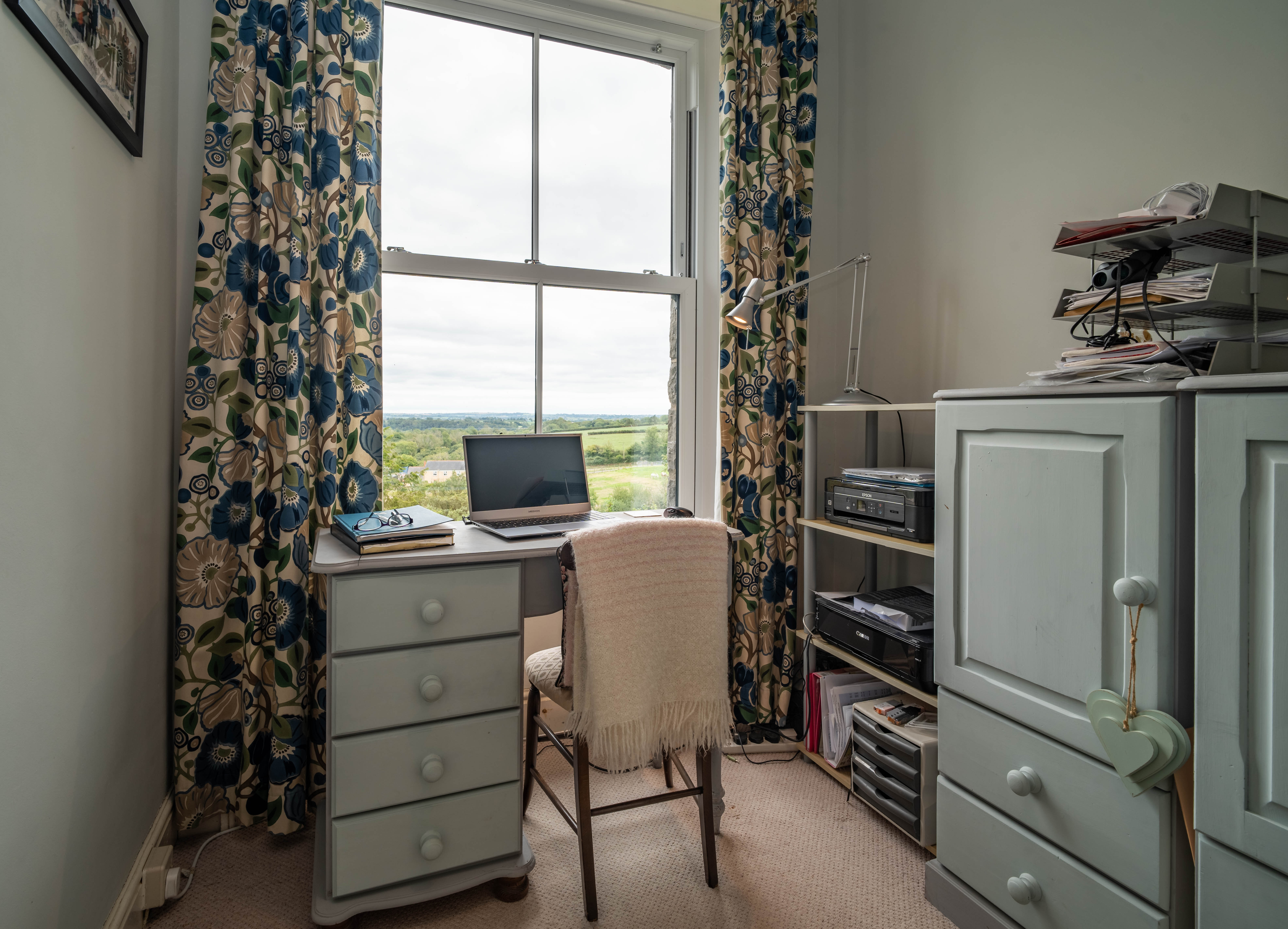 A flexible space currently used as a study/home office, benefitting from the elevated first-floor views over the surrounding countryside.