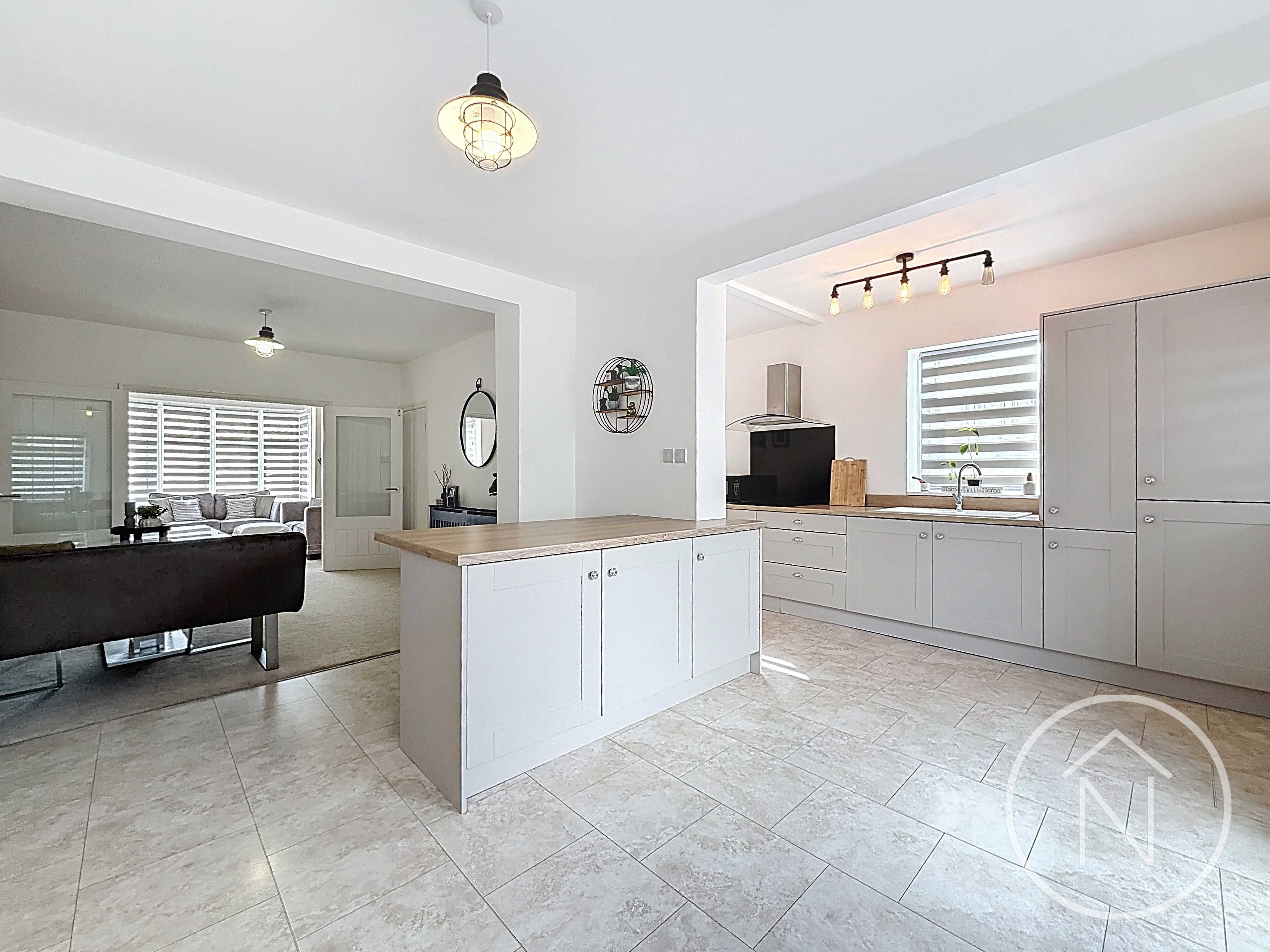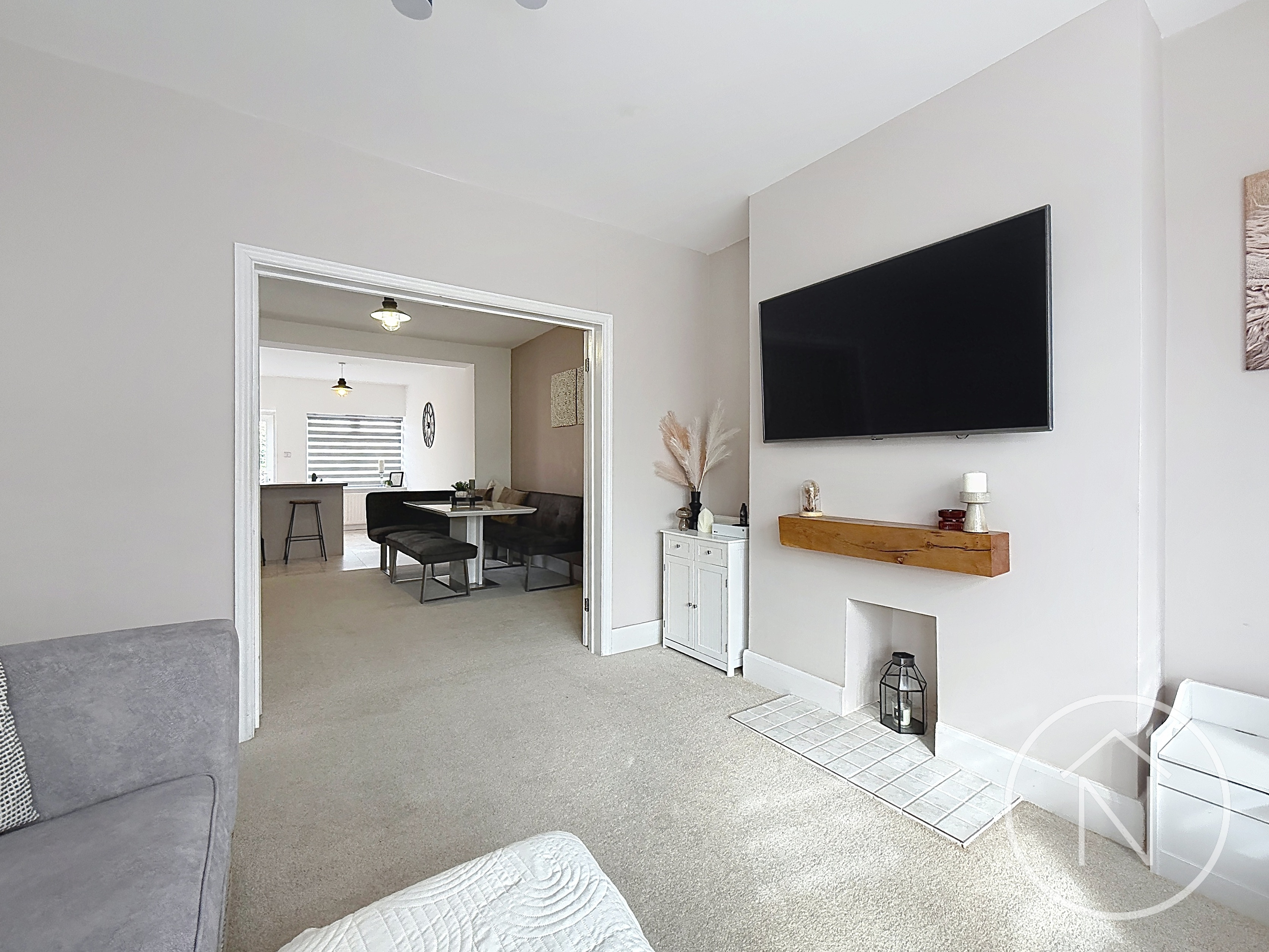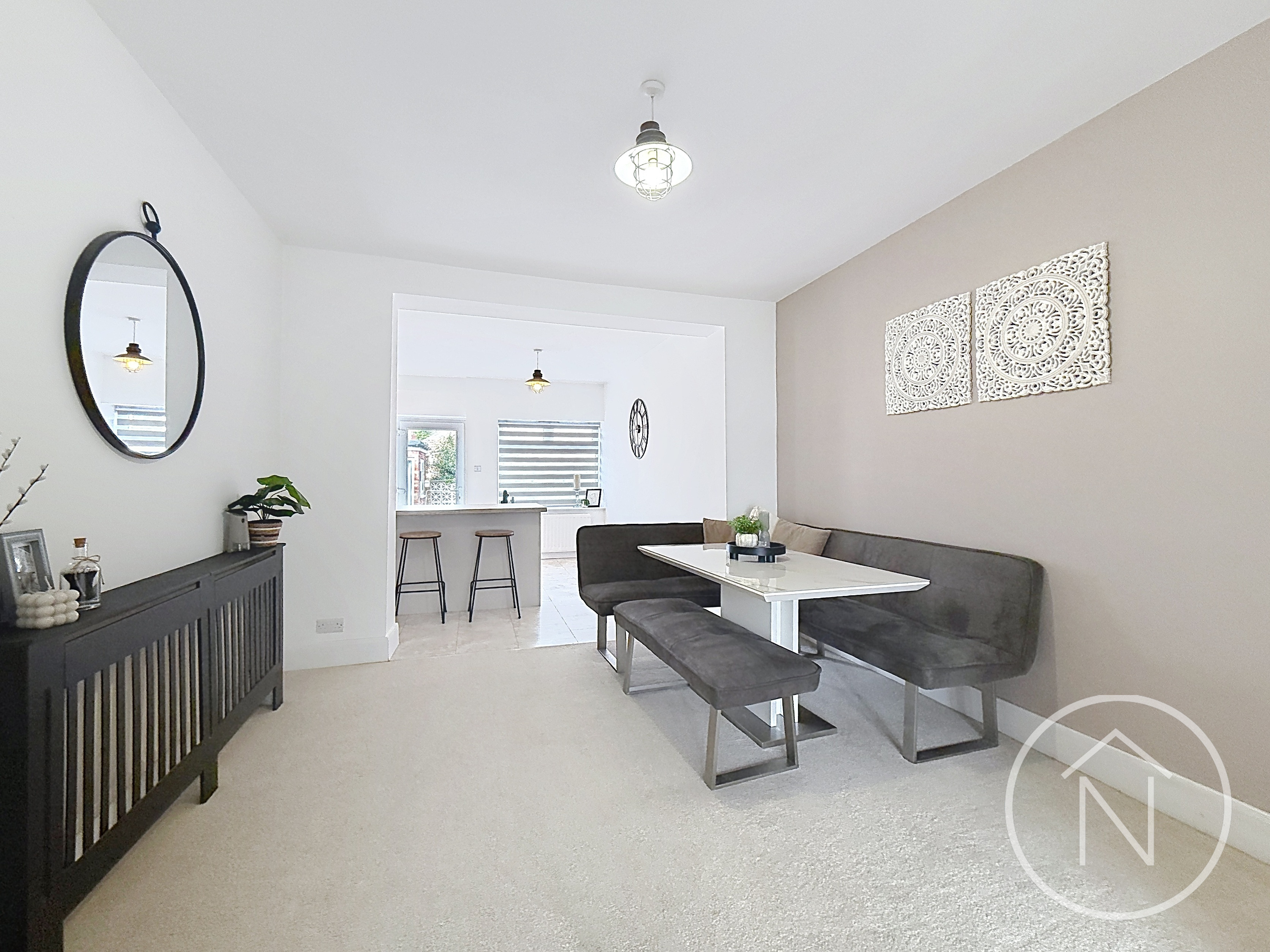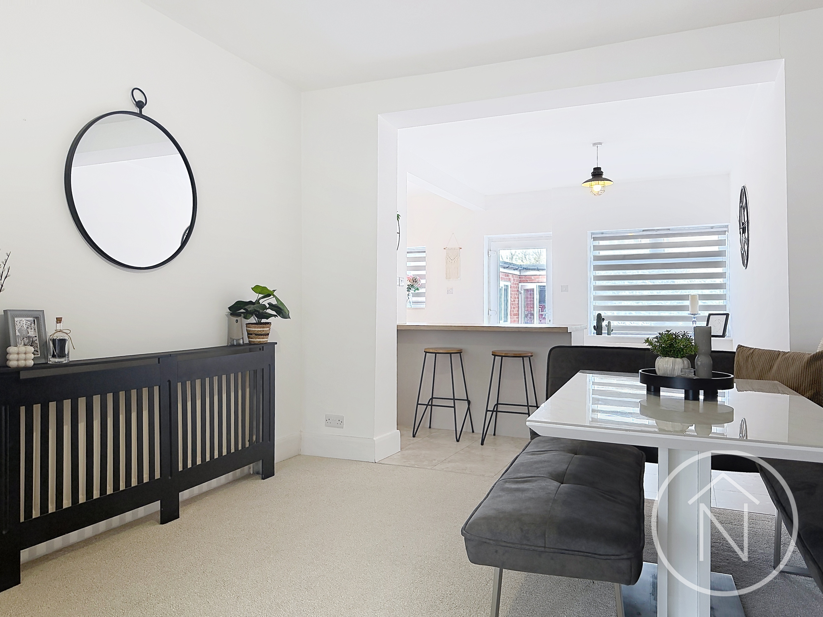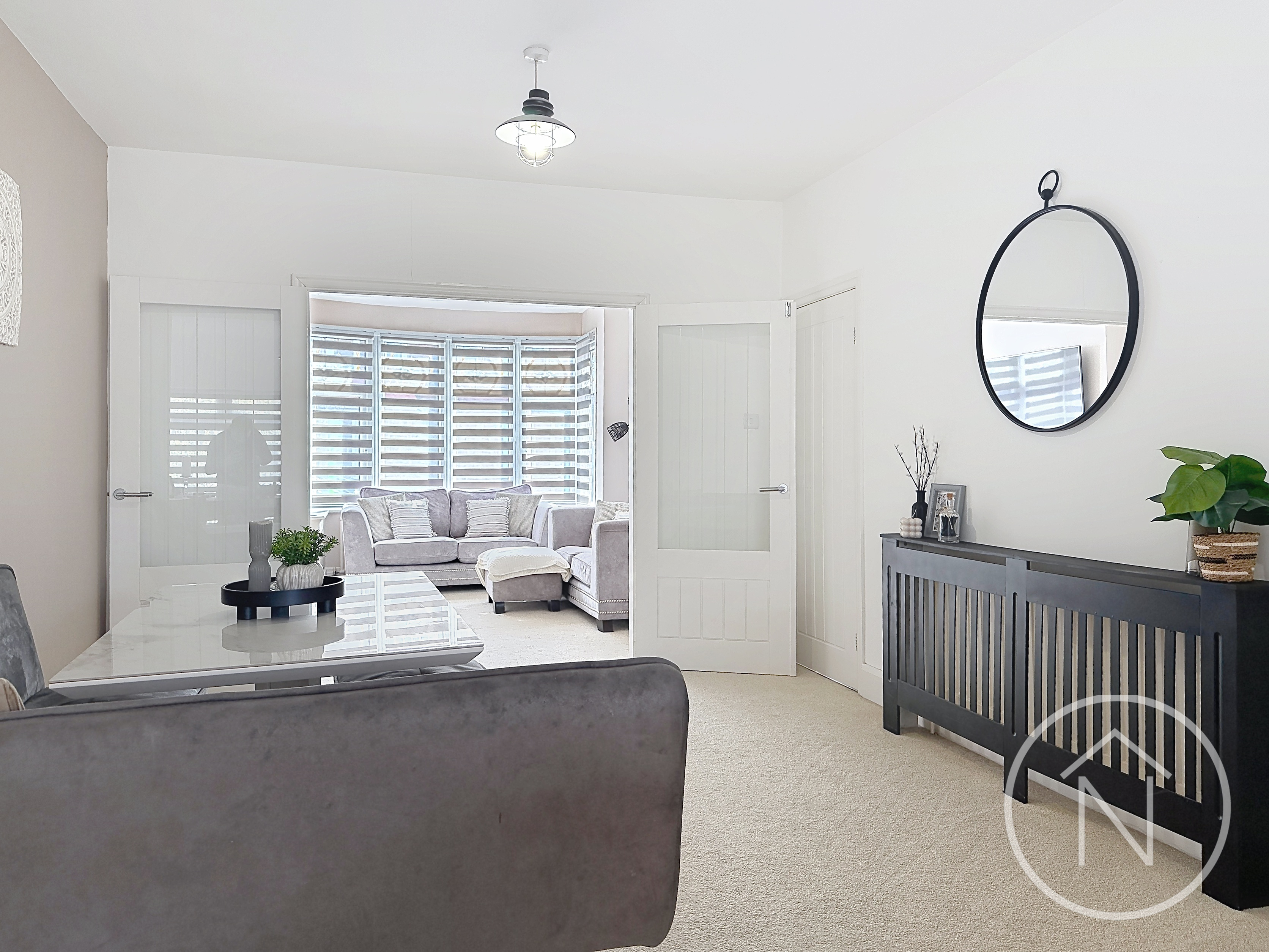 The ground floor is ideal for modern living, with a bay-fronted lounge to the front, flowing through double doors into a separate dining room, which in turn opens into a large extended kitchen space, perfect for both everyday living and entertaining.