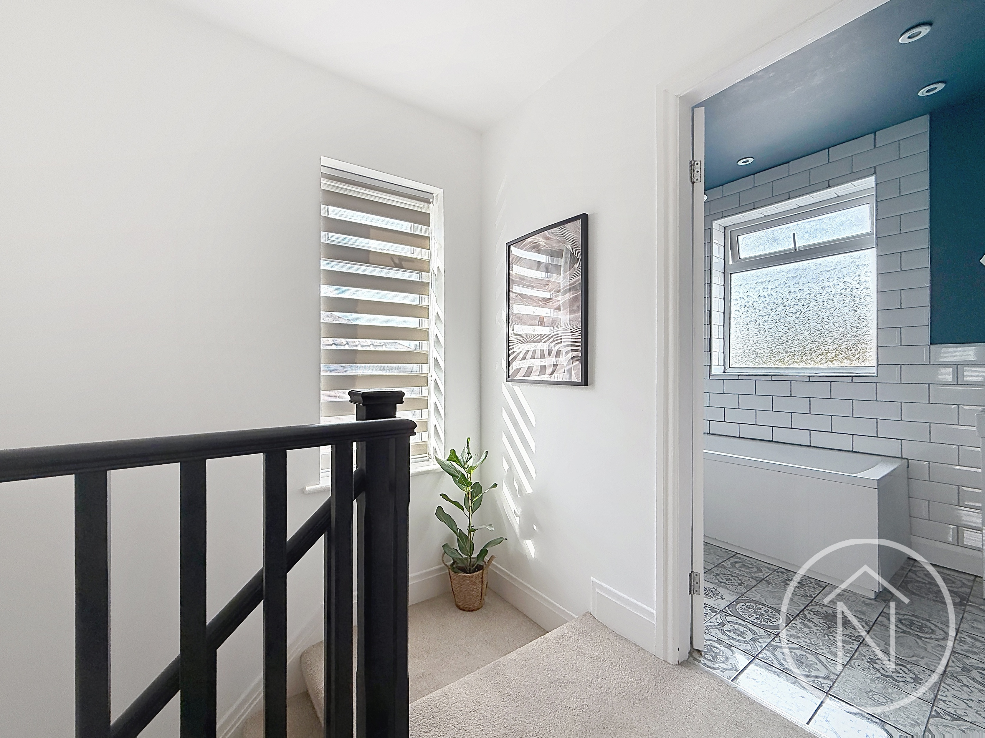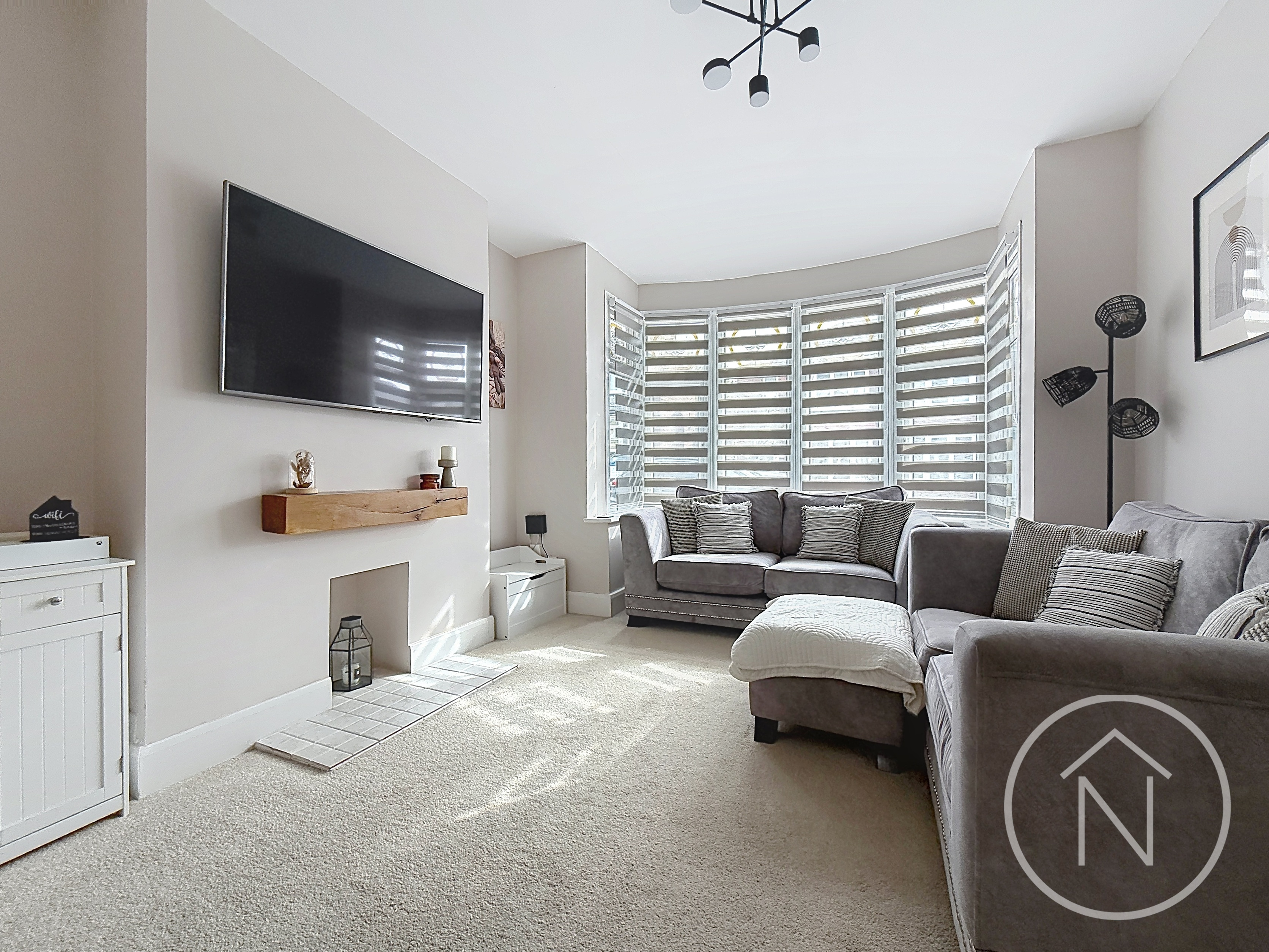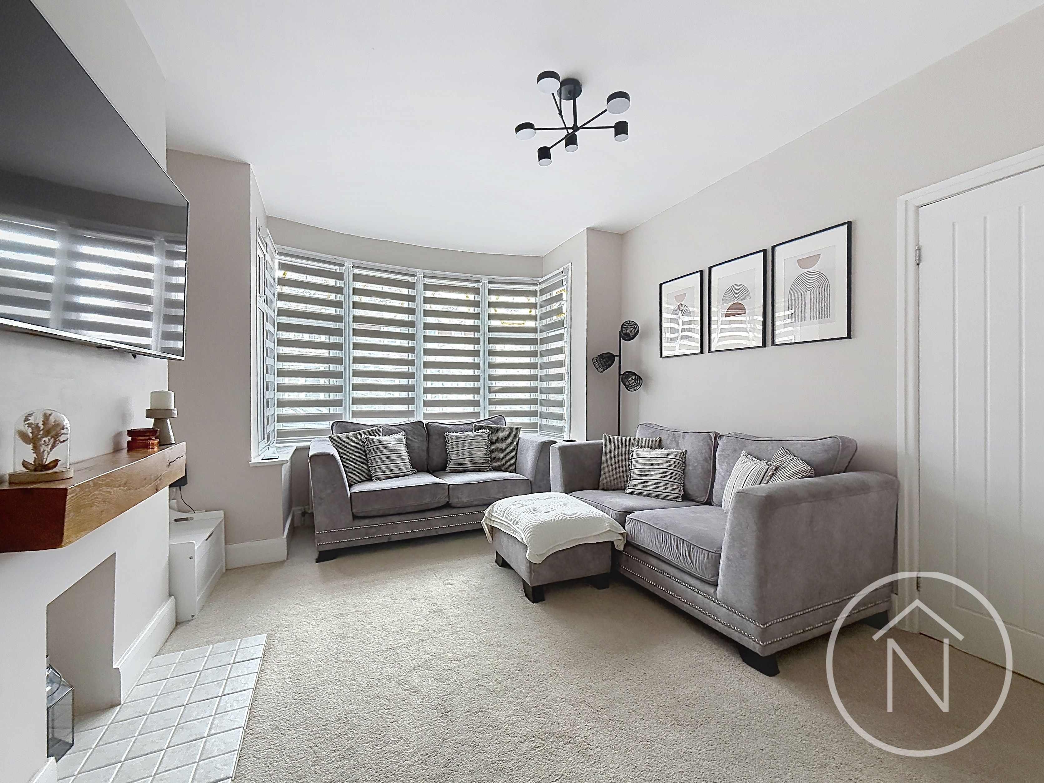 Upstairs, the property offers three bedrooms, including a generous main bedroom with bay window, a well-sized second bedroom and a third ideal as a nursery, office or dressing room, along with a modern family bathroom.