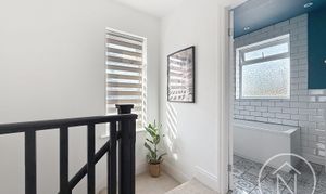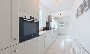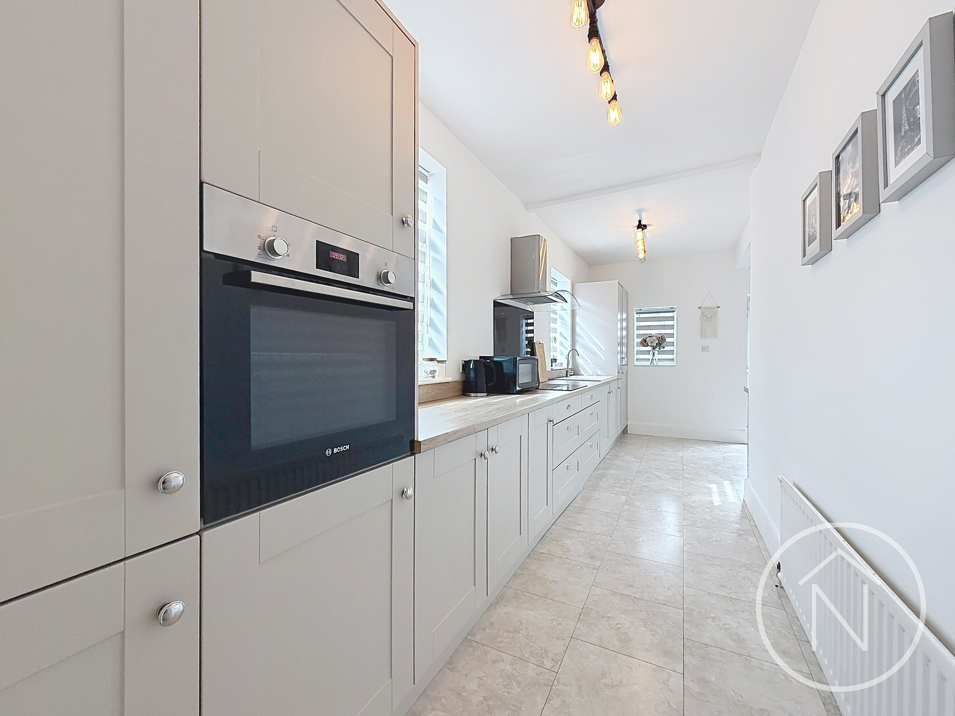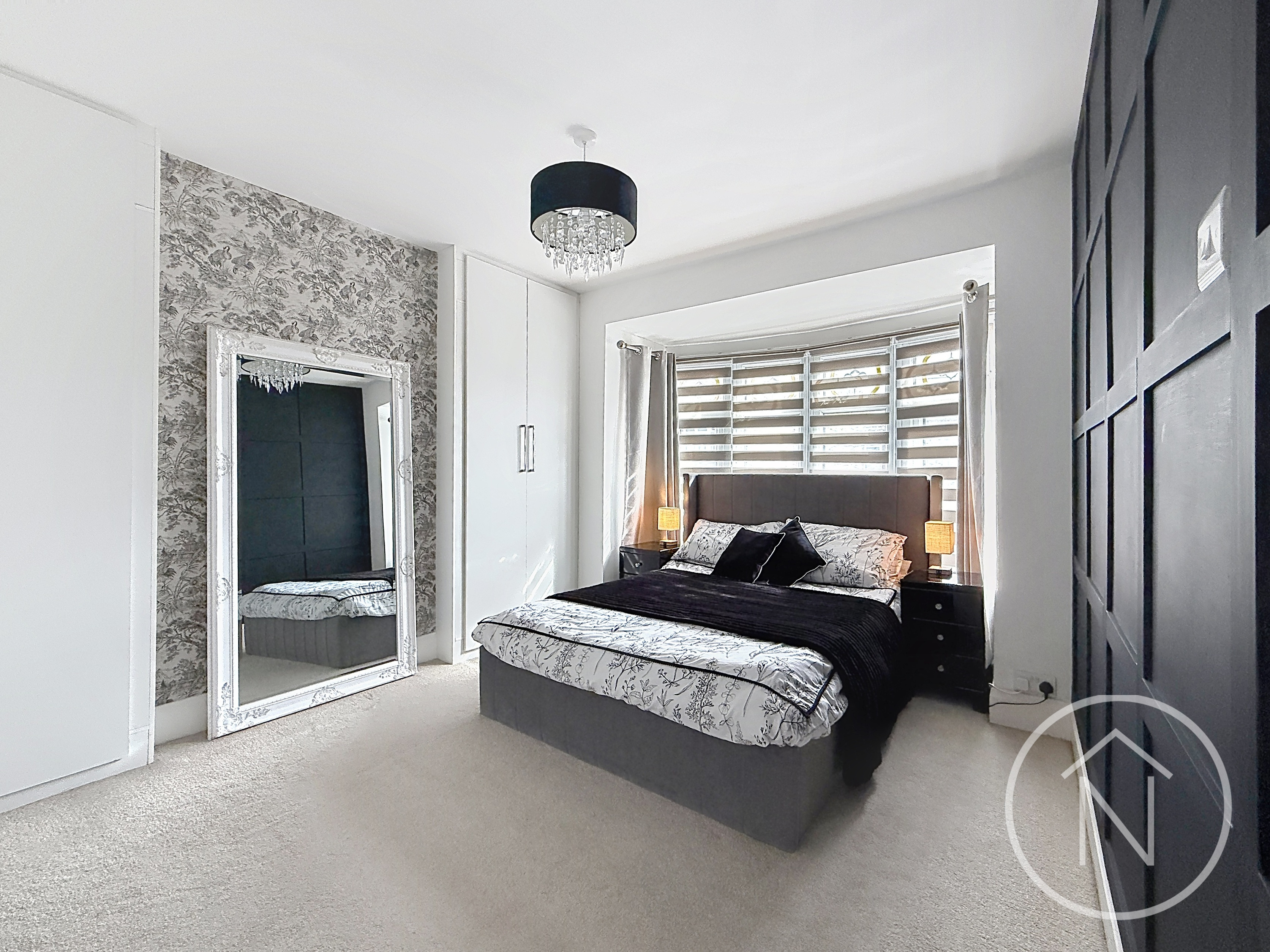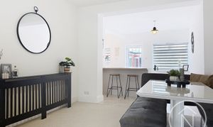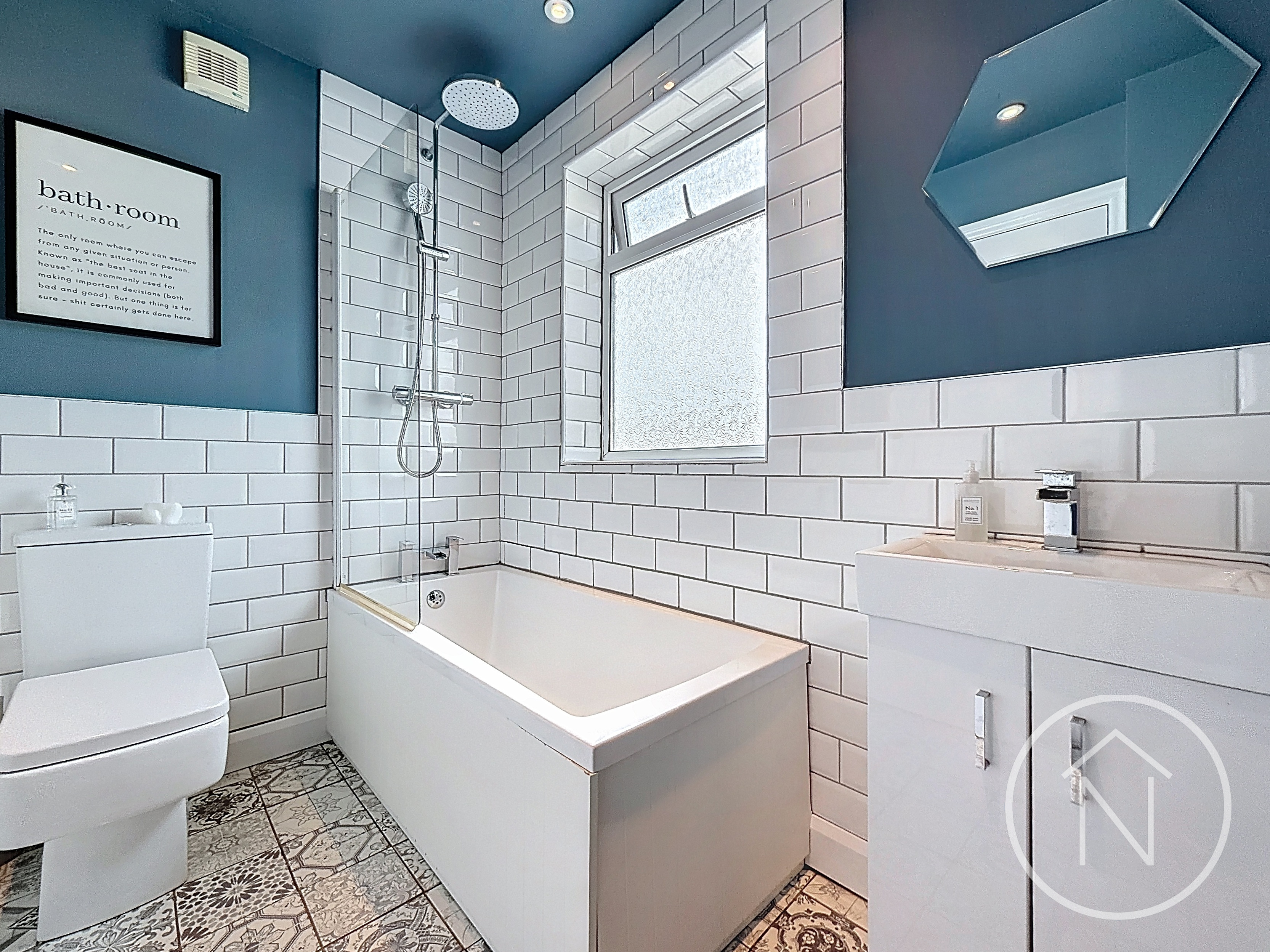 Upstairs, the property offers three bedrooms, including a generous main bedroom with bay window, a well-sized second bedroom and a third ideal as a nursery, office or dressing room, along with a modern family bathroom.
