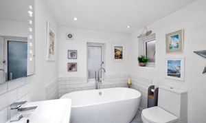 The property has undergone some major works over recent years with high-quality double-glazed sash windows, modern electrics, and heating. These period homes can often be a little draughty, but I’ll happily give anyone ten pounds of my own money if you can feel a draught in this one! Well-presented throughout with the most sumptuous master bathroom complete with a separate luxurious bath and walk-in shower you’ll certainly like unwinding in here. To add to the comfort the vendor has also installed a wood burner the lounge.
