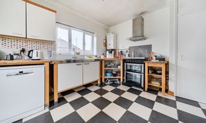 The hallway leads into a cosy living room with bay window and feature open fireplace. To the rear of the property is a bright and spacious partially fitted kitchen/dining room with patio doors opening onto the back garden.