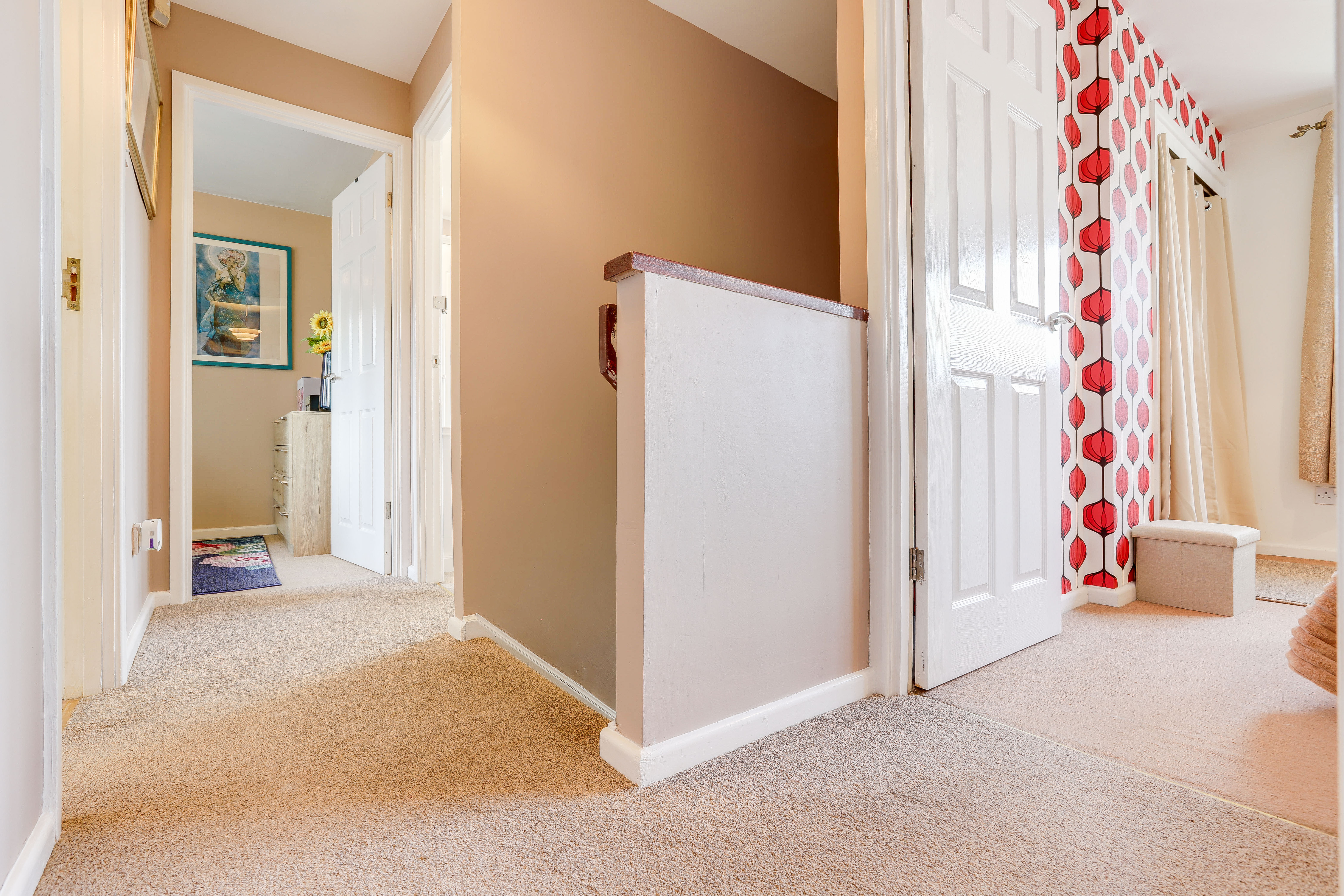 The landing has carpeted flooring, an in-built cupboard, access to the loft and provides access to the first floor accommodation.
