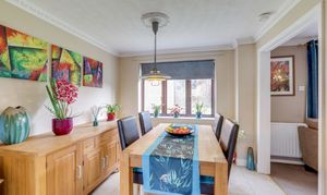 The dining room has tiled flooring, a radiator, ceiling coving, a ceiling rose and a window to the rear elevation.