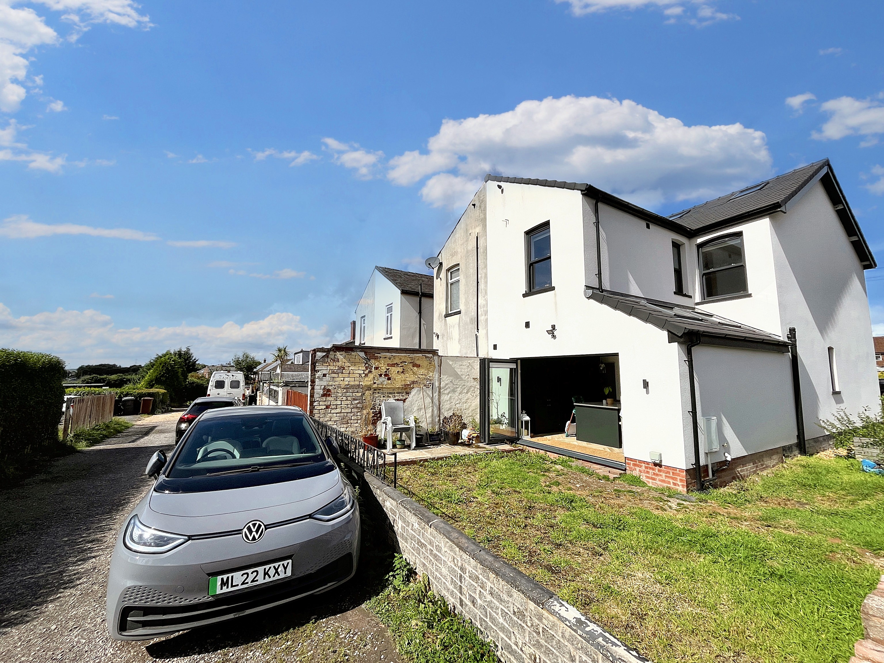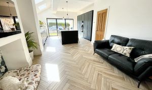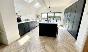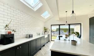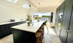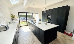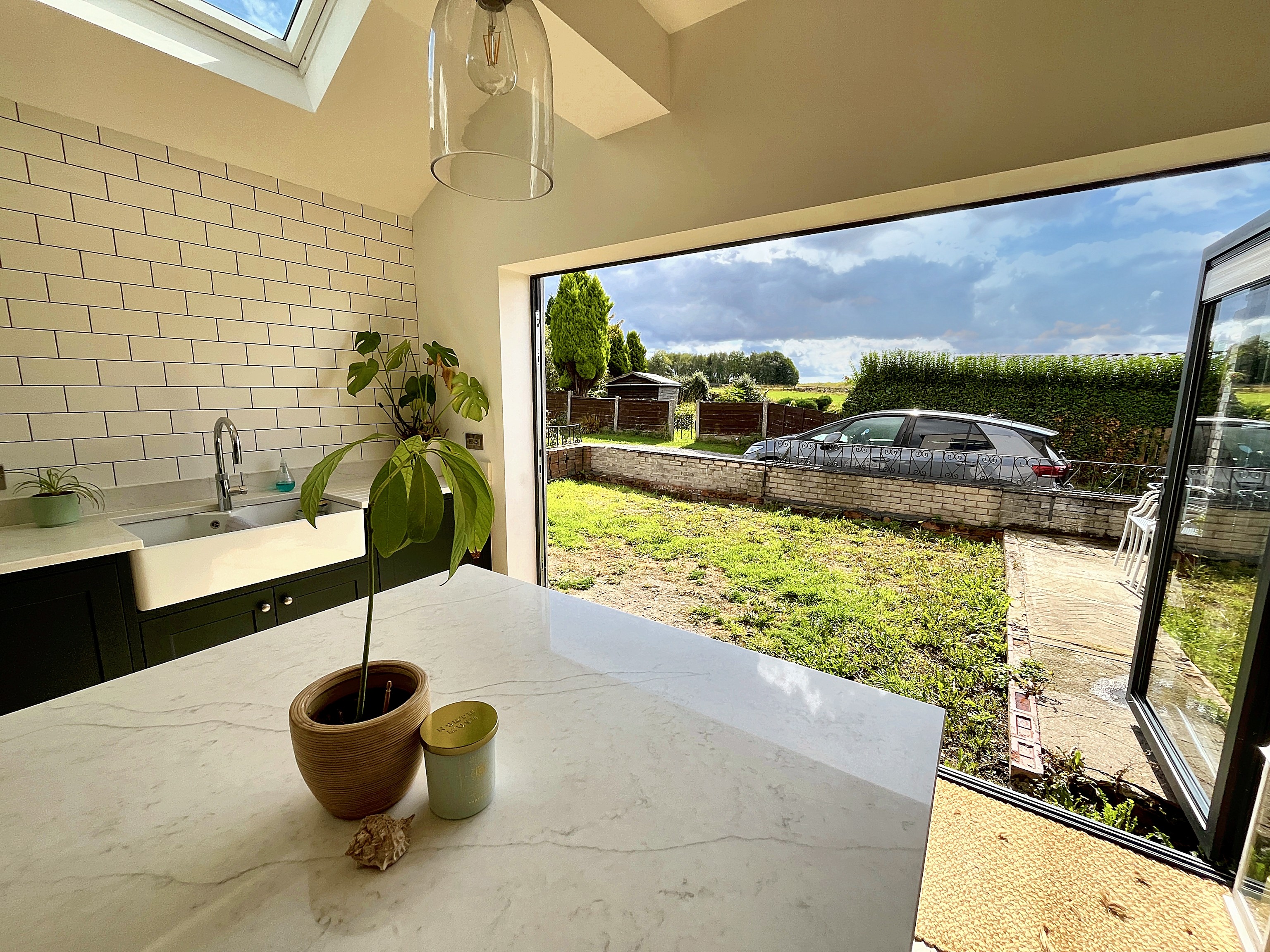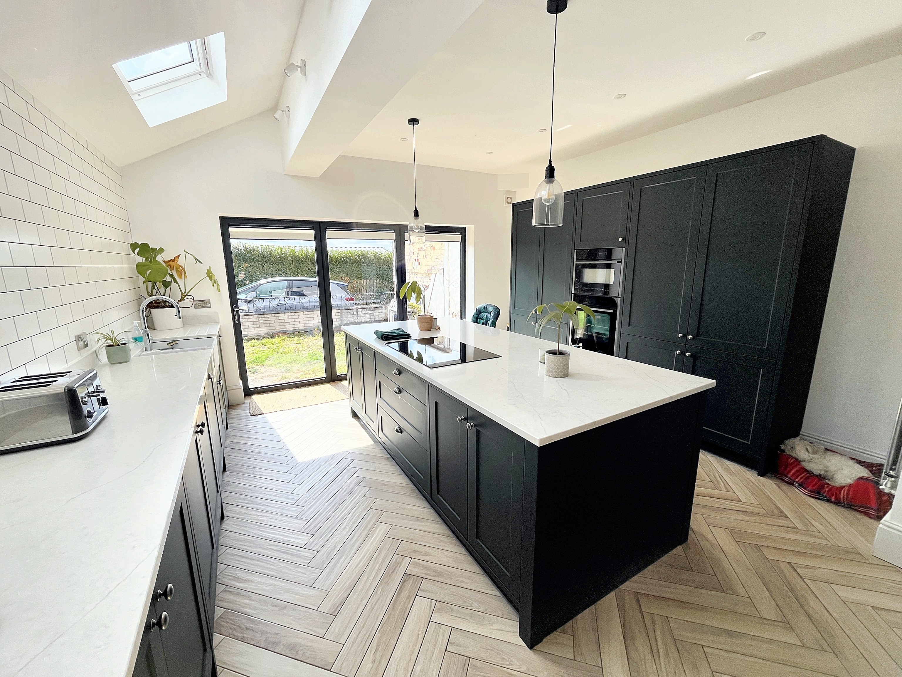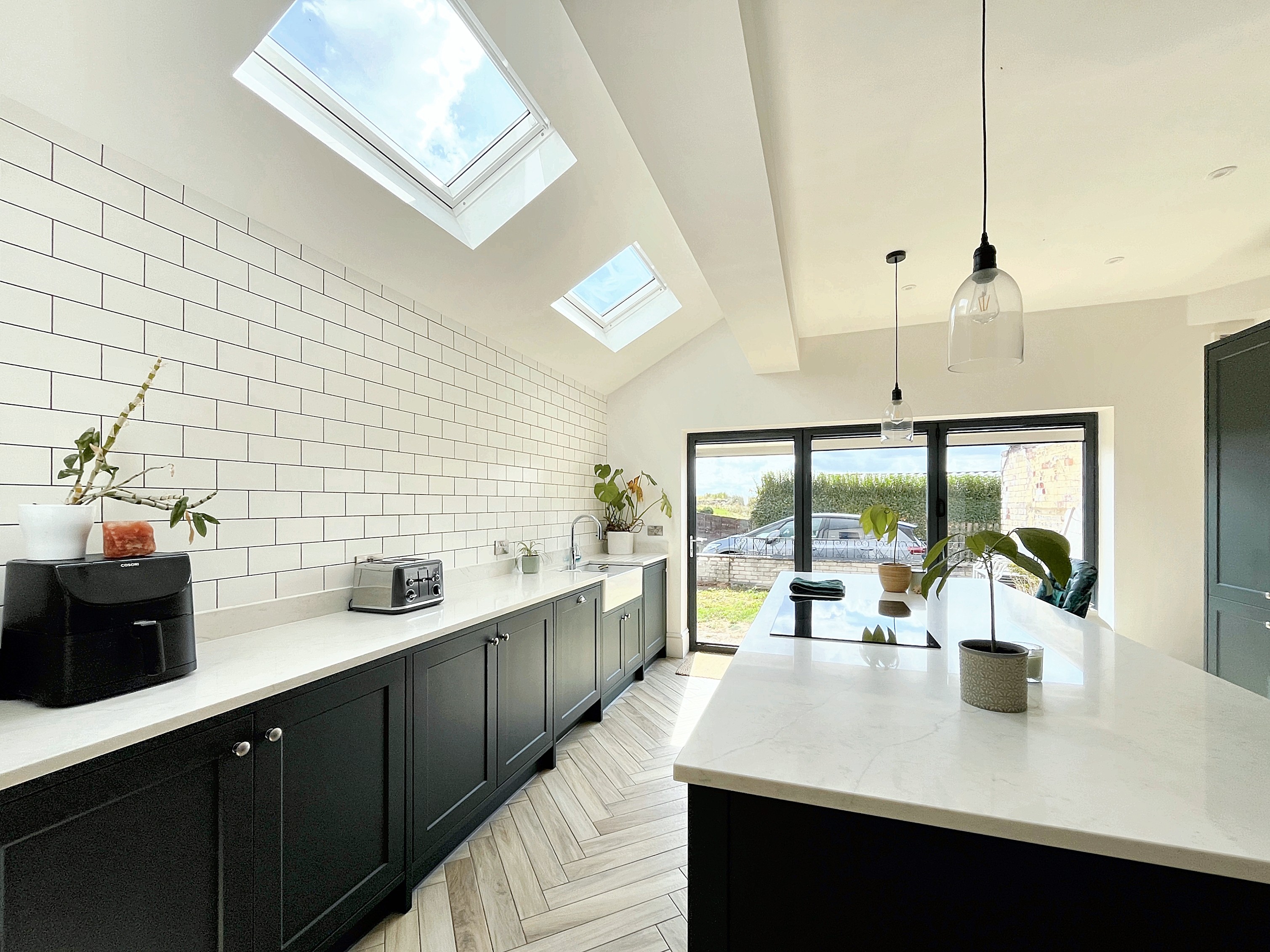 - FABULOUS KITCHEN-DINIG-FAMILY ROOM WITH CENTRAL ISLAND, VELUX IN VAULTED CEILING AND MODERN BI-FOLDS