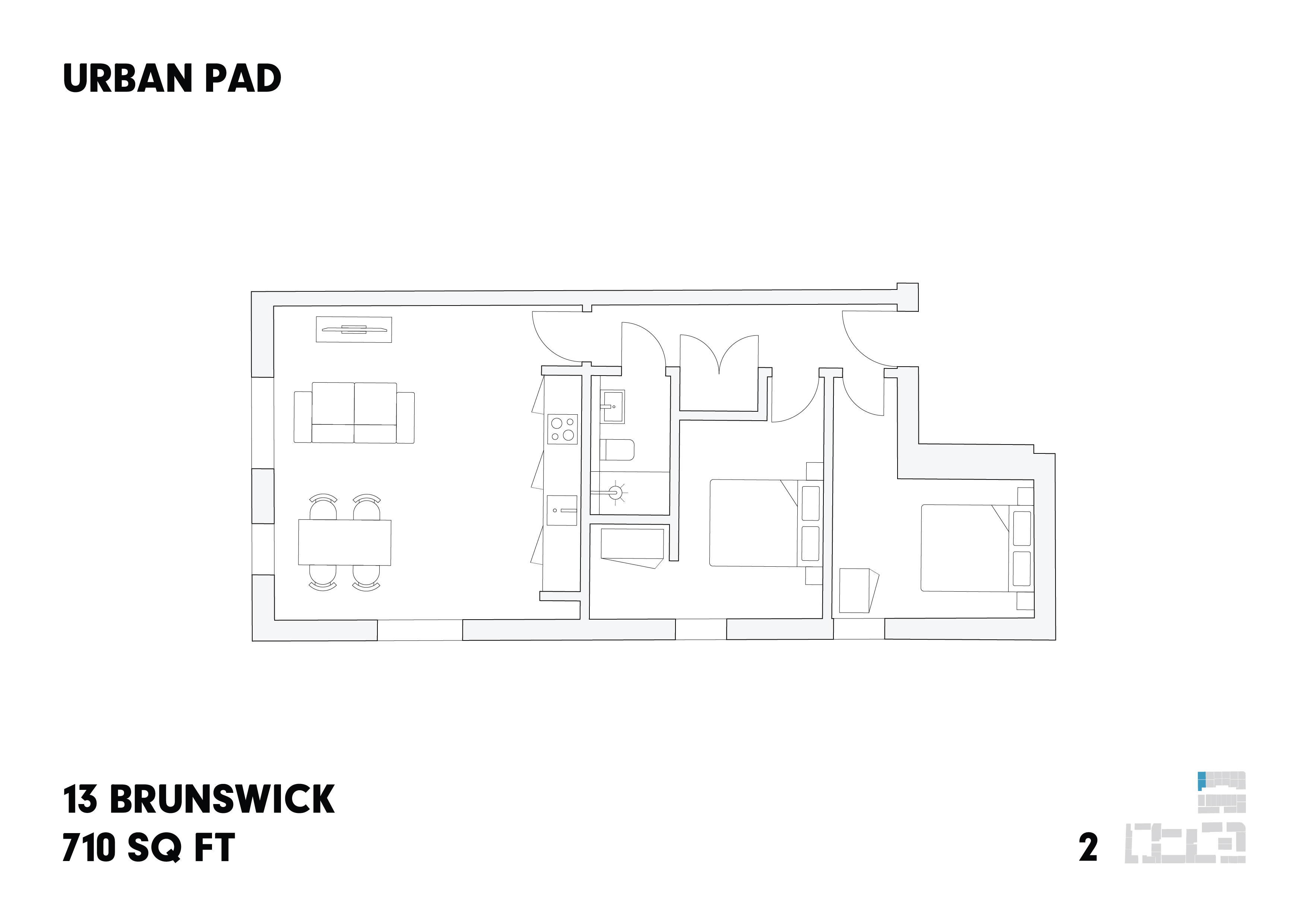 1 bedroom apartment in Brunswick, our industrial-style new build.