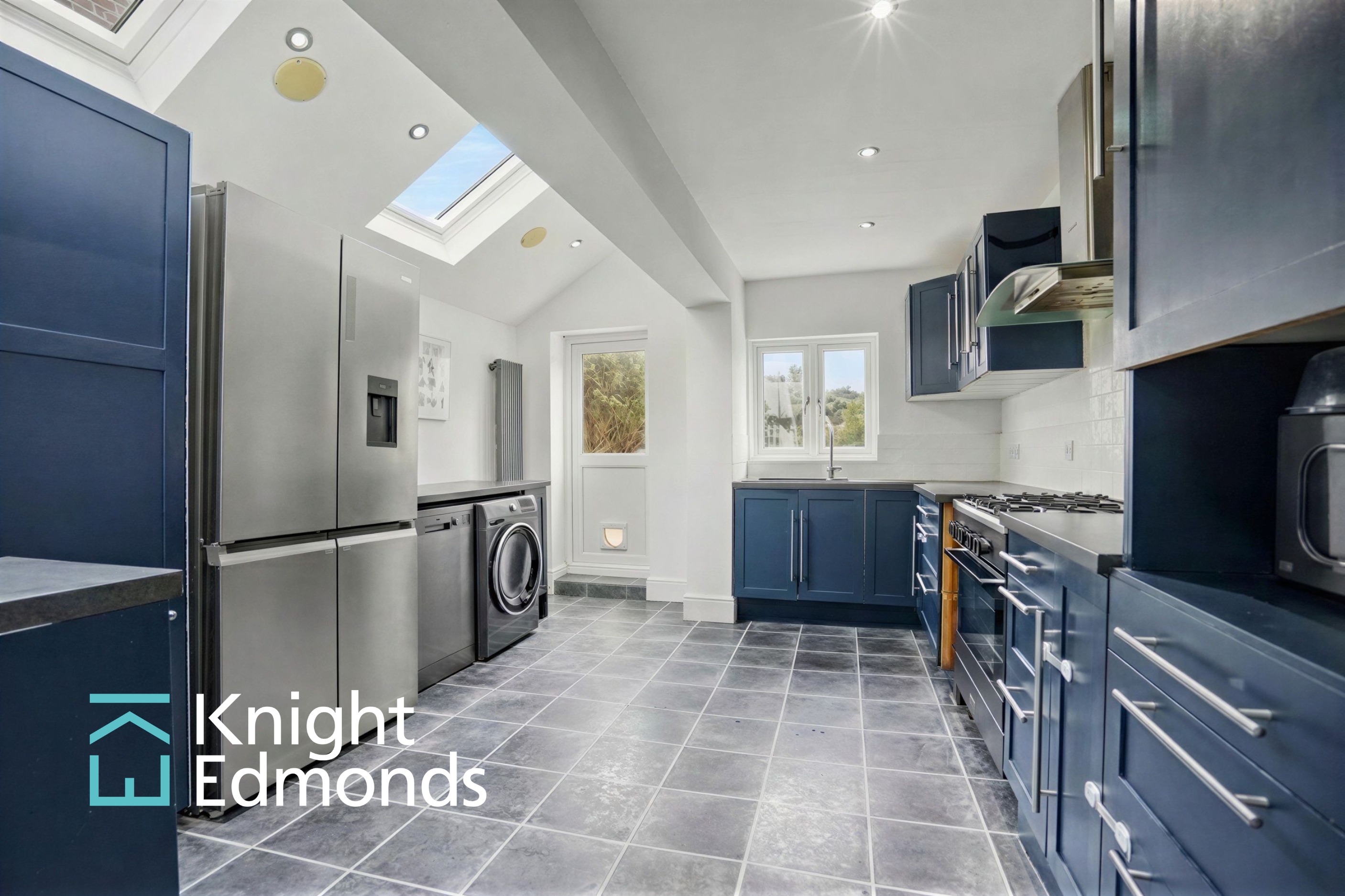 Upon entering the property, you are welcomed into a bright and inviting separate lounge, ideal for relaxing evenings, which flows seamlessly through to a well-proportioned dining room—perfect for entertaining guests or family dining. To the rear, the home truly comes into its own with a stunning modern kitchen, thoughtfully designed with sleek cabinetry, quality work surfaces, and skylights that flood the space with natural light, creating a bright and airy hub of the home.