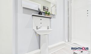 Having a walk in shower cubicle, pedestal hand washbasin and low level.w.c