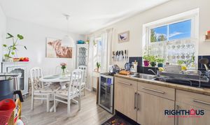 Equipped with fitted base units with counter worktop surfaces over housing a stainless steel sink unit. Outer access door servicing the rear garden.