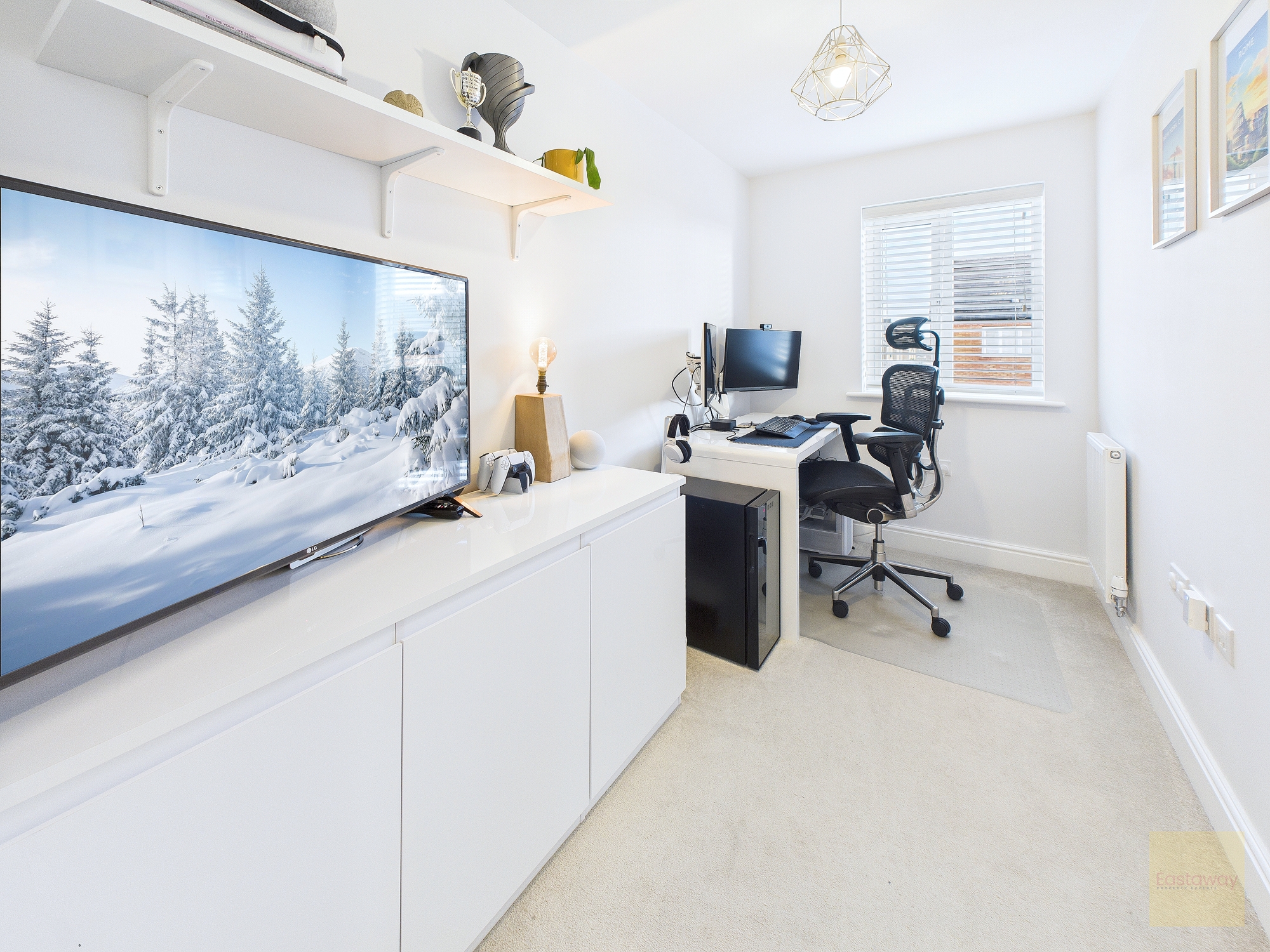 Head upstairs to the first floor and you’ll find three bedrooms and the family bathroom. Two of the bedrooms are doubles, both comfortably fitting larger beds, and the fourth bedroom works brilliantly as a home office, which is exactly how the owners now use it. What really stands out here is how adaptable the layout has been over the years. Nursery, office, guest room, snug, shared children’s bedroom, this home has flexed with every stage of life, without ever feeling compromised.