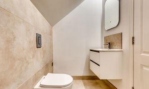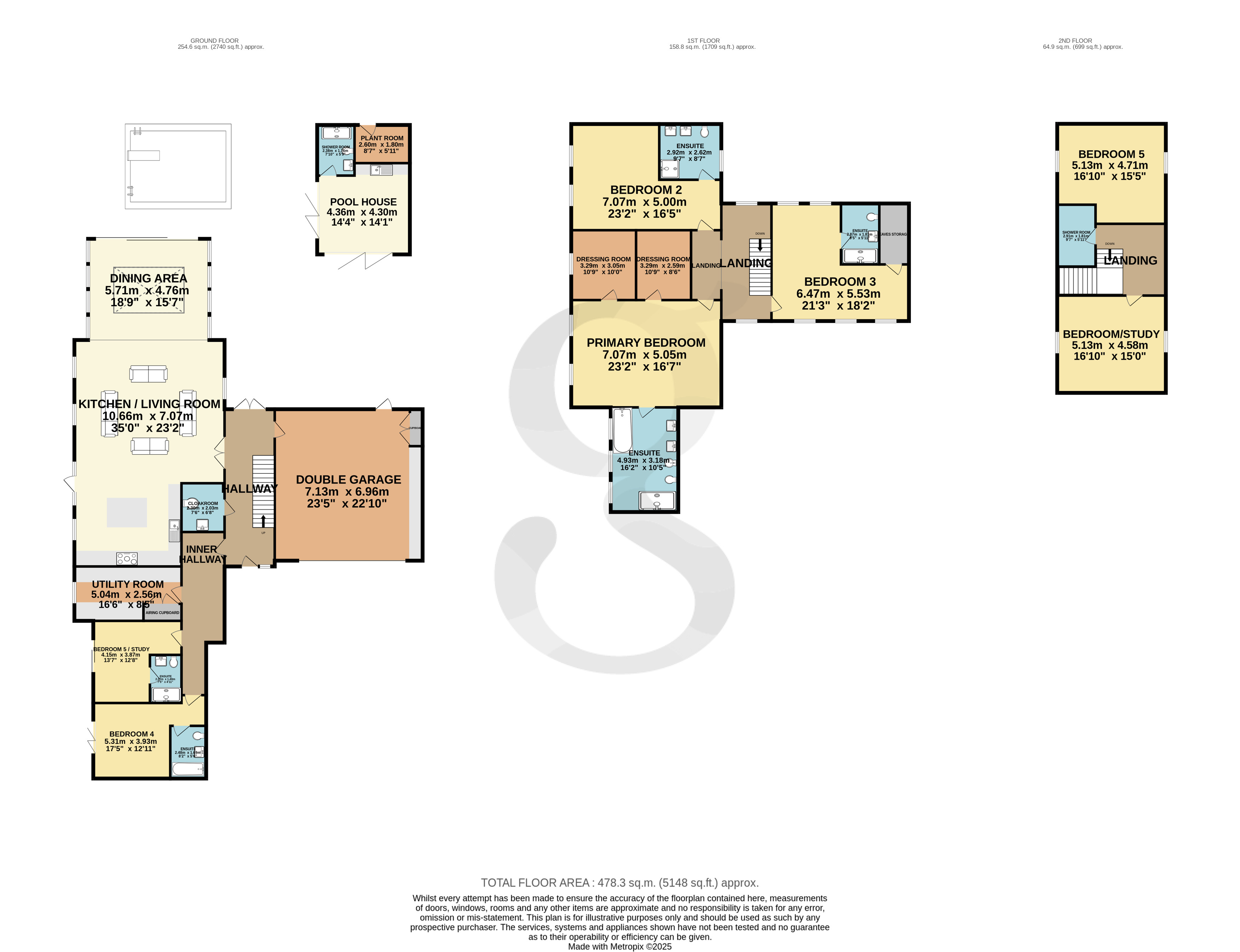 Outside, the heated swimming pool and dedicated pool house with shower facilities create a private oasis for relaxation. A double garage and forecourt parking for up to six vehicles provide ample space for family and guests alike, whilst the gated entrance offers additional security and safety.
