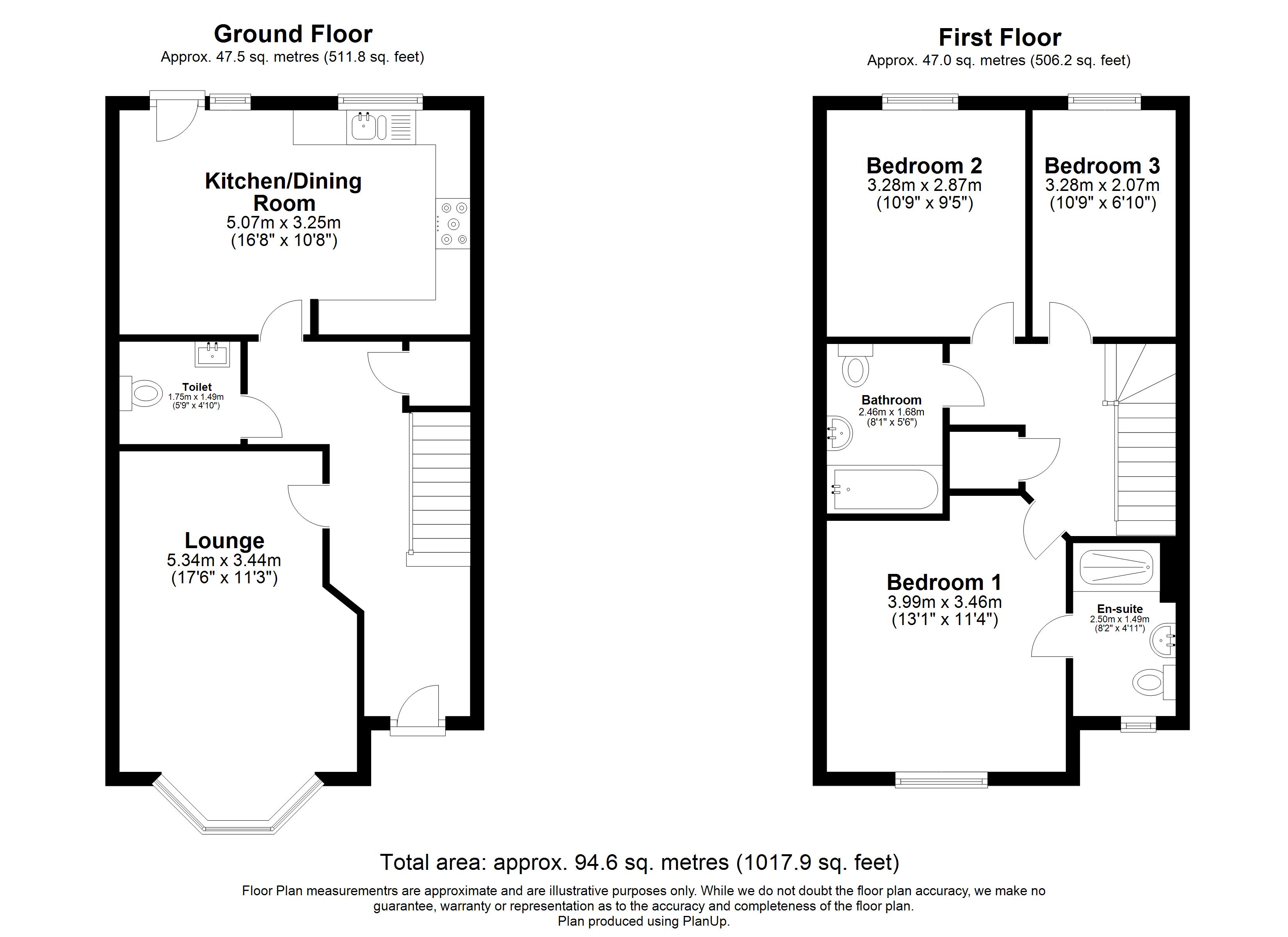 Upstairs to the first floor, this end-of-terrace home continues to impress with 3 well-proportioned bedrooms, integrated storage and a family bathroom comprising a bath with a shower attachment, a WC and a hand wash basin. The master bedroom is particularly sizeable and benefits from its own en-suite, with a walk in shower, WC and sink.