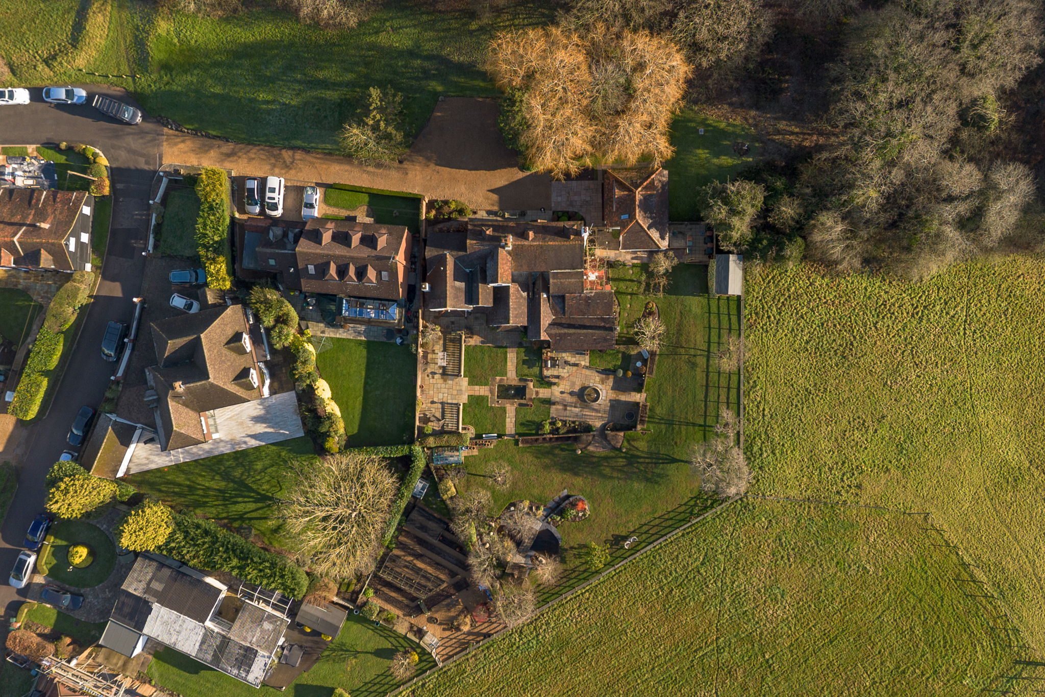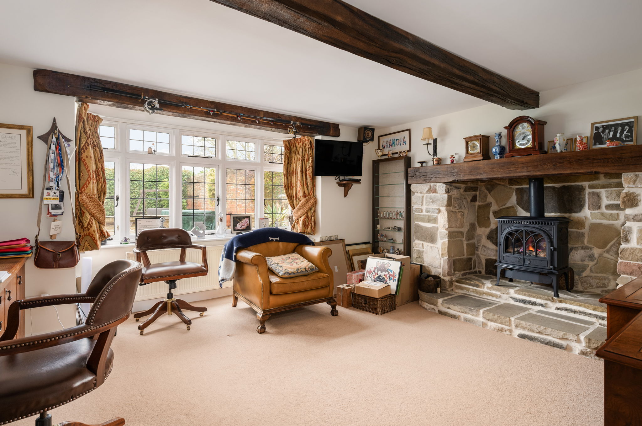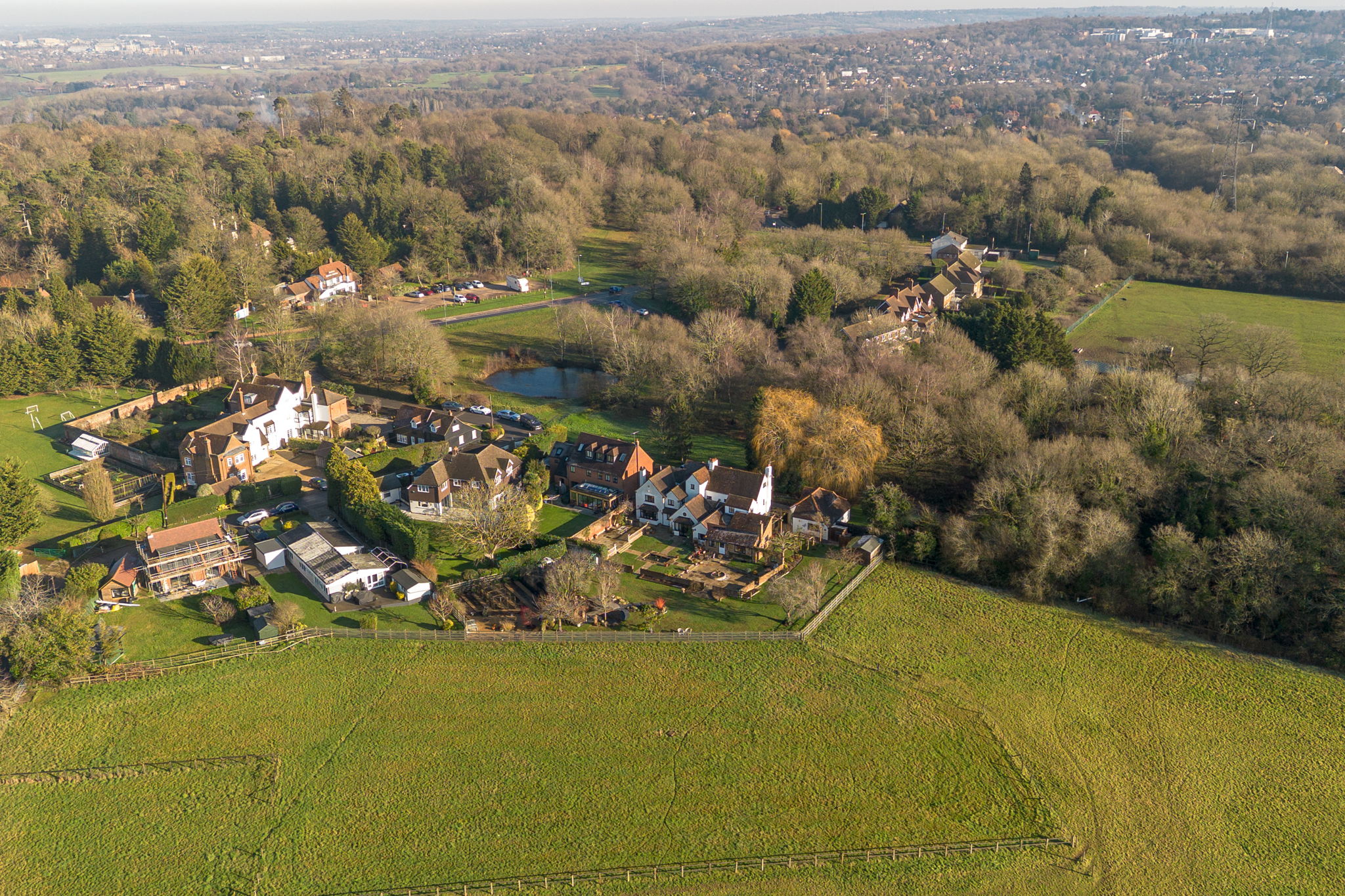 Beyond the garden boundaries, the land opens out further. The property overlooks adjoining fields and woodland, creating uninterrupted views that enhance the sense of space and tranquillity. These views are safeguarded by the home’s position within the Green Belt, as well as Batchworth Heath’s Conservation Area designation, offering reassurance that the surrounding landscape will remain protected for generations to come.