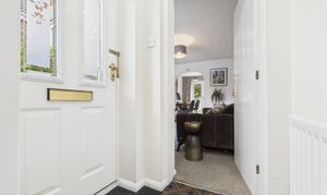 The property is approached via a private paved driveway, providing access to an integral garage with an up-and-over door. The garage also offers excellent storage or, subject to the necessary consents, potential for conversion into further living accommodation. A neatly shaped front garden laid to lawn, together with a pathway to the entrance door, completes the frontage.