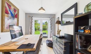 On entering the home, a welcoming hallway gives access to a useful downstairs WC/cloakroom. A linking door leads into the spacious and airy living room, the principal reception space, which also benefits from an under-stairs storage cupboard. An open archway flows into the dining room, which enjoys pleasant garden views and access via French doors to the rear garden, making it ideal for entertaining. Completing the ground floor is the kitchen, fitted with a range of units and complementary work surfaces, with space for appliances and housing the gas-fired combination boiler.