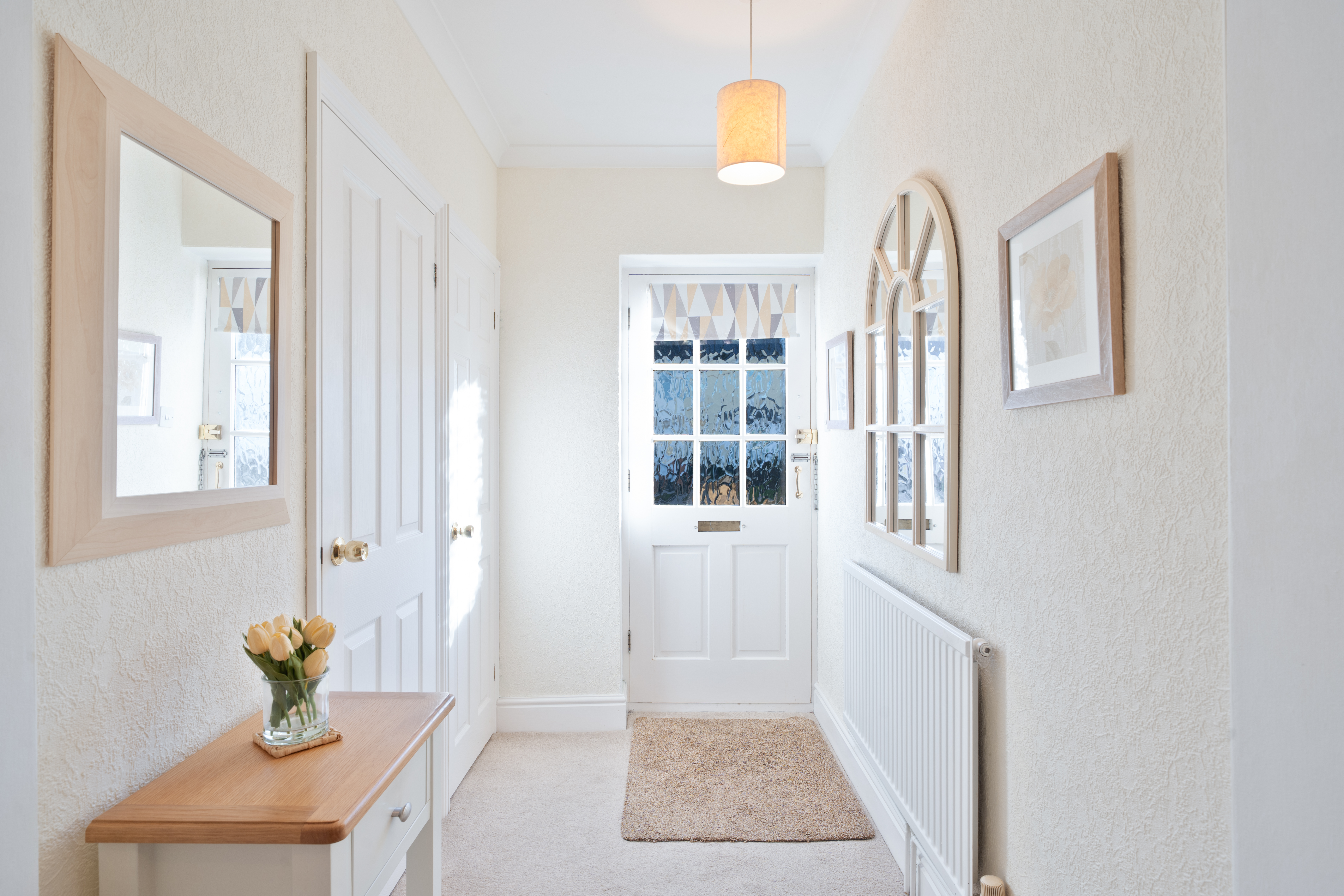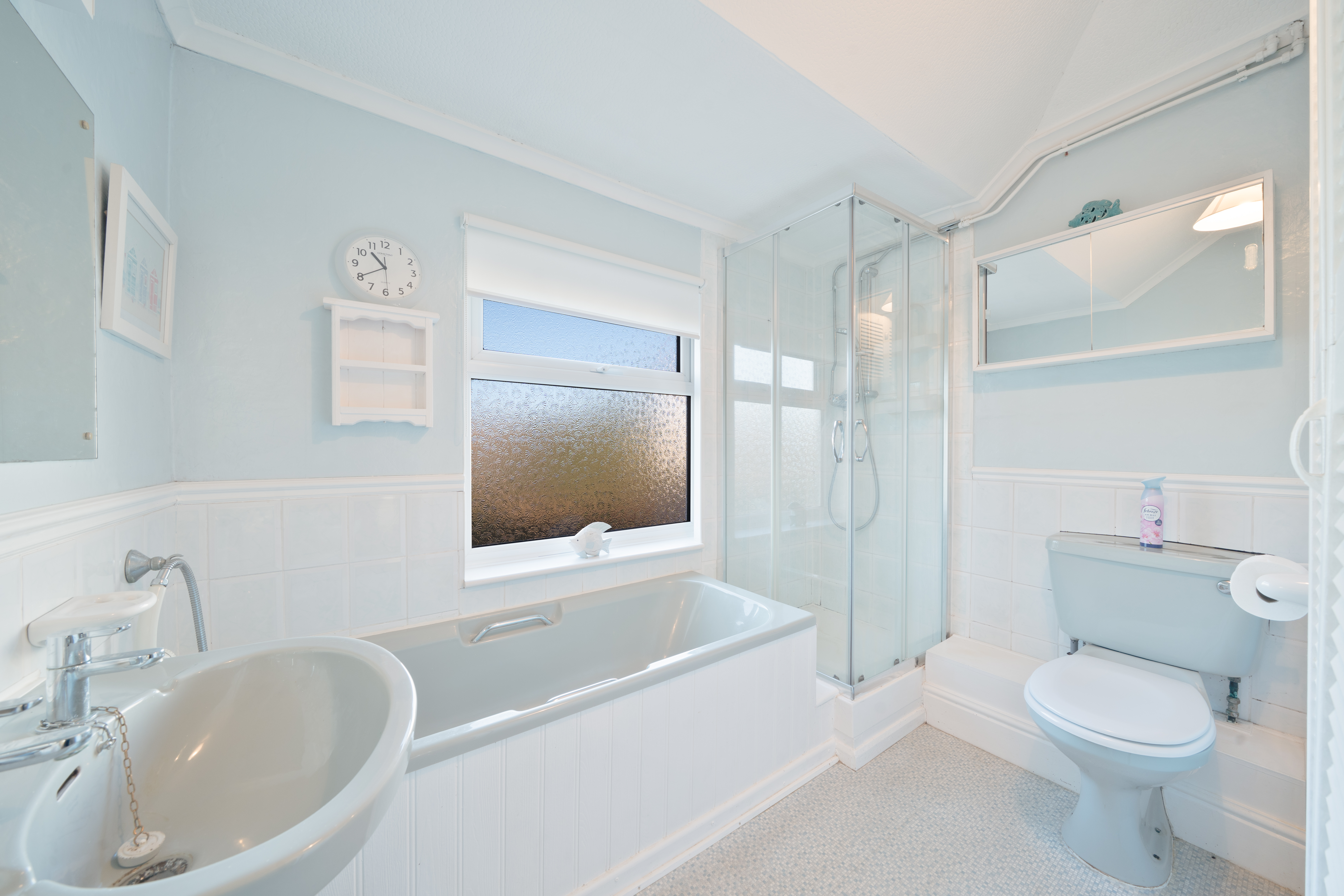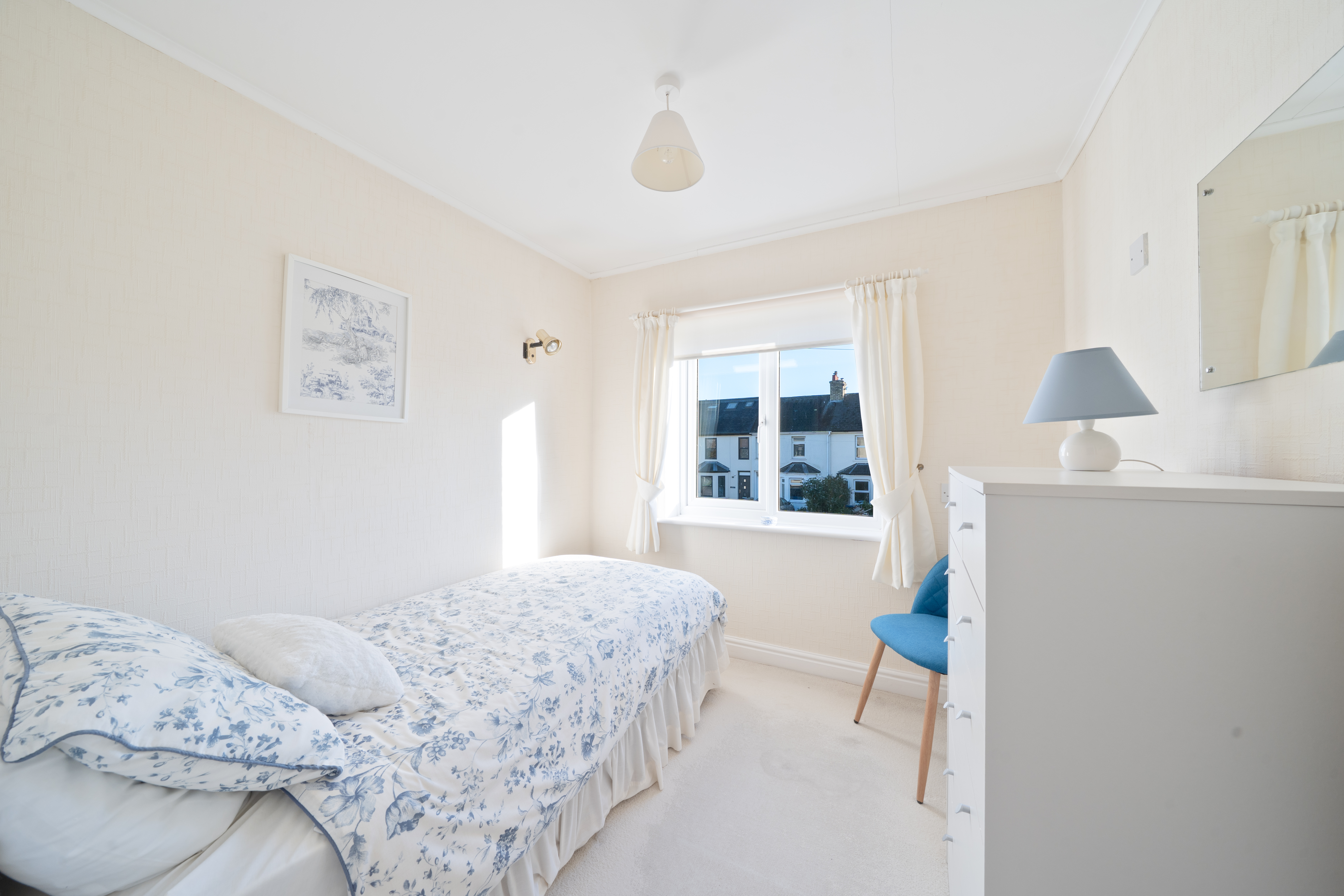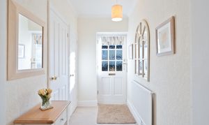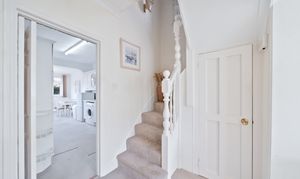The property opens into an enclosed entrance hallway, complete with a practical storage cupboard for coats and shoes. The spacious open-plan lounge and dining area is bright and airy, featuring a gas fire. Large windows allow the natural light to flow through the space. The fitted kitchen is thoughtfully designed with ample storage units, generous worktop space and a gas oven. Space for a dining table is toward the end of the kitchen. A ground-floor WC is conveniently provided for guests. The first floor comprises the generously sized principal bedroom, benefitting from free standing mirrored wardrobes, providing elegance and practical storage. The second bedroom is also a spacious double, complete with fitted storage units. The third bedroom is a smart, bright single room, ideal for use as a guest space or home office. The first-floor family bathroom is well appointed, featuring a WC, basin, bath, shower and mirrored storage cabinets. An additional laundry or linen room on this floor adds further convenience and storage. Externally, the property boasts an extensive rear garden complete with a variety of mature trees and a shed for external storage.