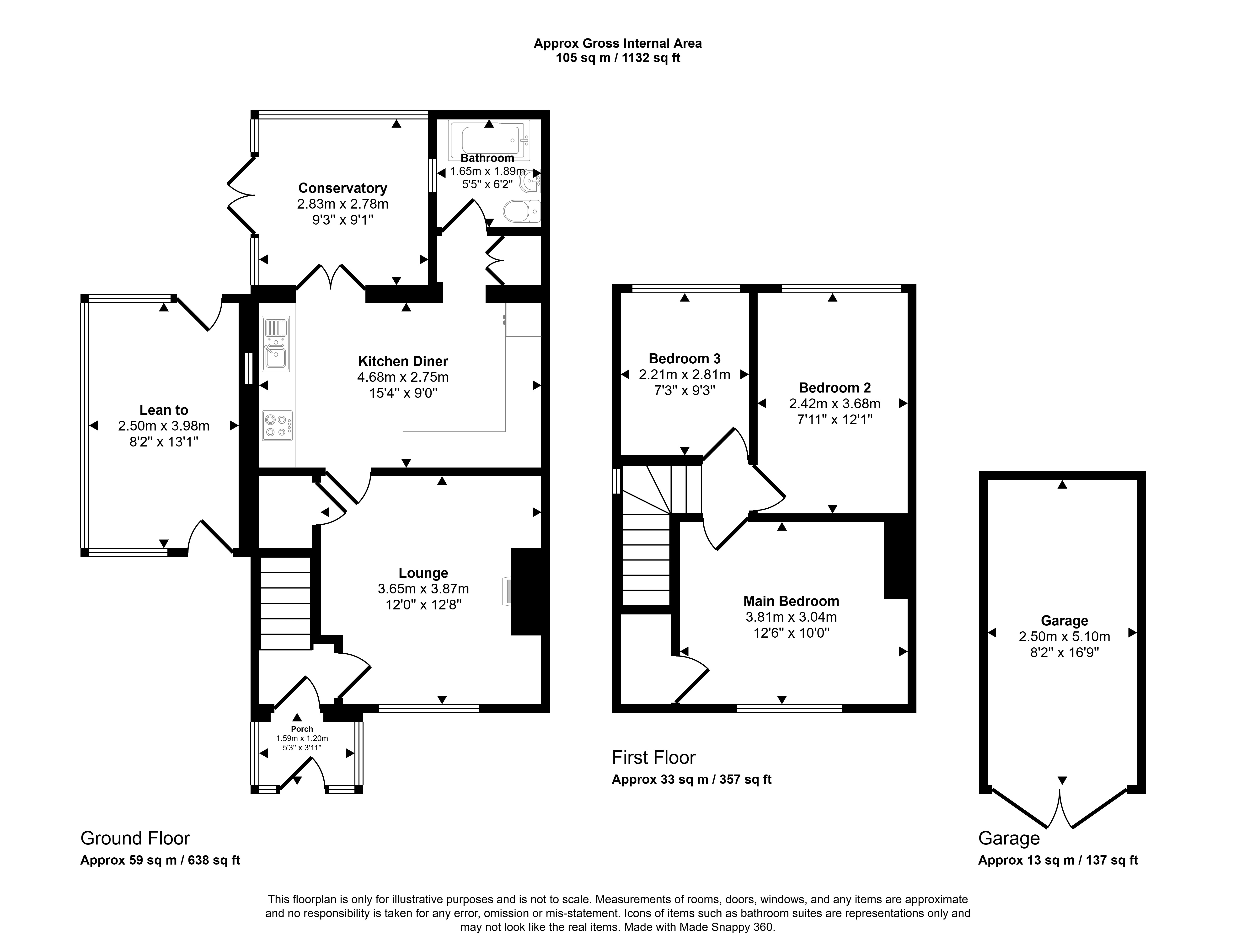 The ground floor also benefits from a modern family bathroom, along with a conservatory overlooking the garden and a practical lean to to the side of the property, ideal for storage or additional utility space.