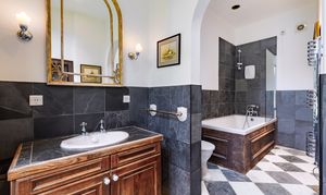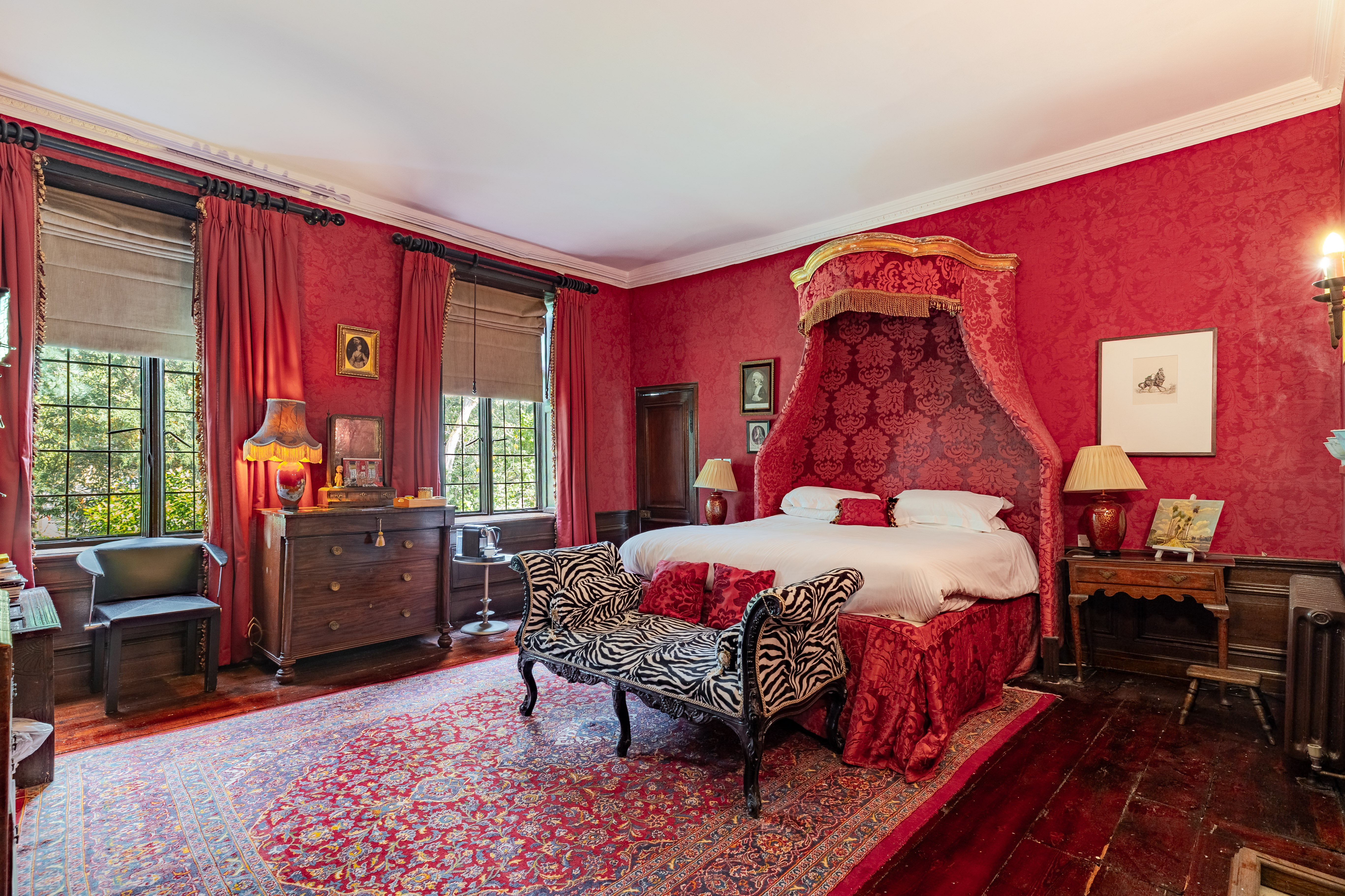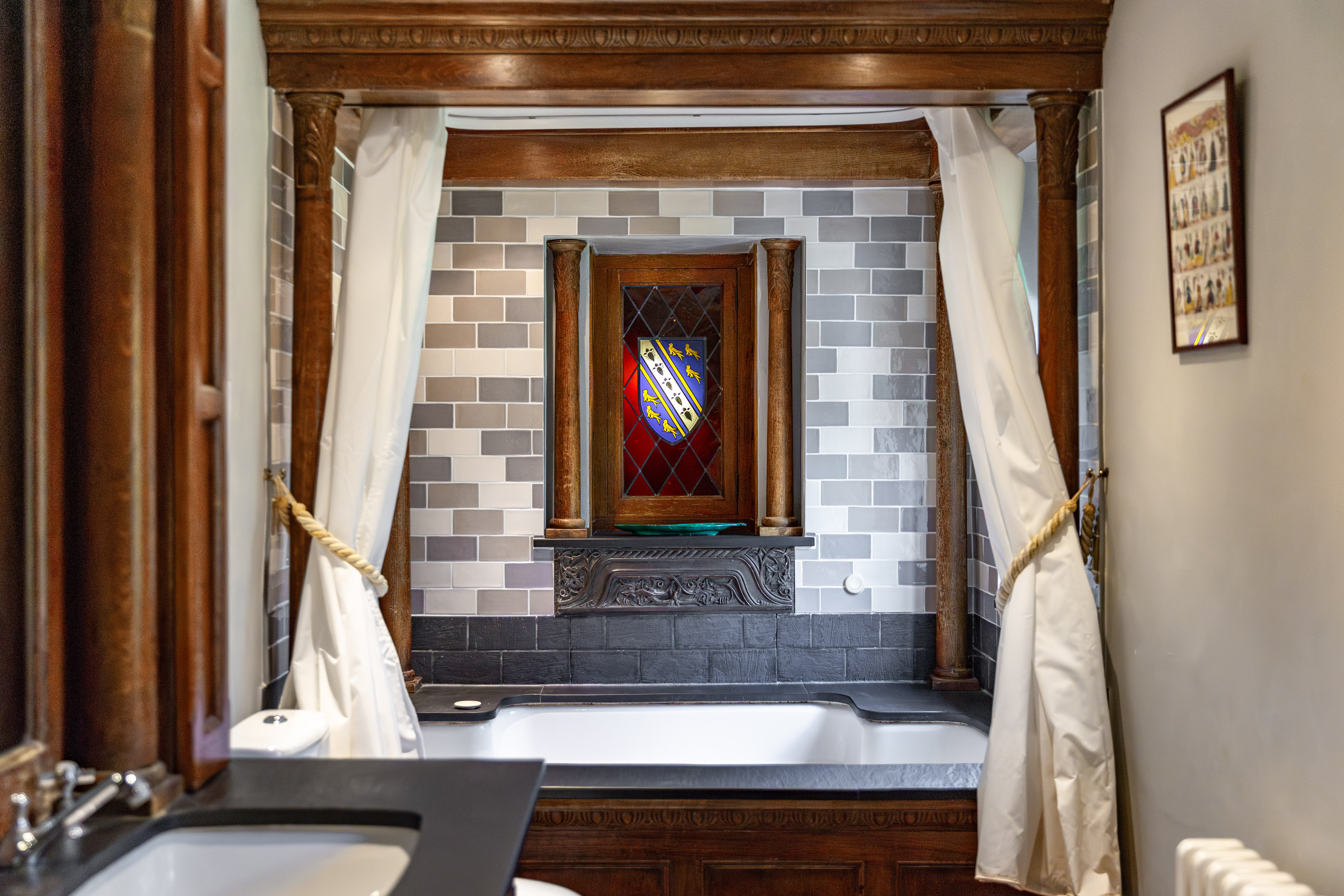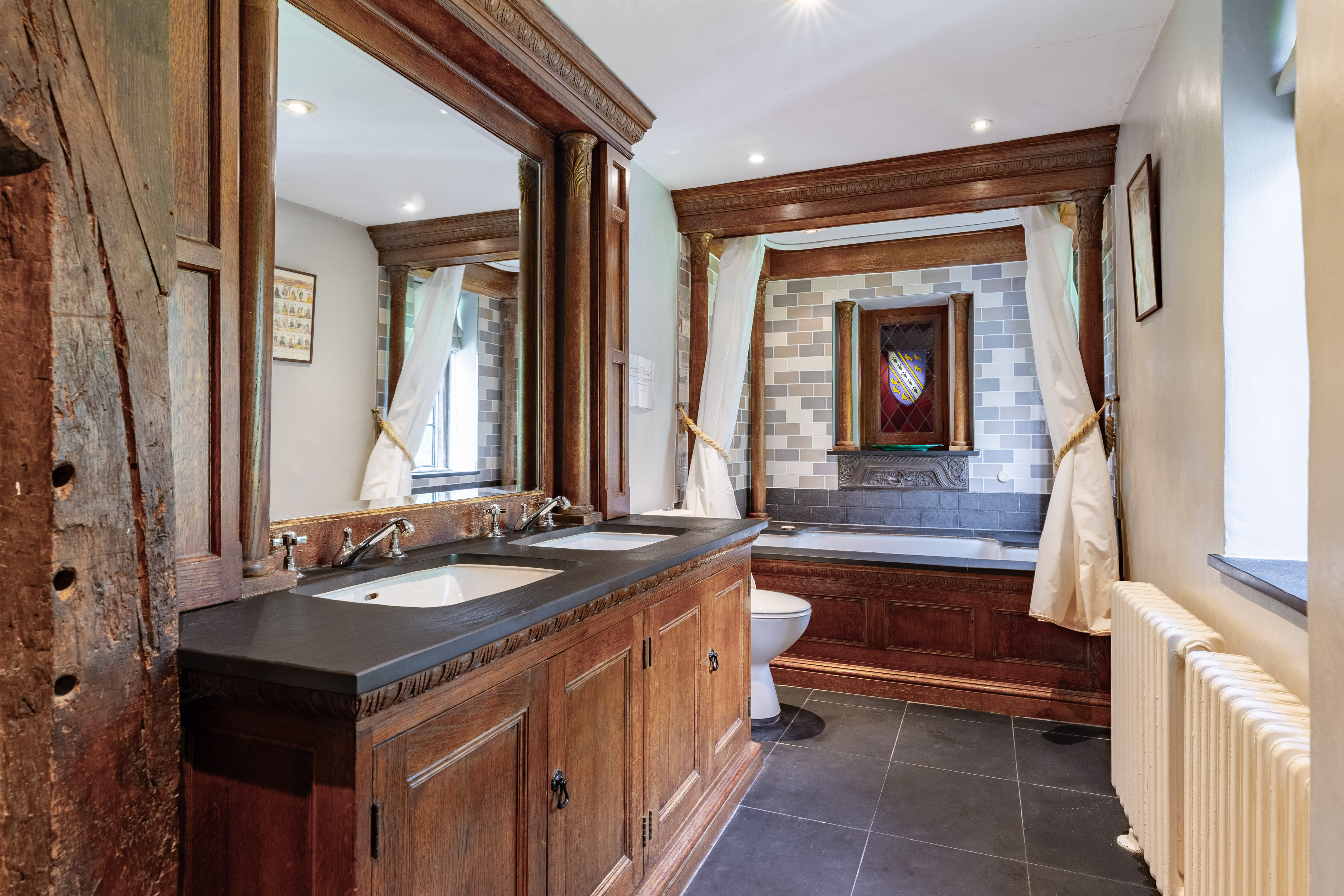 Across the first and second floors are seven bedrooms of impressive scale, including suites with the feel of boutique accommodation. Some are richly panelled, others feature vaulted ceilings and exposed timbers, each offering a distinct sense of place. Bathrooms combine traditional charm with modern comfort, and studies provide quiet corners for work or retreat.