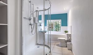 The ground floor unfolds in a sequence of rooms, each with its own style and spirit. A panelled drawing room, a striking blue sitting room, dining and music rooms, a family snug and more. Some are grand and filled with light, while others are intimate with Tudor fireplaces, mellow floorboards and beams polished by time. The main kitchen centres around an Aga set into granite worktops, while a second kitchen provides additional space for everyday practicality or larger gatherings. Together, they create a heart for family life and entertaining alike.