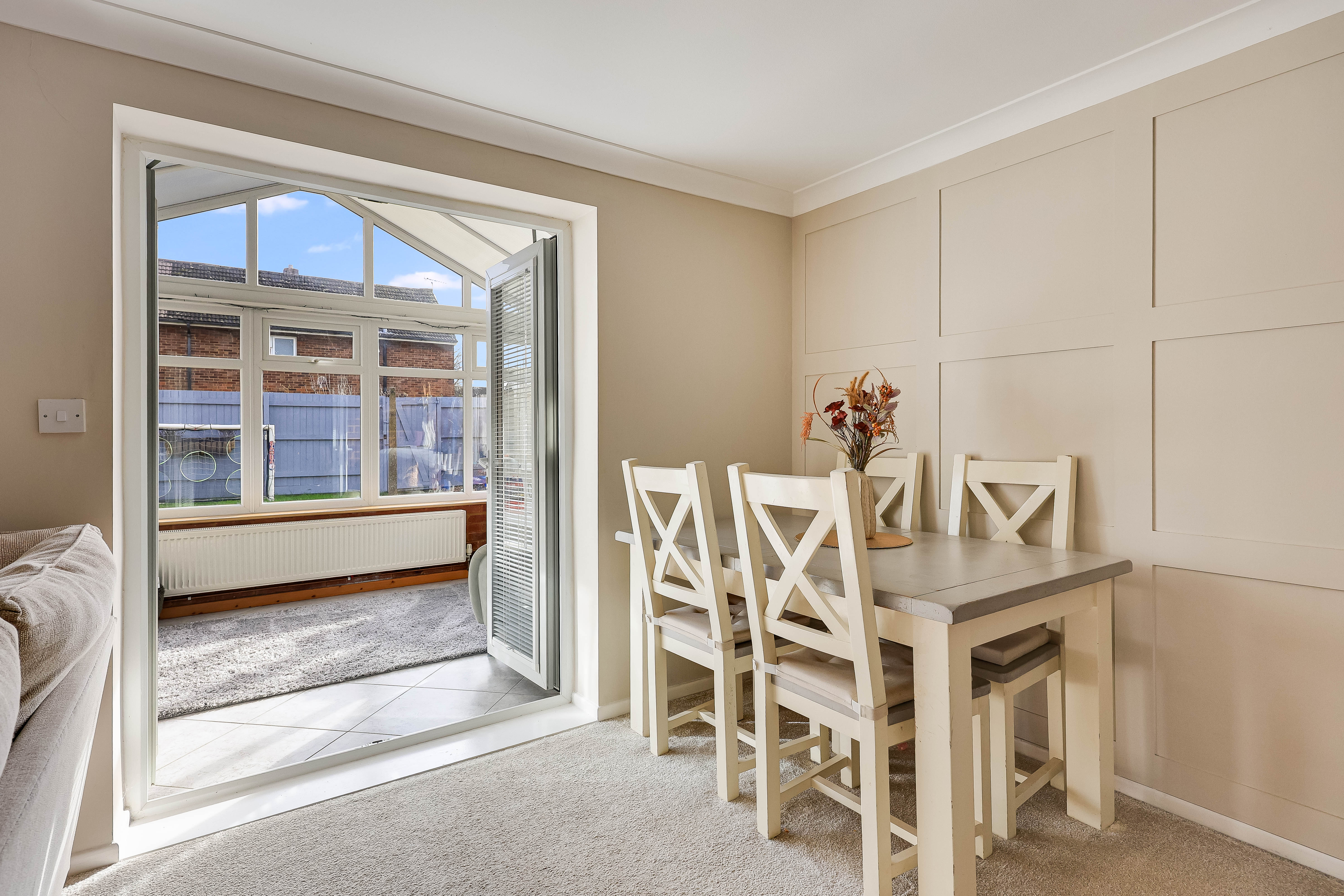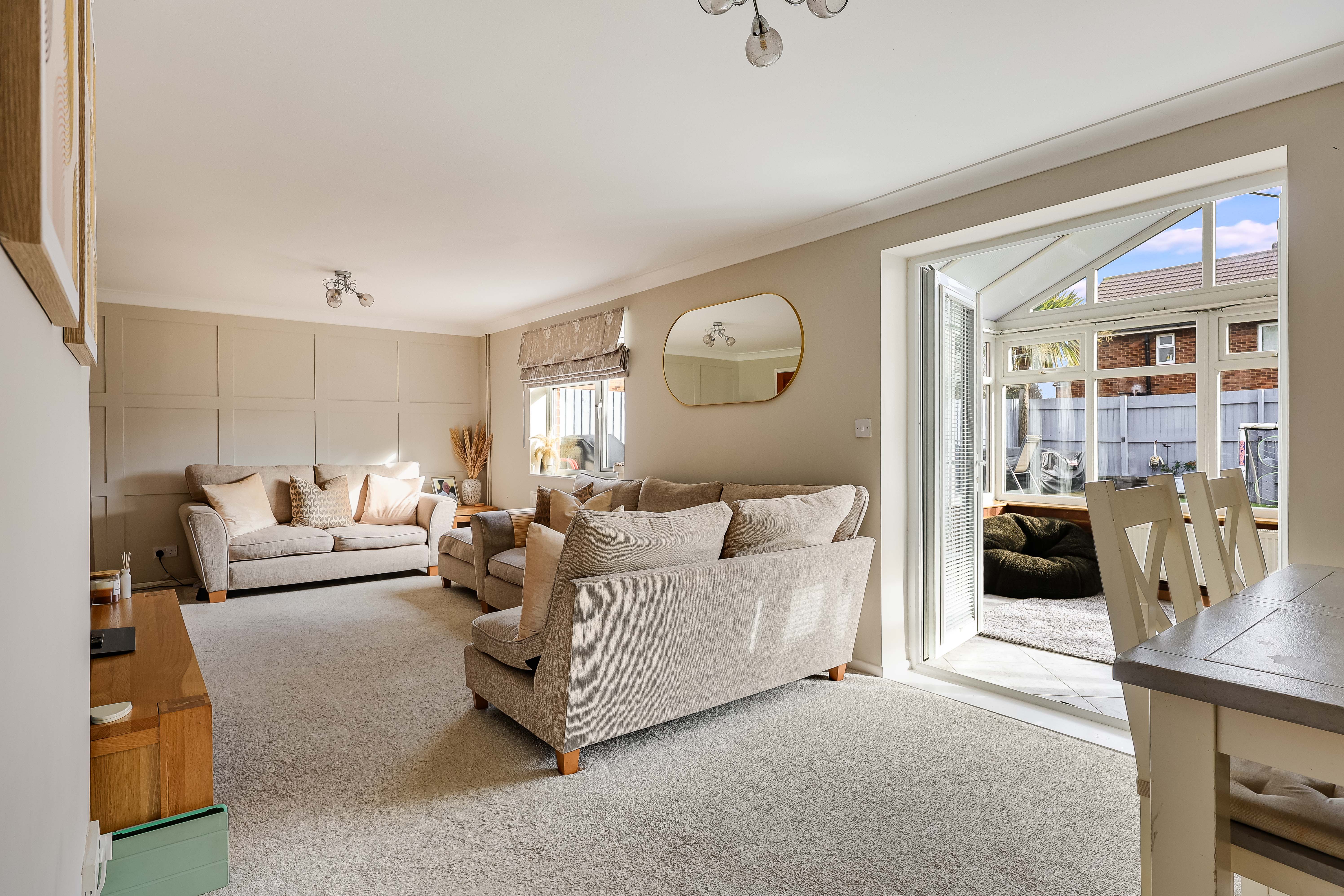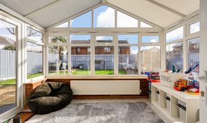 - Light-filled conservatory providing additional reception space with garden views