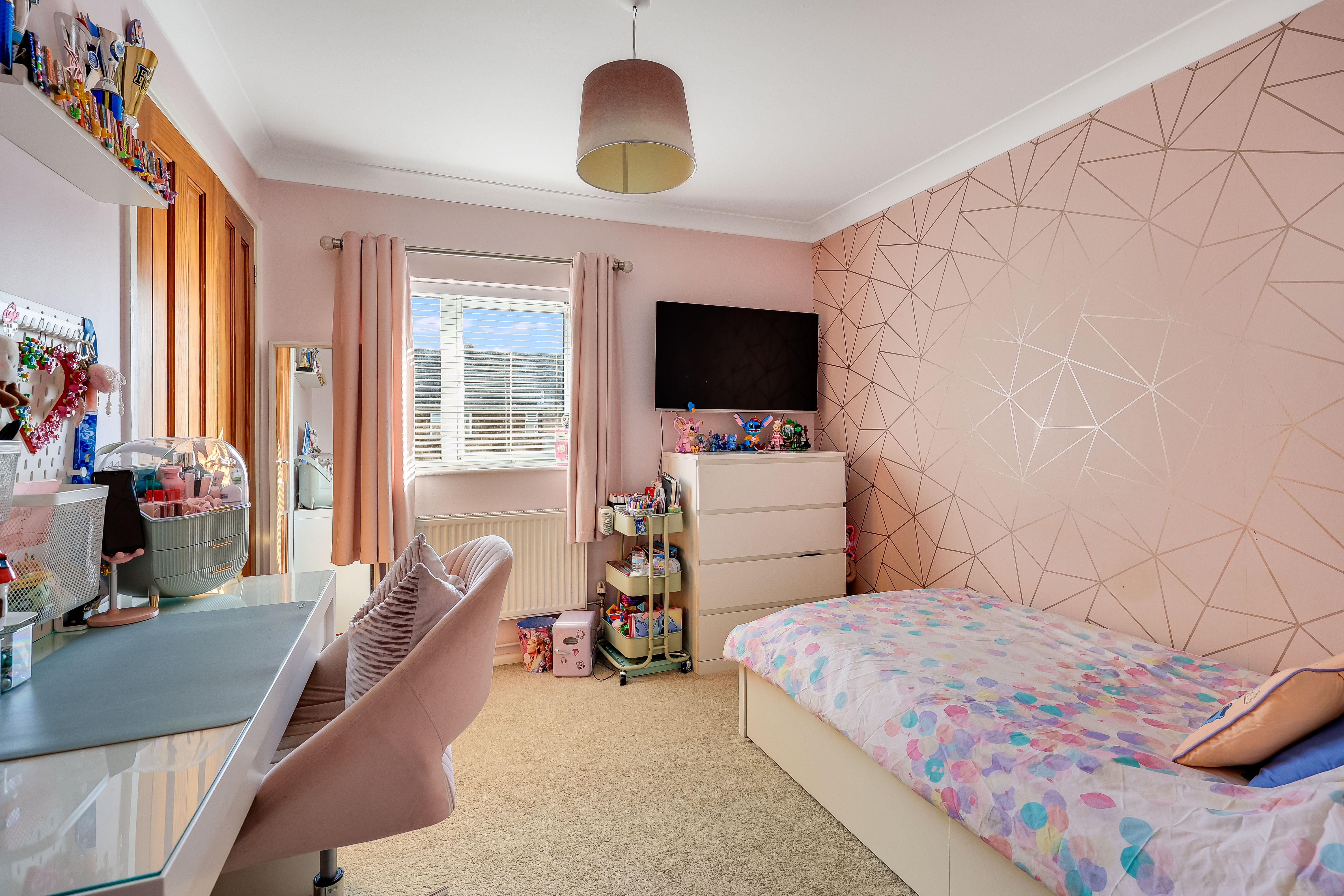 Upstairs, three well-proportioned bedrooms provide comfortable family accommodation, complemented by the home’s overall sense of space and natural light.