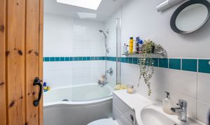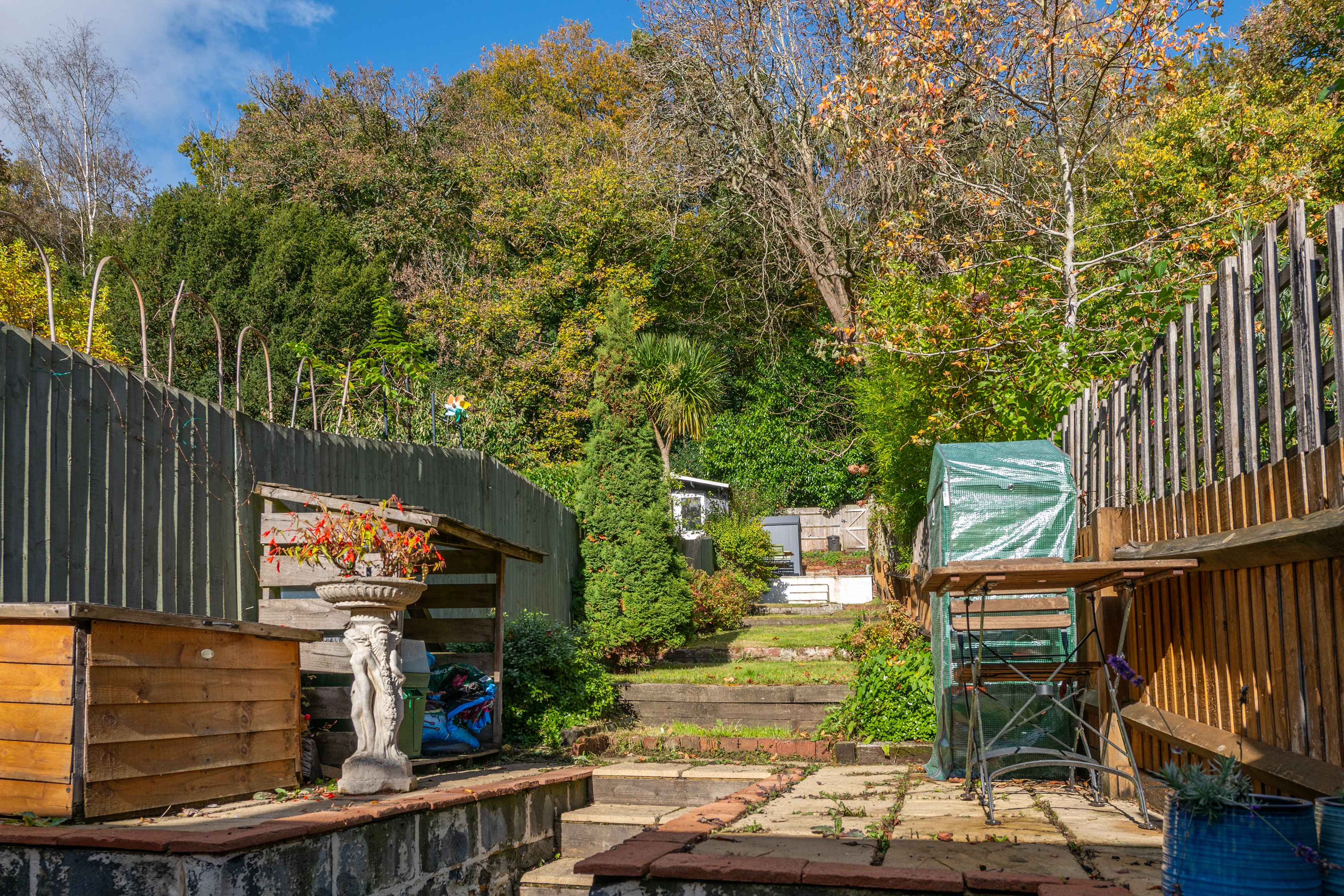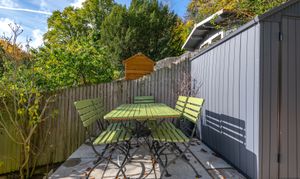 Upstairs, two double bedrooms provide comfortable retreats, with the master bedroom offering scenic vistas of the front garden and the historic St John's Primary School. Bedroom two overlooks the expansive rear garden, creating a serene backdrop for relaxation.
