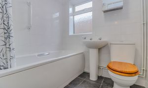 Returning to the entrance hall, further doors lead off to two generous bedrooms, both being double berths and with the master bedroom having fitted wardrobes. Completing the accommodation is a family bathroom with tiled walls and comprising a panelled bath with shower over, low flush WC and a pedestal wash hand basin.