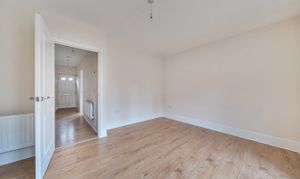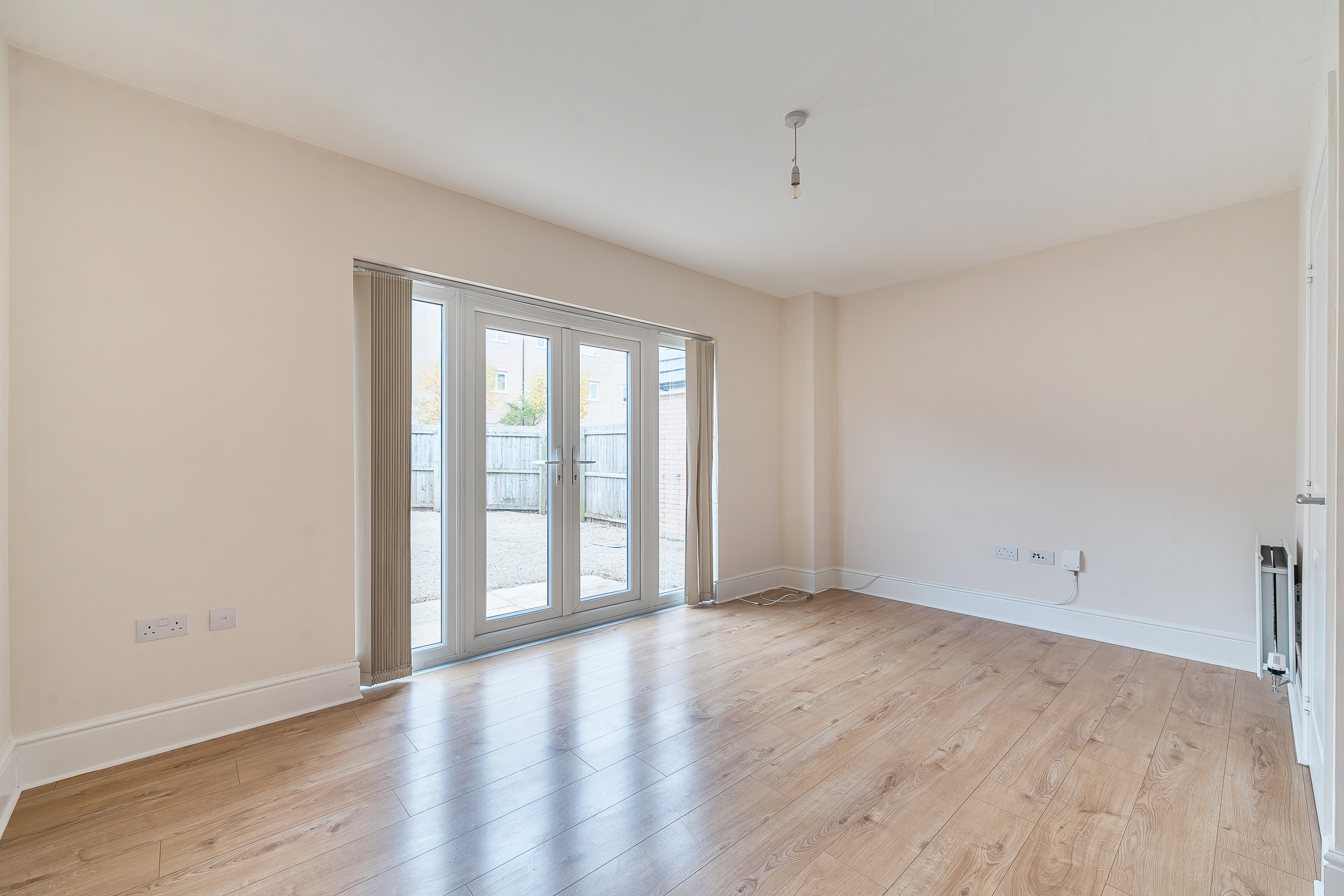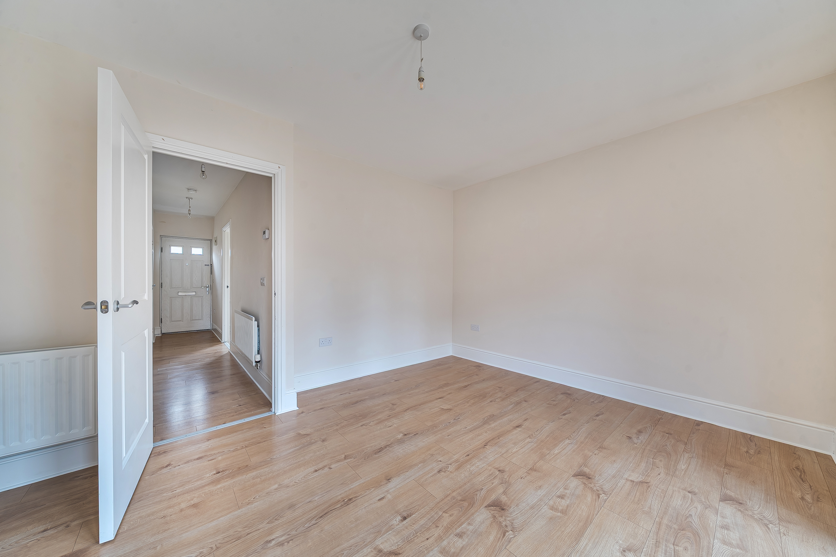 The front door opens into a spacious and welcoming hallway, finished with warm wood-panel flooring, setting the tone for the rest of the home. At the end of the hall lies a generous sized living room, ideal for relaxing or entertaining, with double doors that open directly onto a private rear garden fully enclosed by fencing for added privacy and security.