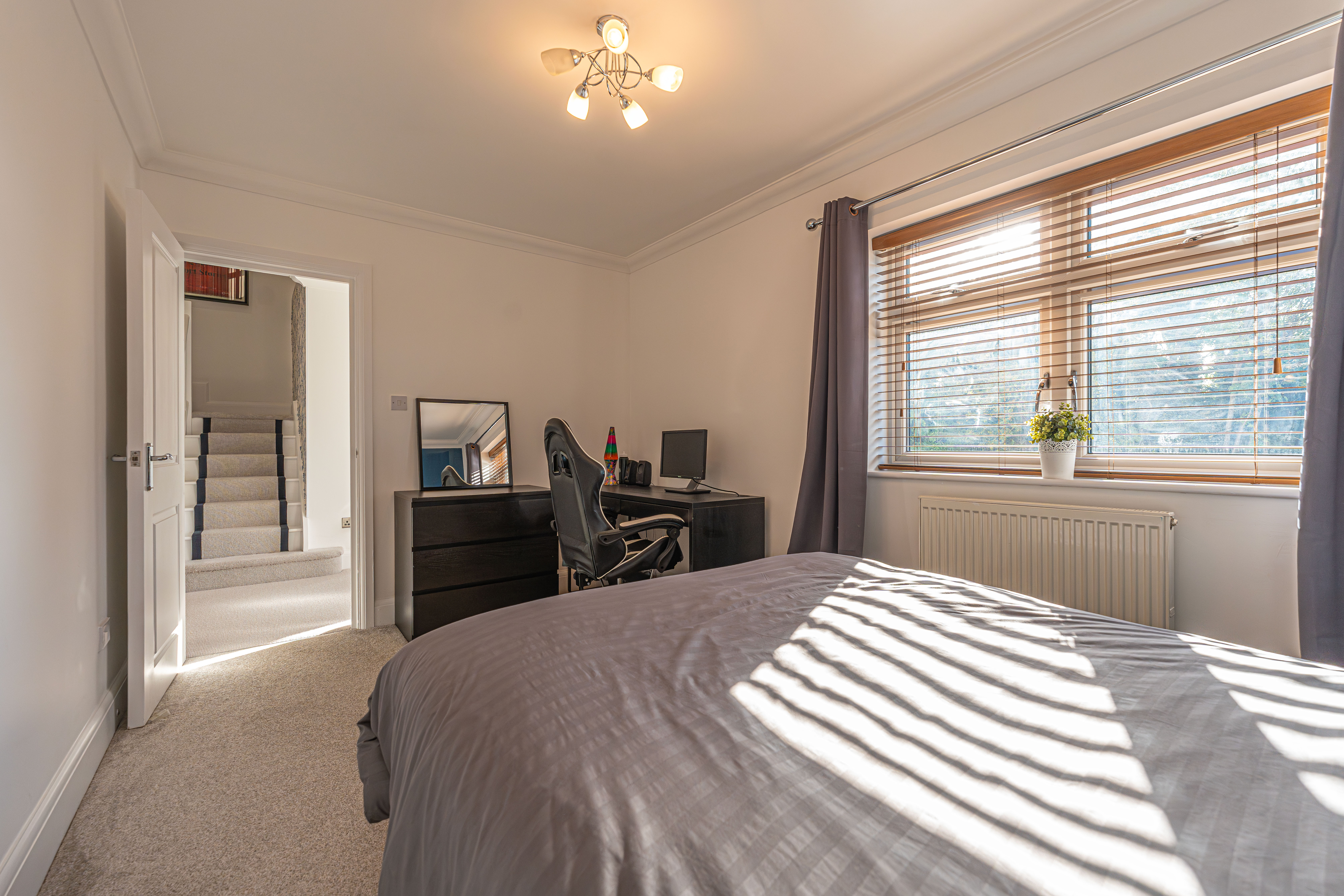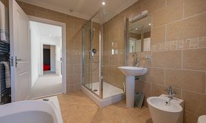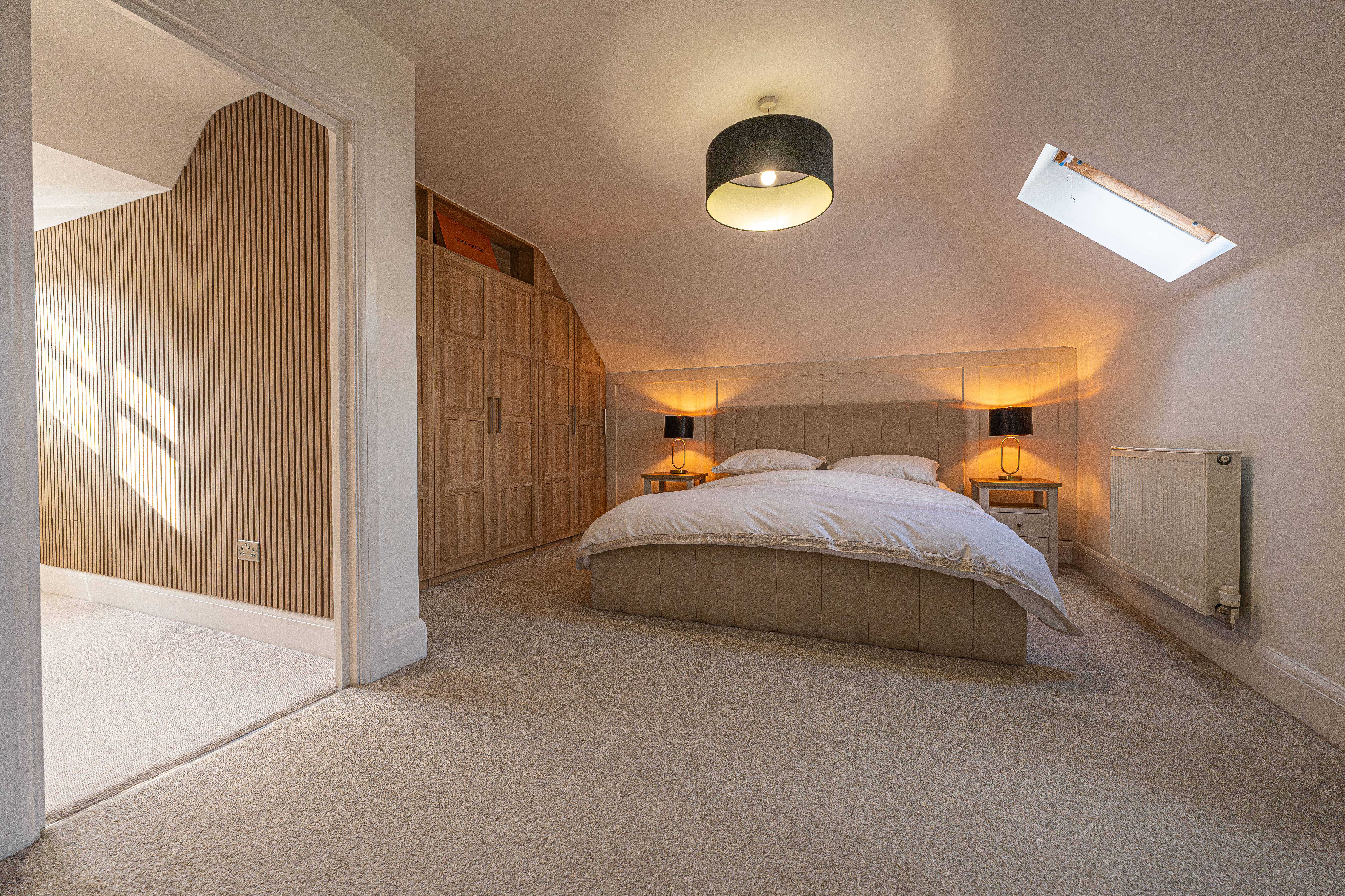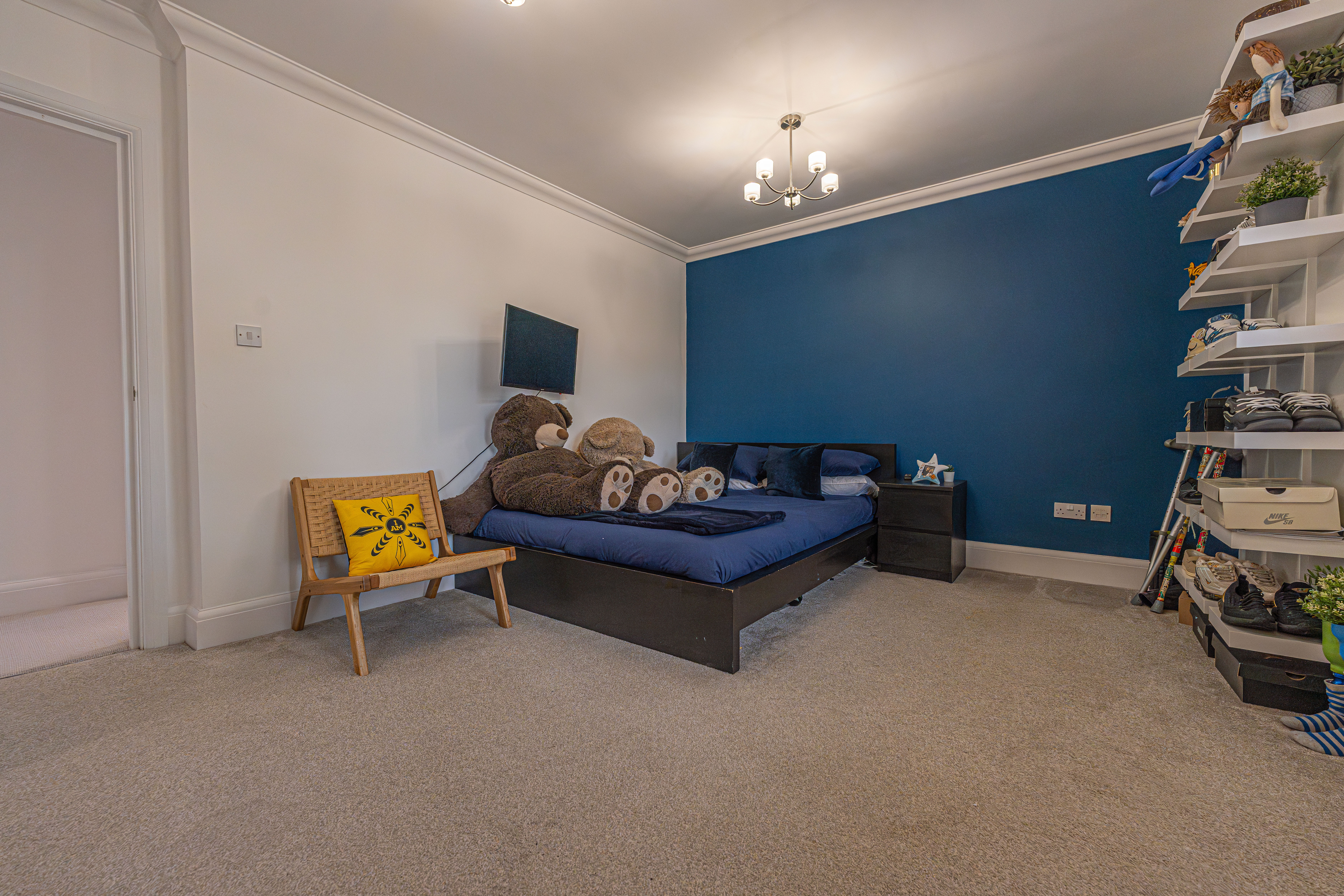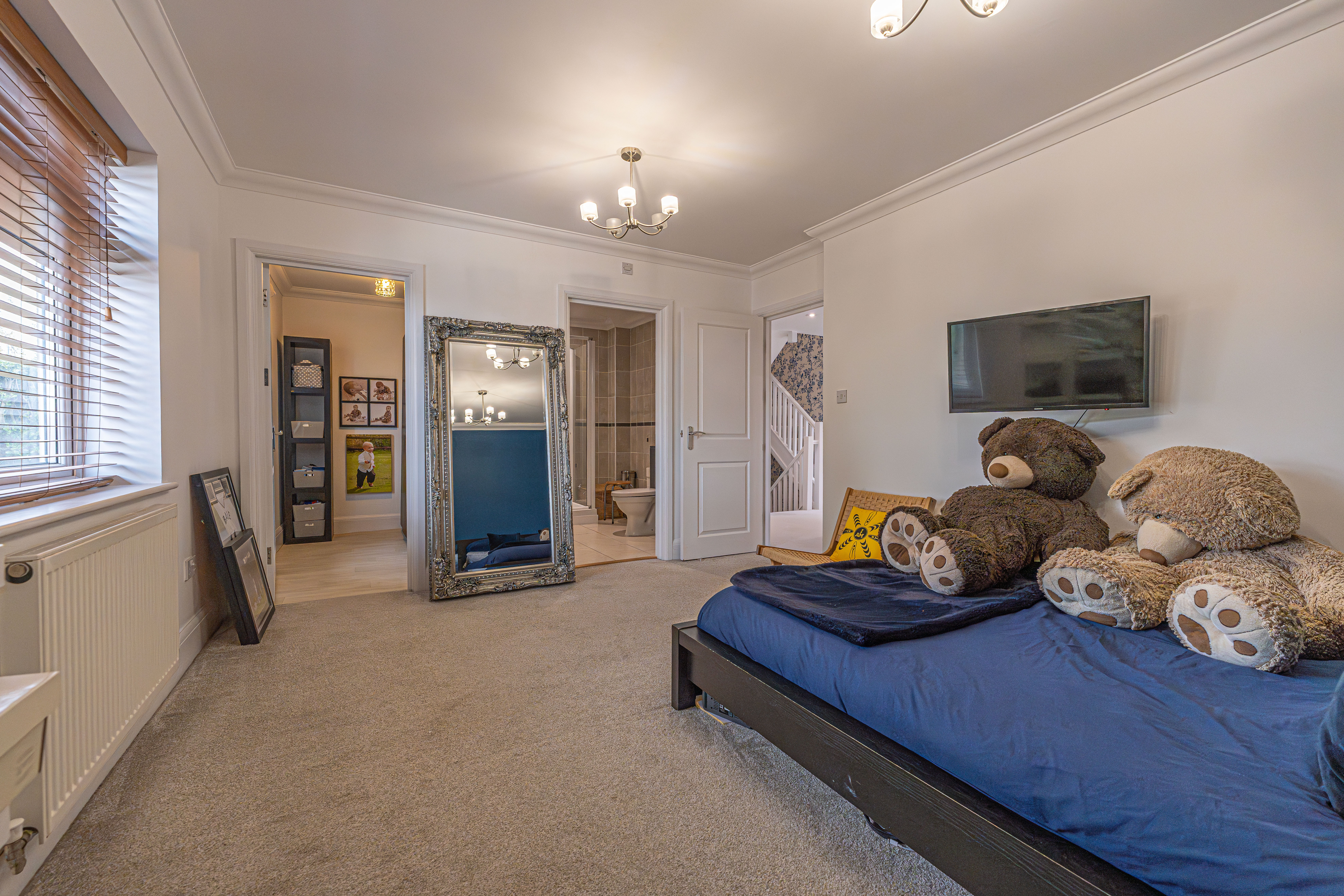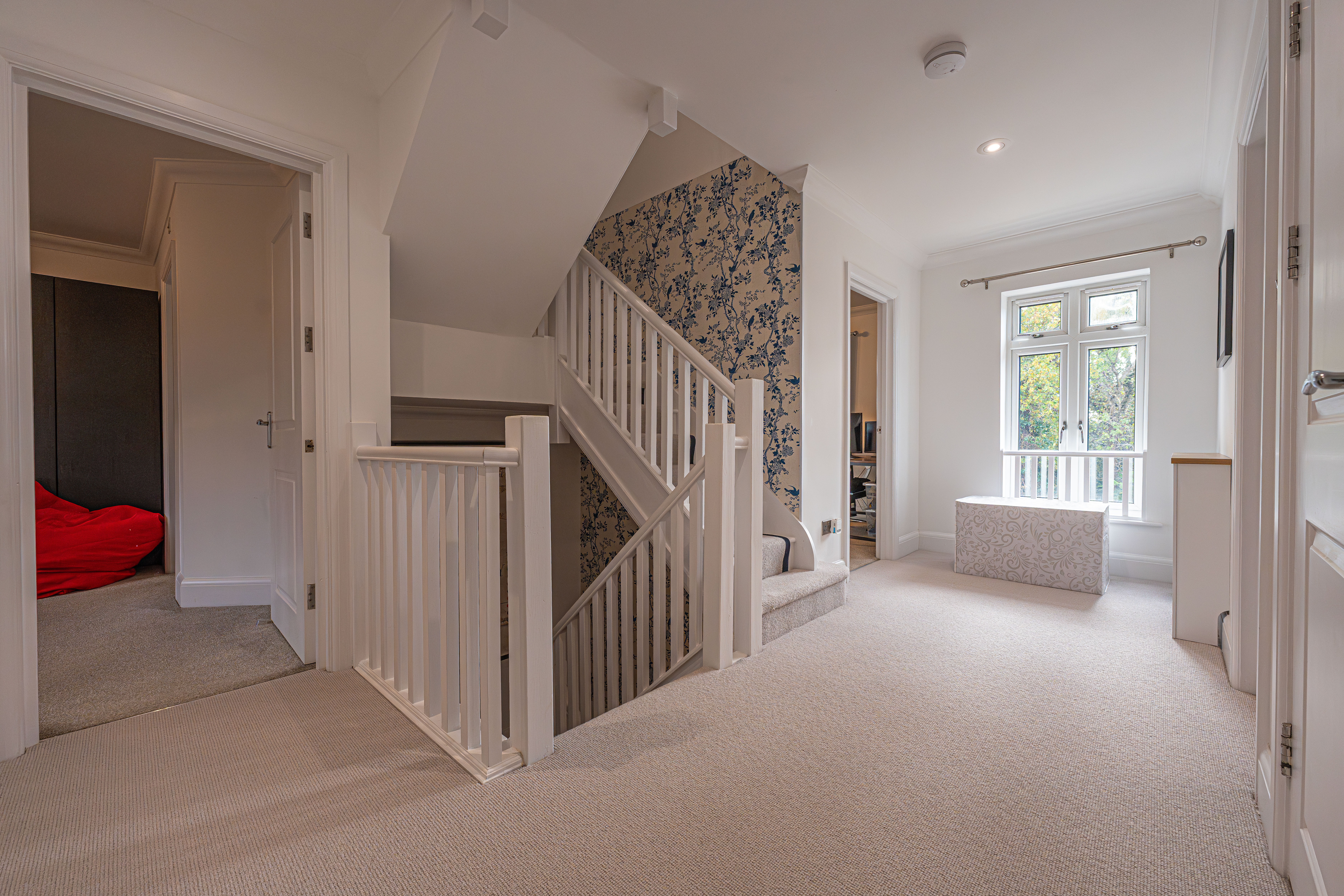Ascending to the first floor we can find four generously sized double bedrooms, which are highlighted with modern décor, plush carpeting, and abundant natural light streaming in through the many windows , enhancing the stylish ambience throughout. Two of the bedrooms found on the first floor are equipped with en-suite shower rooms for added convenience, including one bedroom that also enjoys an attached dressing room which is ideal for a walk in wardrobe space. The first floor also showcases a large open hallway, which connects to a useful airing cupboard and the family bathroom, which is equipped with a bath suite, toilet, bidet, and a separate shower unit. This incredible property also features a second floor, which is occupied solely by the fifth and final bedroom, which has the added benefit of built-in wardrobes and another en-suite for added luxury.