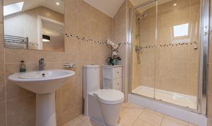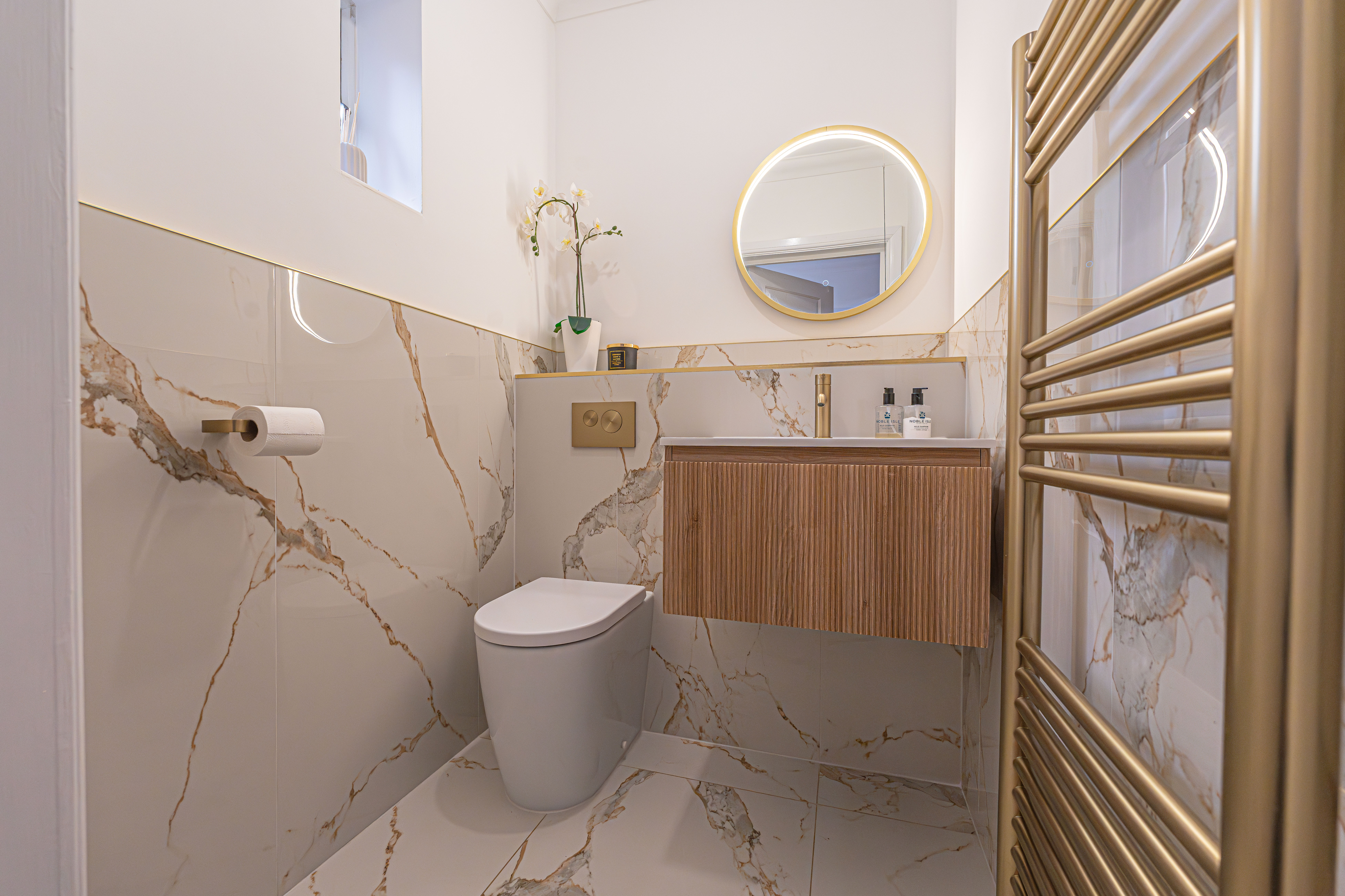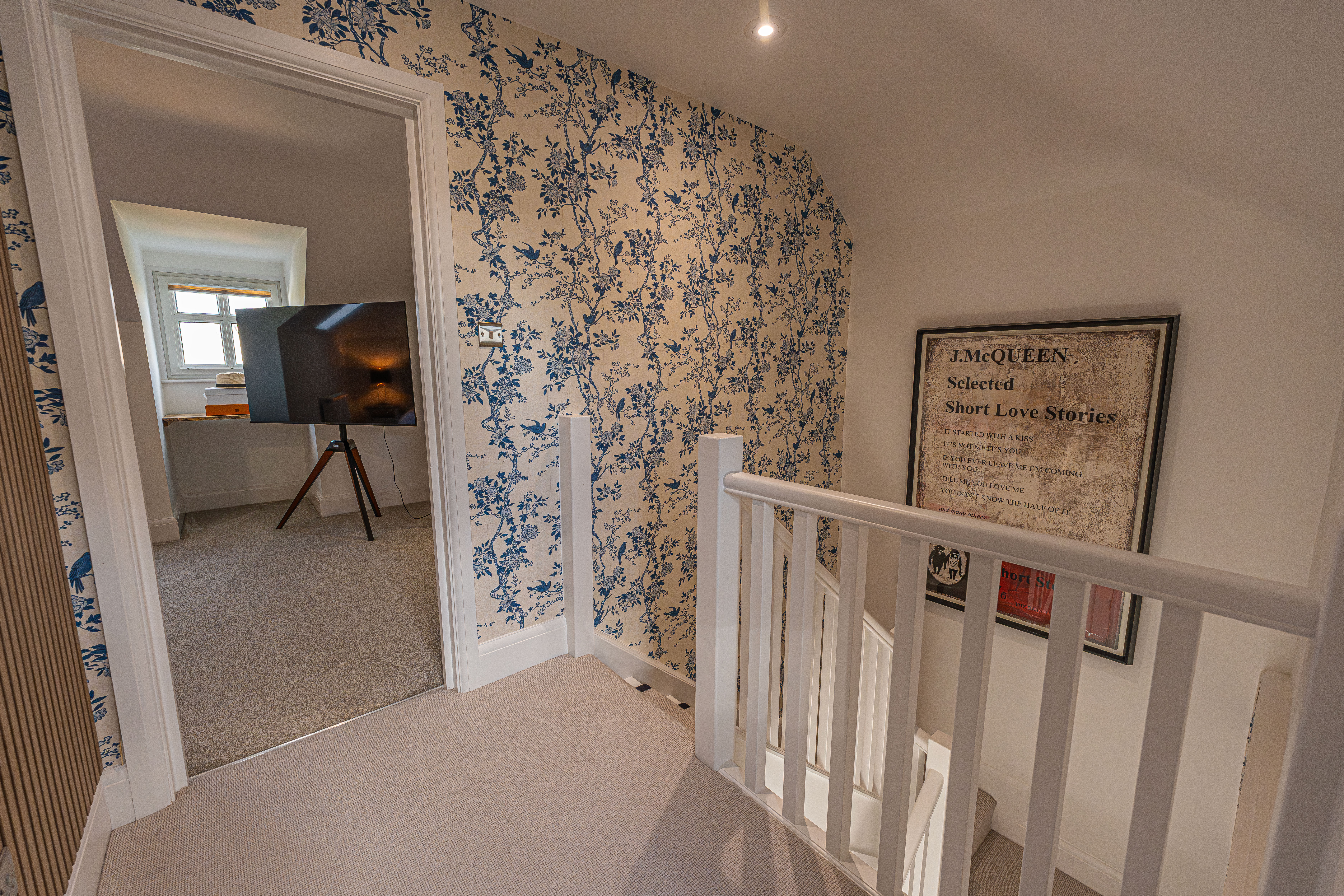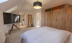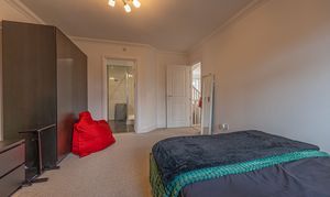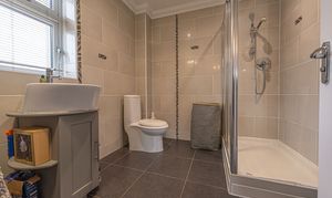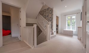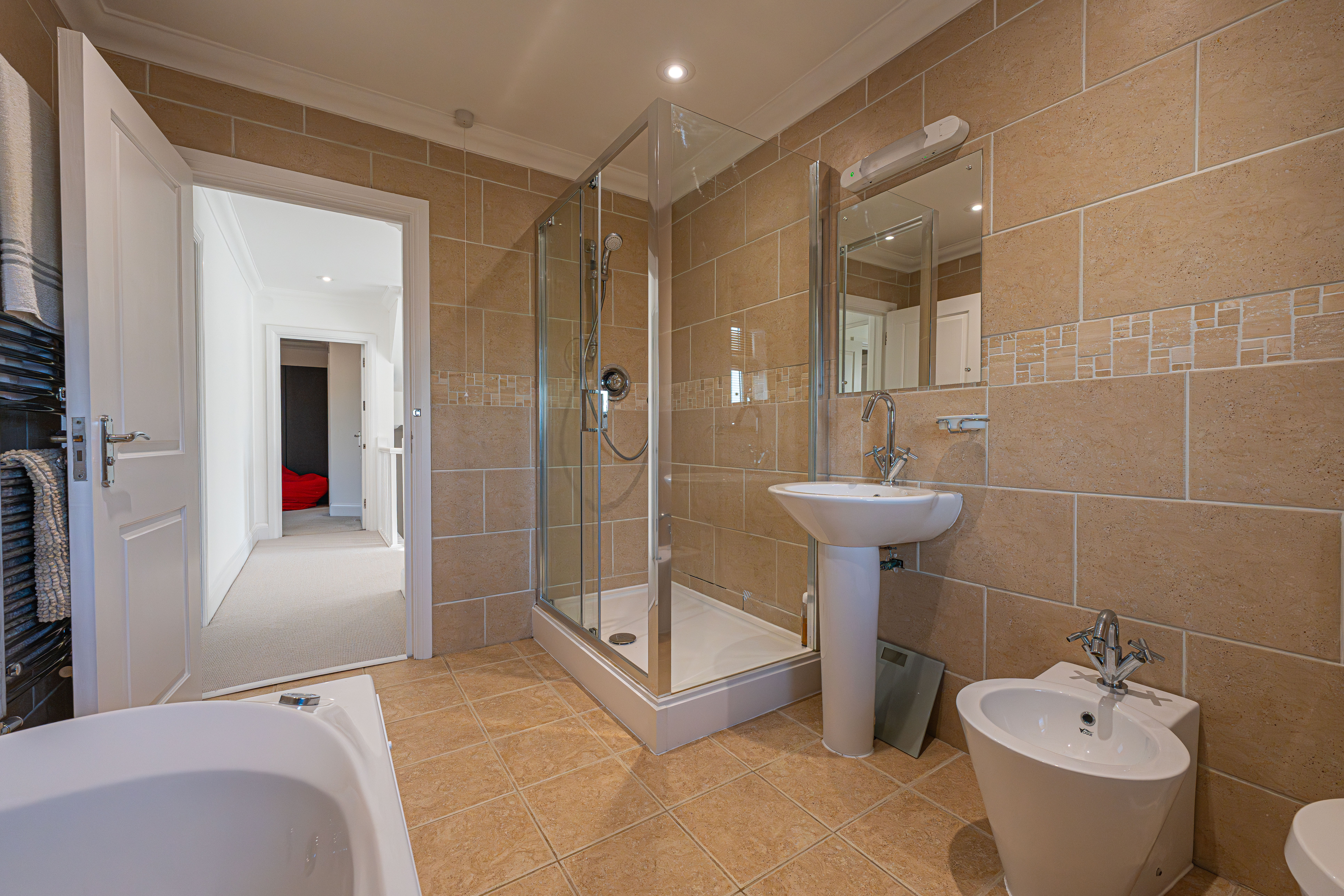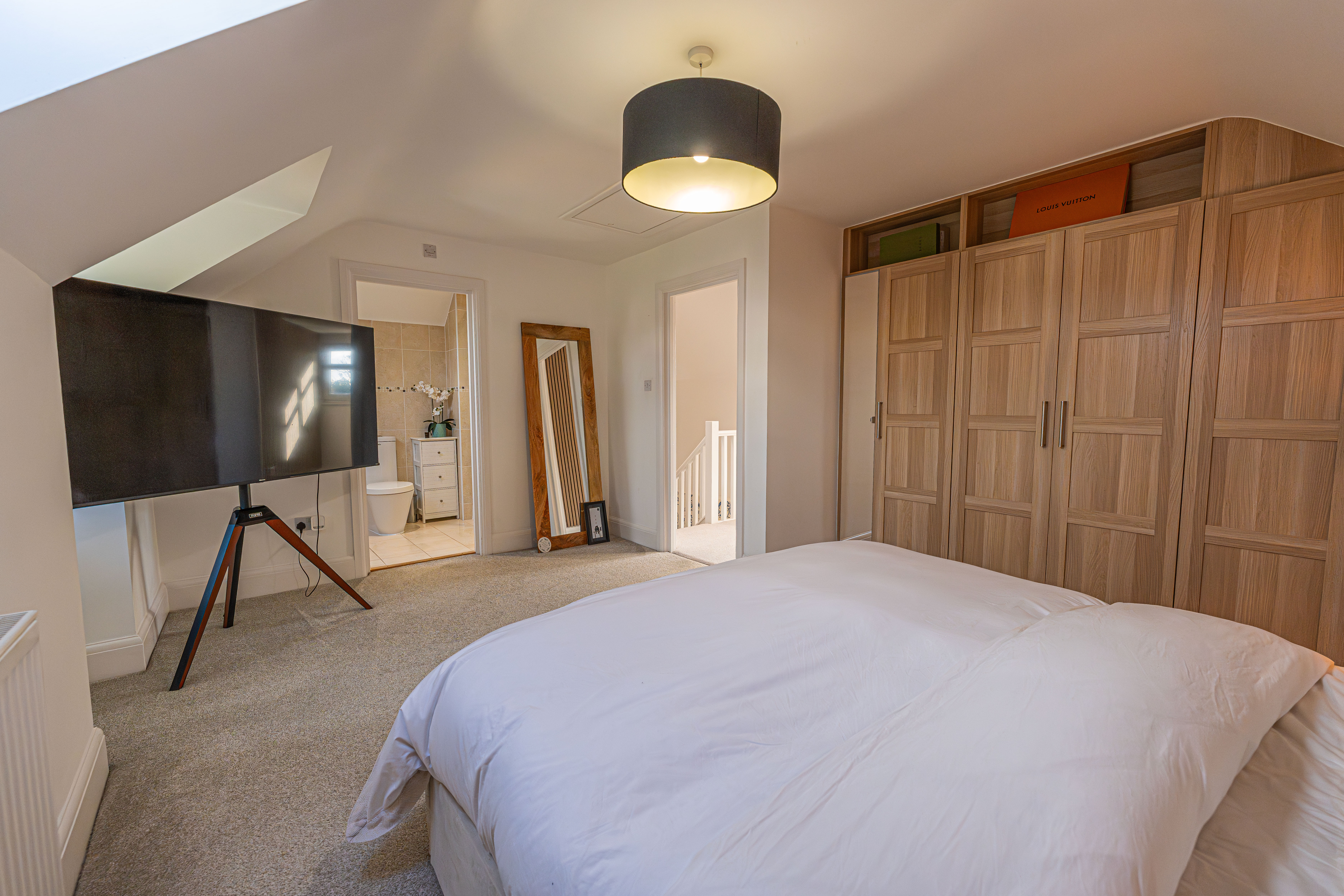 Ascending to the first floor we can find four generously sized double bedrooms, which are highlighted with modern décor, plush carpeting, and abundant natural light streaming in through the many windows , enhancing the stylish ambience throughout. Two of the bedrooms found on the first floor are equipped with en-suite shower rooms for added convenience, including one bedroom that also enjoys an attached dressing room which is ideal for a walk in wardrobe space. The first floor also showcases a large open hallway, which connects to a useful airing cupboard and the family bathroom, which is equipped with a bath suite, toilet, bidet, and a separate shower unit. This incredible property also features a second floor, which is occupied solely by the fifth and final bedroom, which has the added benefit of built-in wardrobes and another en-suite for added luxury.