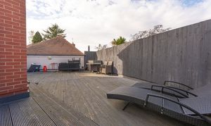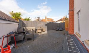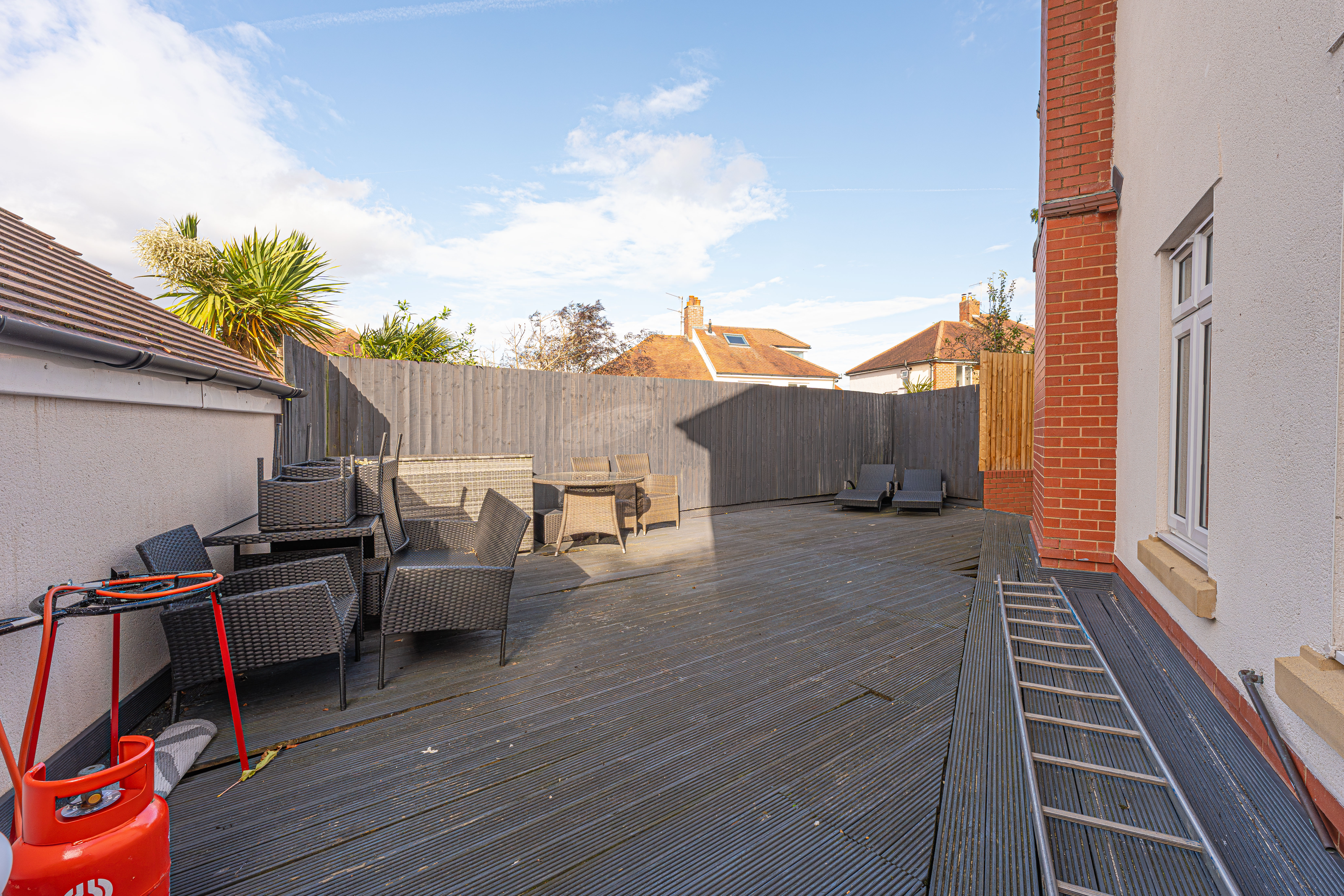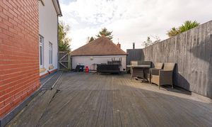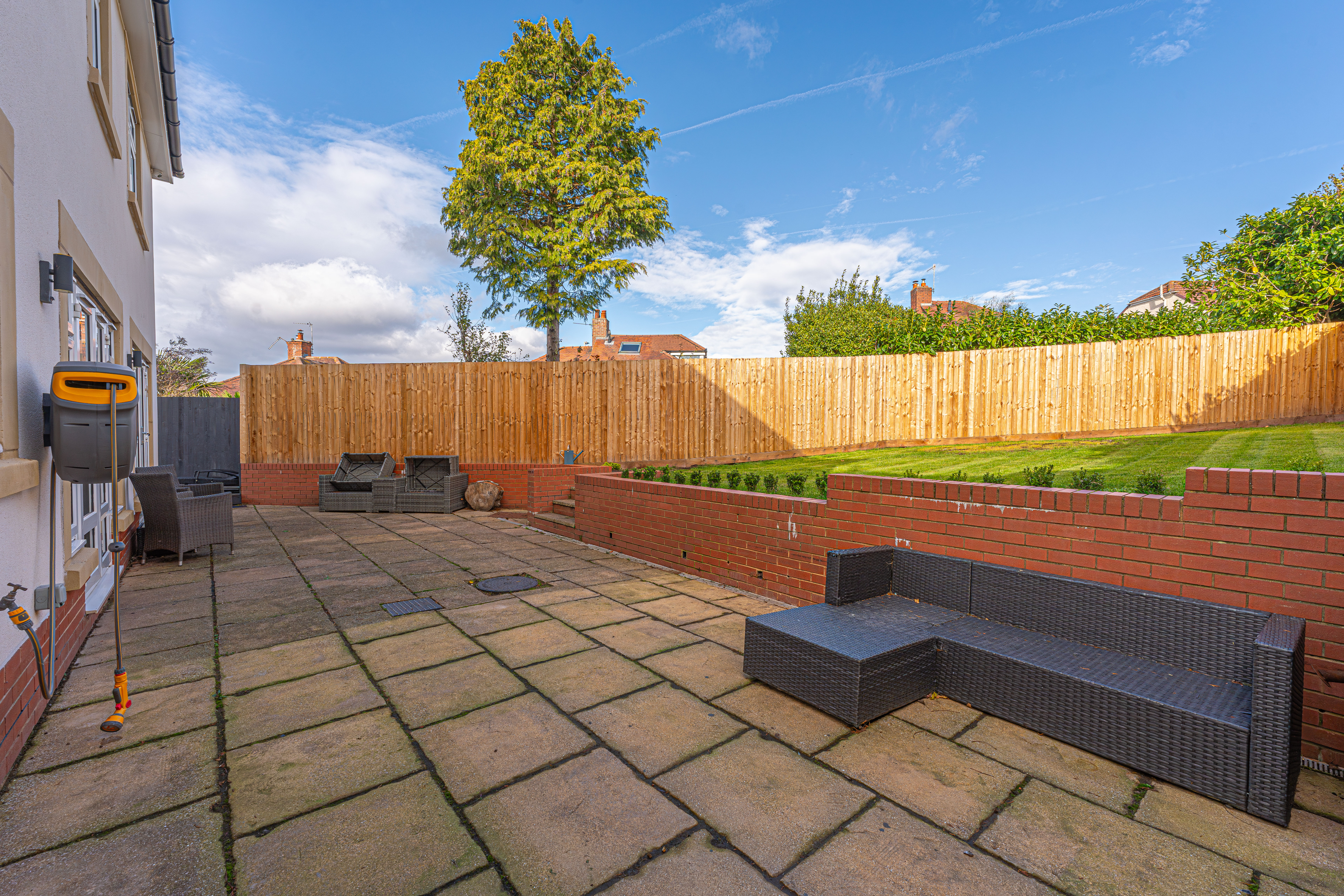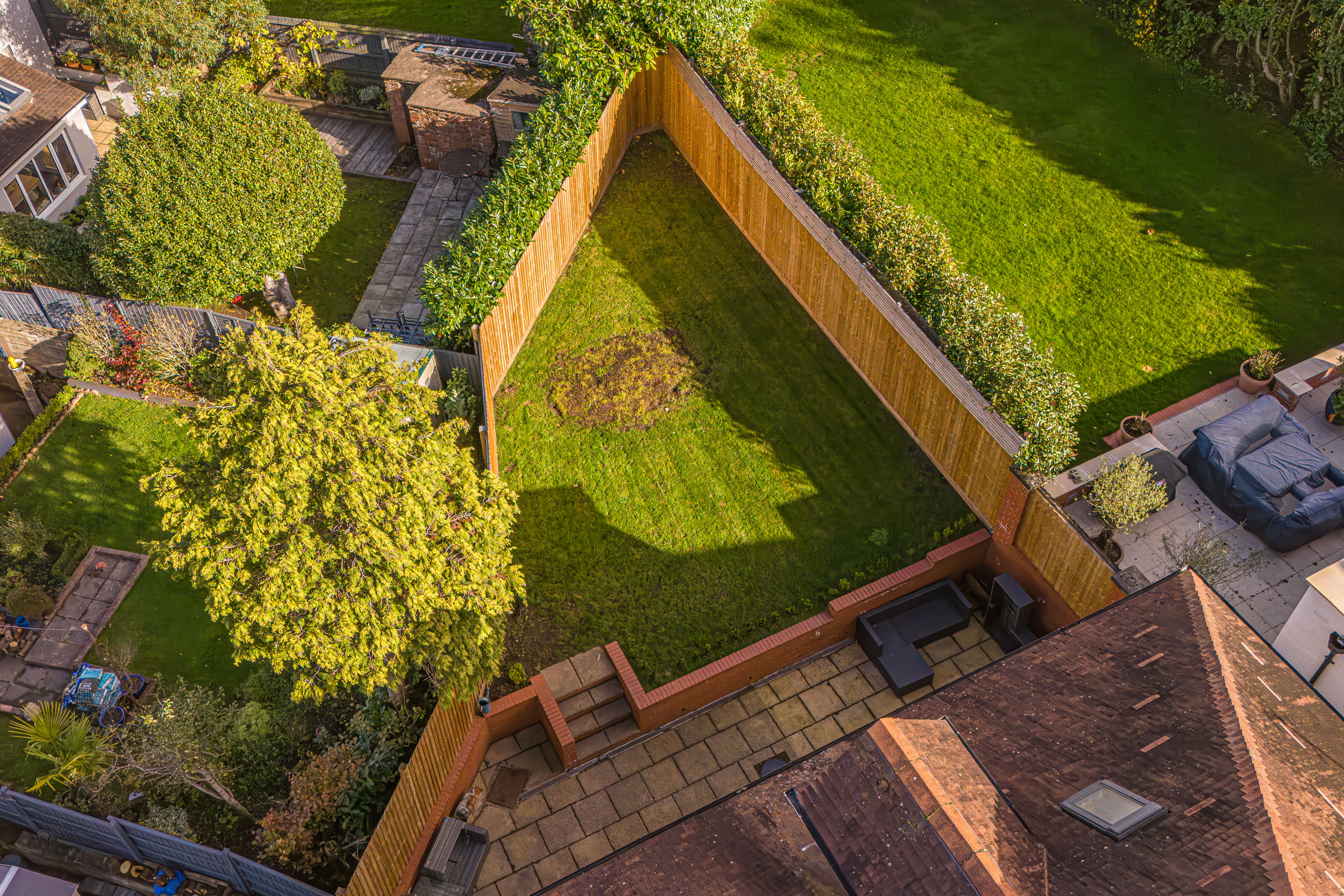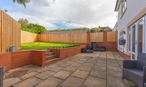 Stepping outside we can find the glorious rear gardens, featuring a large patio and lawn to the rear, and a sizeable wooden deck to the side of the house, highlighting an abundance of space to enjoy in the company of friends and family. This tranquil garden retreat is also fully enclosed and minimally overlooked, ensuring a great deal of privacy for residents to relax in the sunshine and enjoy a wide range of activities in peace. To the front of the house we can ample driveway space, with an estimated parking capacity of around 4-5 vehicles, not including the impressive double garage, which can provide further parking, storage, or fantastic multi-functional space thanks to the available lights and power outlets. The property also lies within a secure gated entrance for added security.