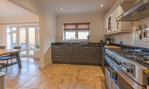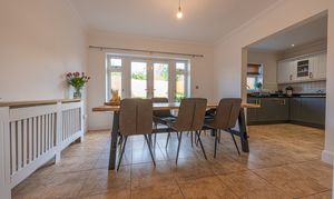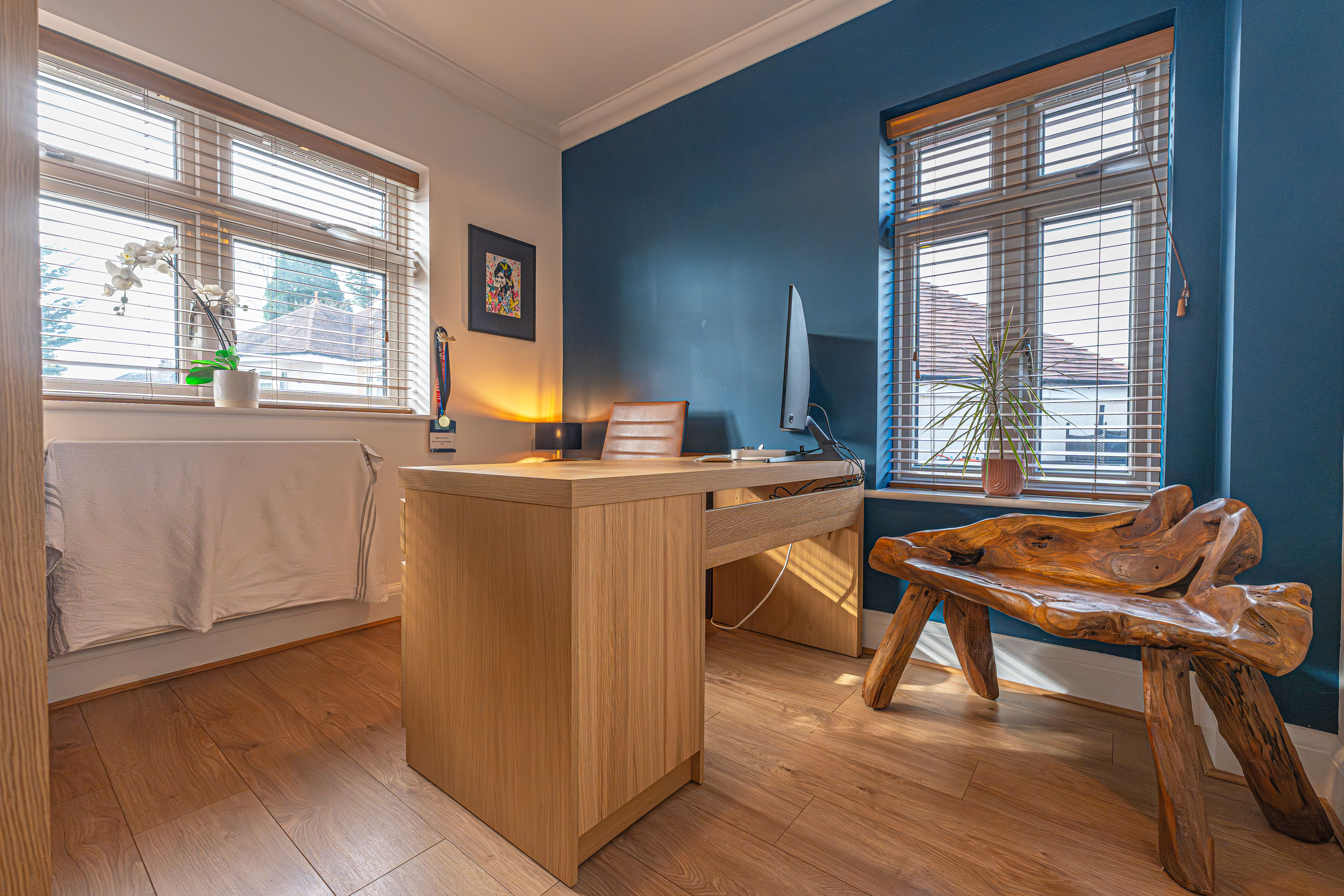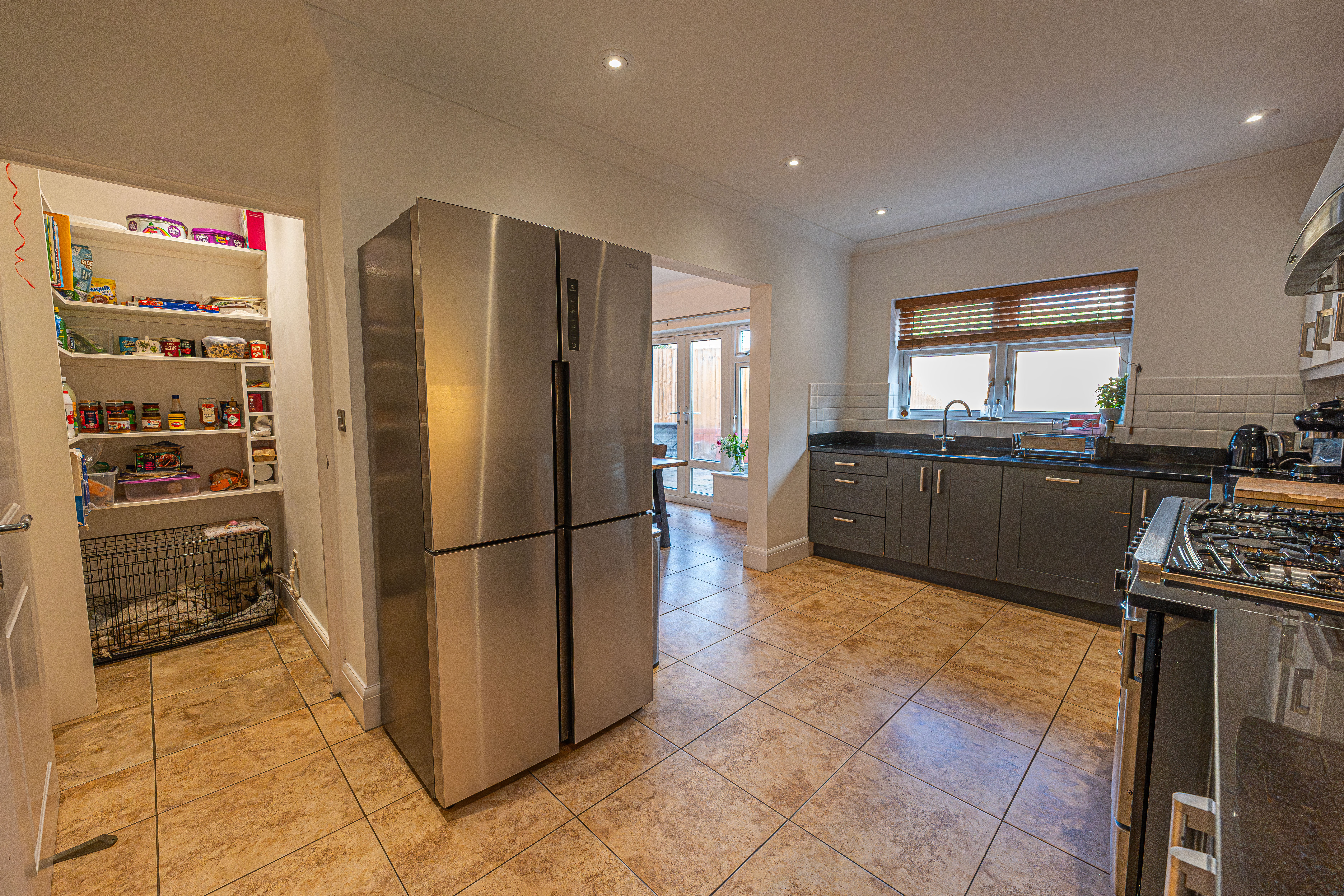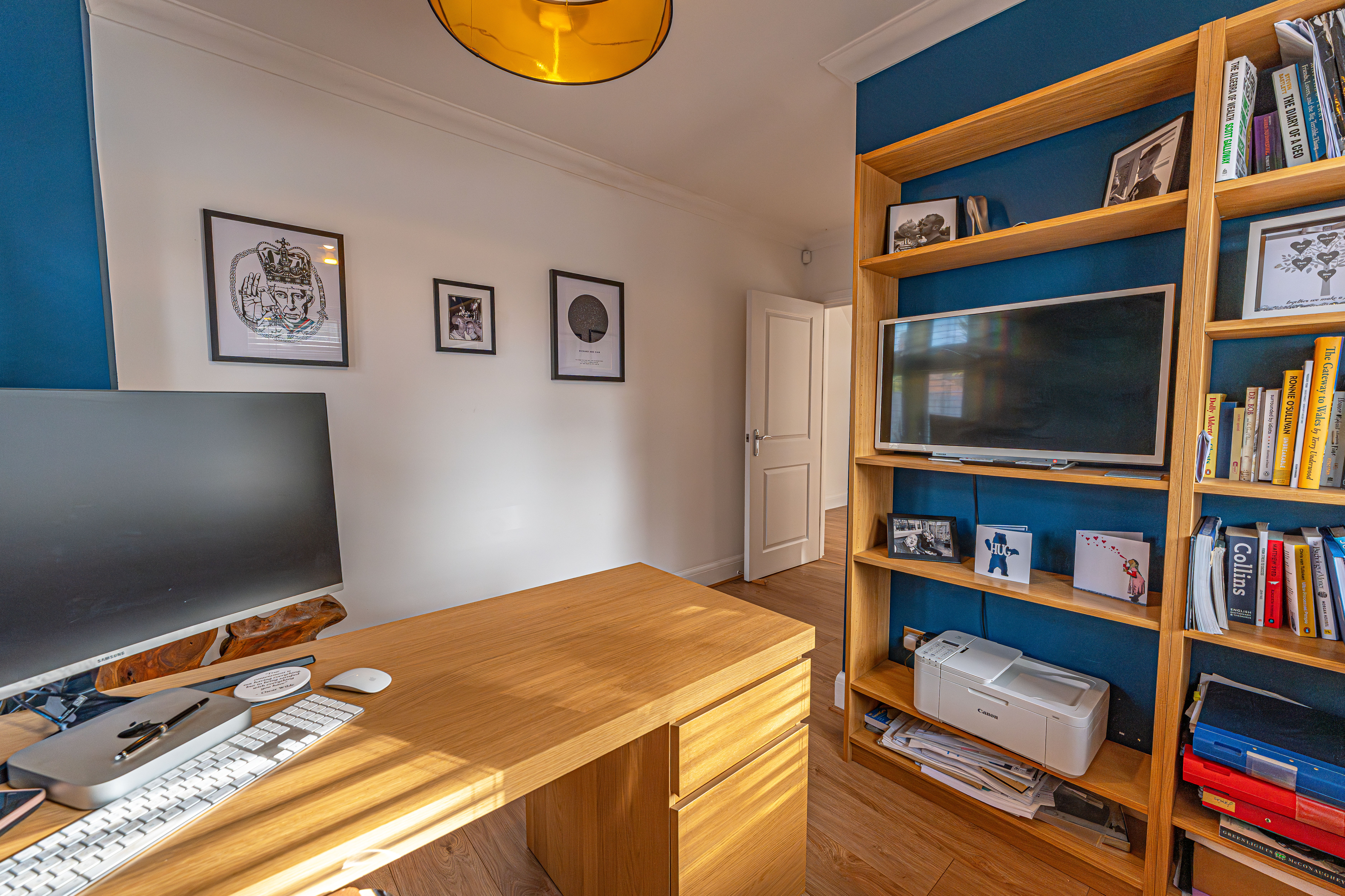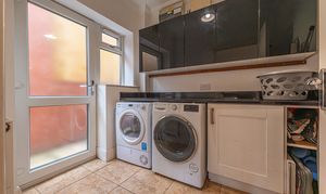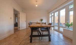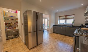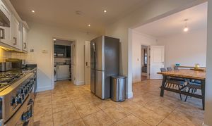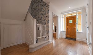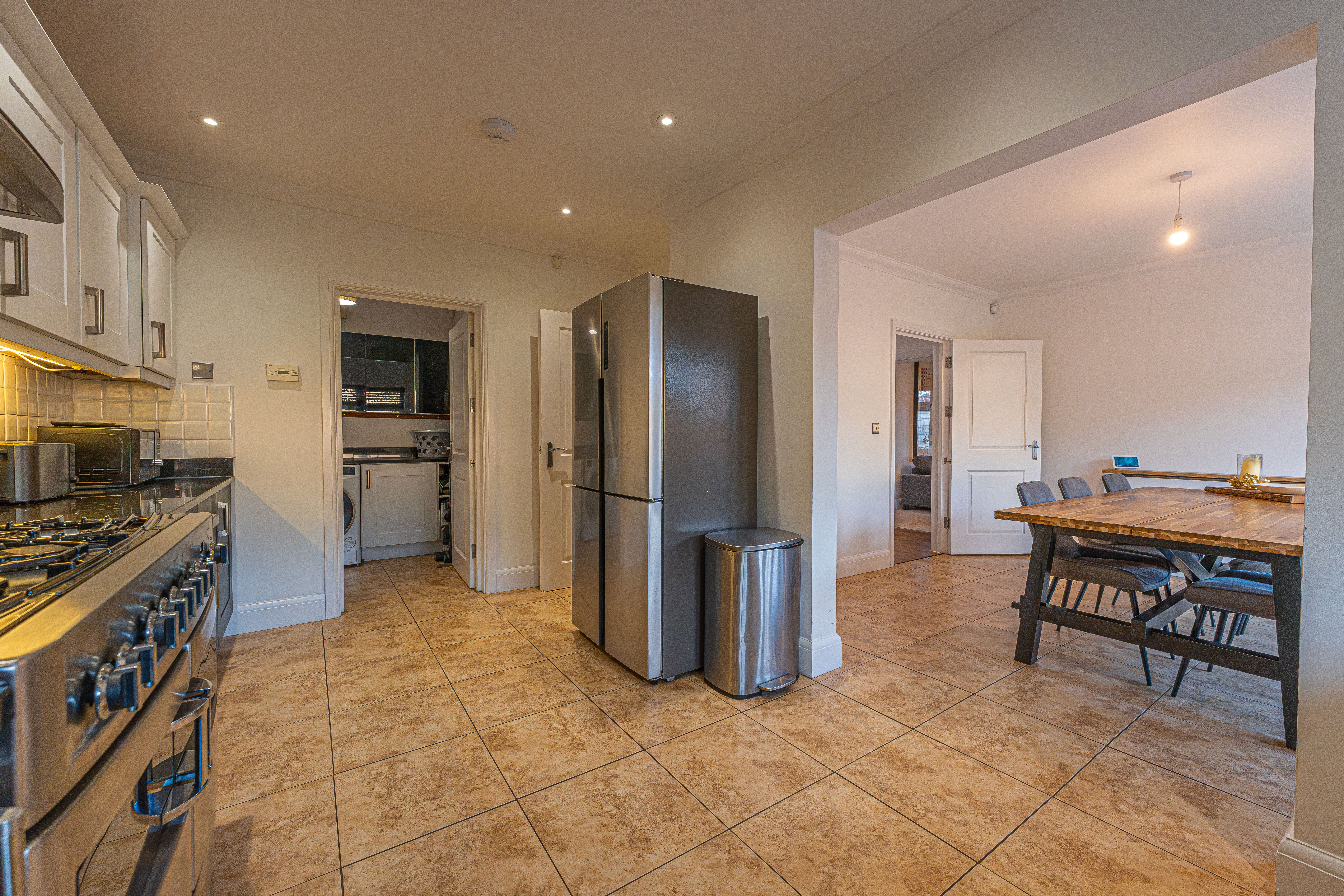 This prestigious family home offers an expansive and versatile layout, perfect for modern family living, with five bedrooms, four bathrooms and four reception rooms across the incredible property. Upon entry to the front of the house we are greeted by a large entry foyer, which leads to multiple reception rooms, which are all well lit and sized to offer an abundance of flexible living space. The main family room is found at the rear of the house with a spacious design, and French doors that open to the garden, creating a warm and sophisticated atmosphere ideal for both relaxation and entertaining. The neighbouring dining room also features double doors to the garden, as well as connecting via a fluid open plan design to the well appointed kitchen. which offers a wide array of storage fixtures and room for appliances, with further reinforcement from a neighbouring utility room and pantry cupboard. To the front of the house we can find two more reception rooms to enjoy, with a bay fronted sitting room and a marvellous home office with dual aspect windows, allowing both rooms to be flooded by natural light. The ground floor also offers understairs storage and a sleek W.C from the entry hallway, before ascending to the first floor.