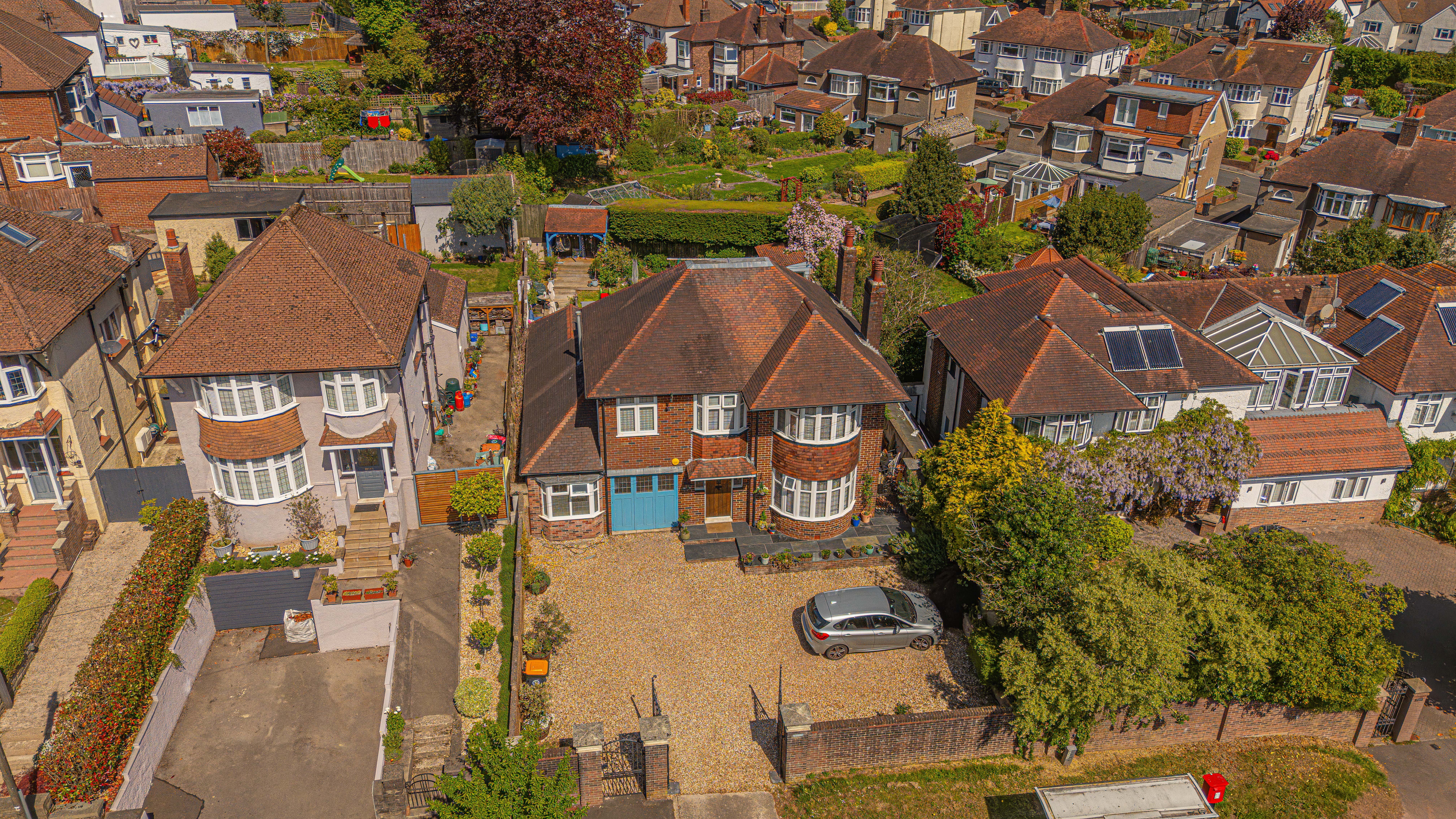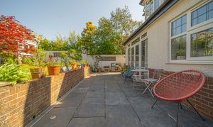 Stepping outside we arrive at the incredible rear garden, which offers an abundance of outdoor space to be enjoyed in the sunshine, whether it be relaxing at the end of a long day, or welcoming guests for tea/coffee or dining al-fresco style. The garden is fully enclosed, and comprises of a spacious patio from the house, with a fantastic grass lawn beyond, adorned with a lovely range of shrubs and flowers to enhance this garden paradise. The garden is also found with a charming wooden deck and a sheltered pergola, perfect for entertaining. A useful cabin can provide further storage of bikes, tools and garden furniture, while also being fitted with electricity, allowing it to be used as a lovely summerhouse, office or workshop. At the front of the house there is a large driveway that can provide off-road parking for at least four vehicles, with gated access controlled by remote.