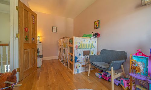 Ascending to the first floor we can find the four bedrooms, which are all generously proportioned double rooms, several of which enjoying gorgeous bay windows that flood the room with light. Two of the bedrooms come with fitted wardrobes for convenient storage, while we can find the sleek family bathroom from the hallway, with a bath suite and overhead shower.