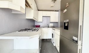 The bay window lounge is bright and spacious, featuring traditional proportions and direct access to the rear-facing kitchen. The double bedroom offers generous dimensions and houses a shower area, with a gas combi boiler neatly stored within a cupboard. A galley-style WC with a white two-piece suite completes the internal layout.