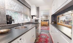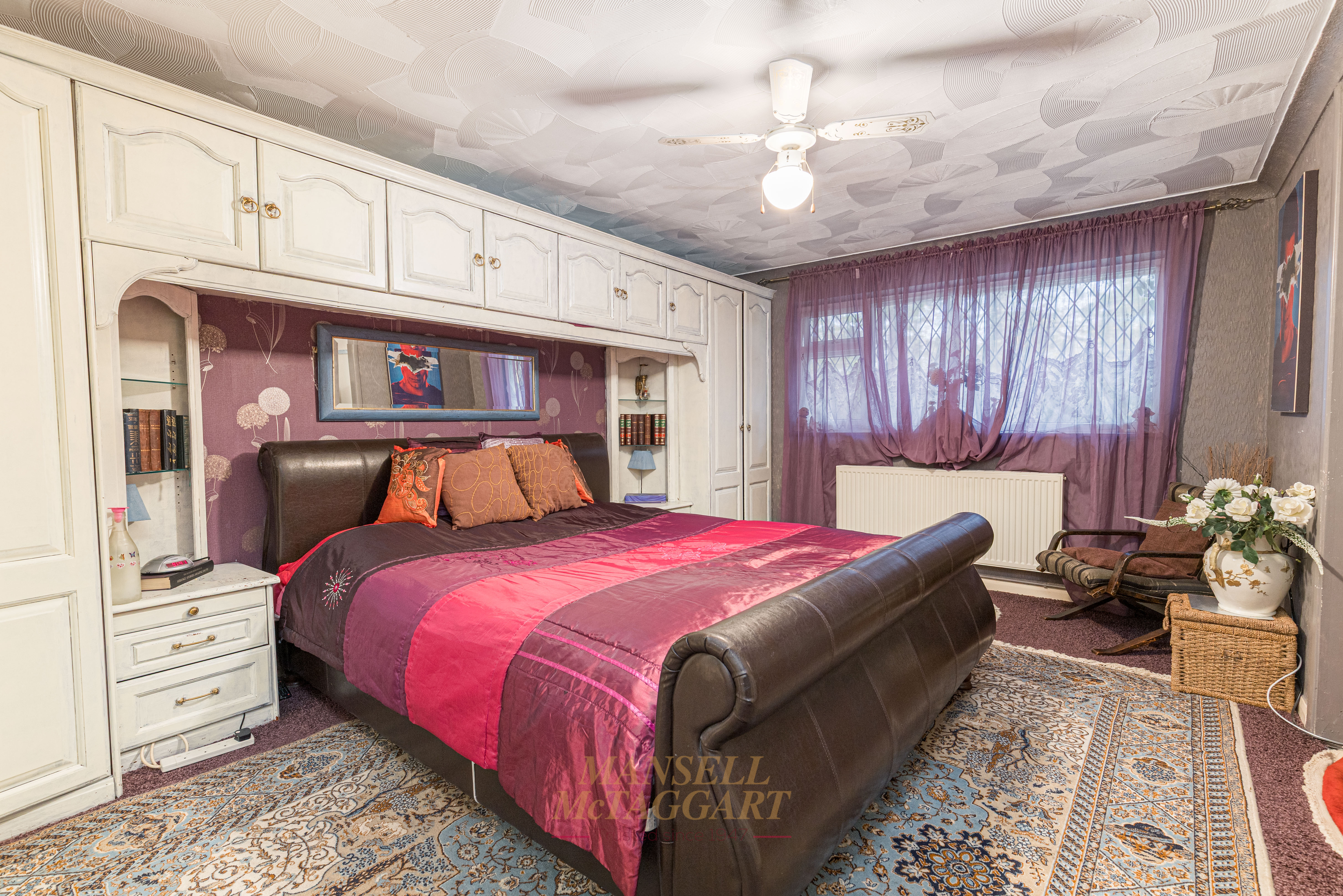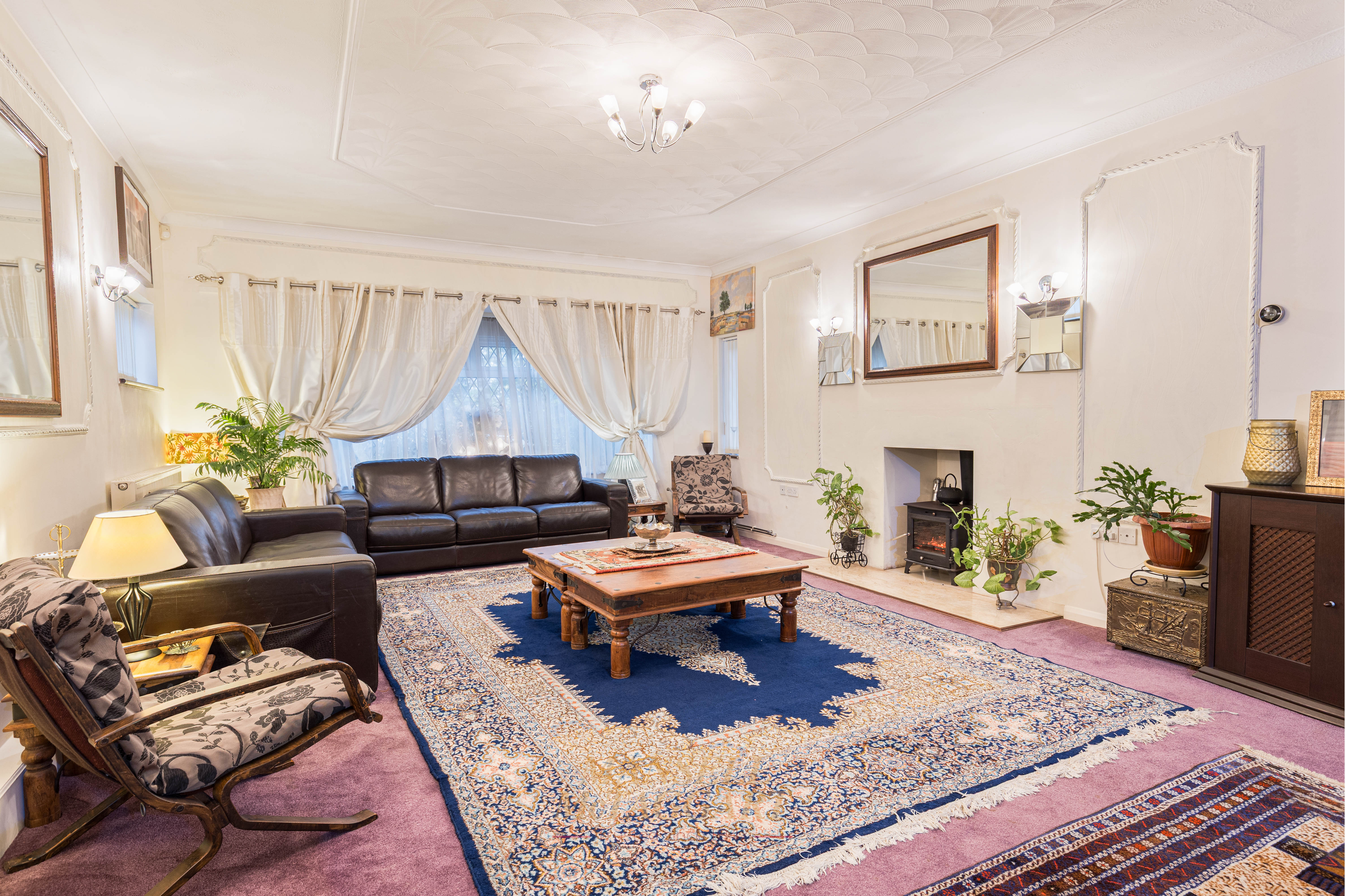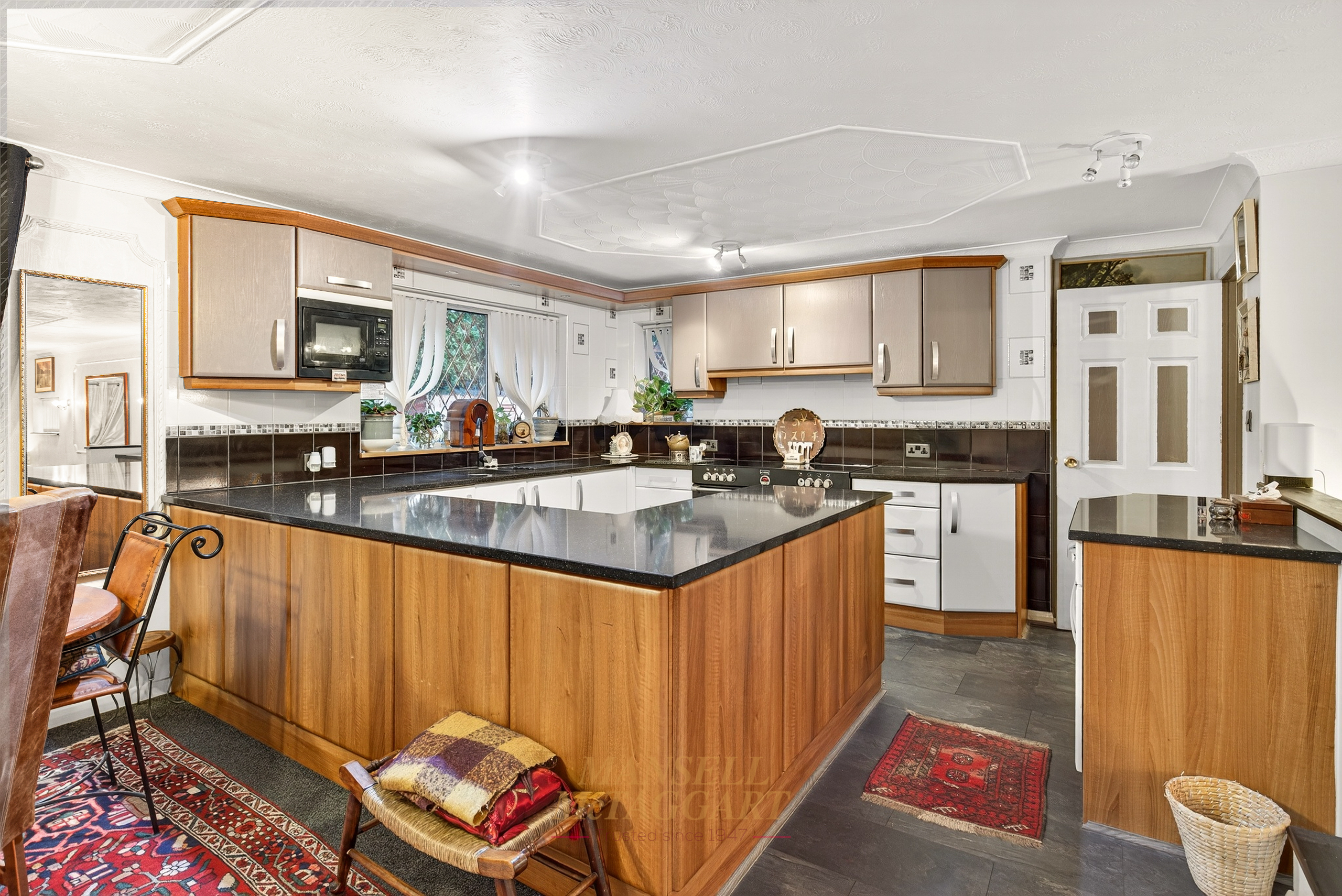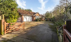 The property which extends to approx. 1800 sq. ft. has access via wooden gates leading to a large driveway with parking for several cars, flanked by an area of shrub and flower beds, with side gate leading to a rear garden which is mainly laid to patio, interspersed with attractive shrub and flower beds, sunken seating area, feature ornate pond, the large ferns provide a high degree of privacy. The property which has been redesigned by the current owner overlooking woodland beyond, comprises of a large entrance hall with plenty of space for shoes and coats. This leads to large L shape hallway. To the left there is a light and airy living room which is double aspect, with plenty of space for a large L-shaped 6-seater sofa or two 3 seater sofas incorporating a lovely cast iron log burner. This has steps leading up to a light and airy and well-designed refitted kitchen/dining room with window and door overlooking the rear garden. The kitchen is fitted with an extensive range of wall and base units, sink unit, roll top work surfaces over, space for Rangemaster oven, plumbing and space for dishwasher and washing machine, breakfast bar with seating for 2 people and space for 6-person dining table. This leads to a utility room with wall and base units sink unit with rolltop worksurfaces over and window to rear. Inner lobby which leads to cloakroom with low level WC, wash hand basin and window to side. The garage has steps leading down from the inner lobby with double windows to side with scope for conversion (STPP). To the right of the property, you have a master bedroom which has space for freestanding wardrobes, king size bed and window to front. This has an en-suite with shower cubicle, low level WC, wash hand basin with storage under and extractor fan. Two further double bedrooms again with plenty of space for freestanding wardrobes and king size beds. The family bathroom is also of a good size with panelled bath, low level WC, wash hand basin with storage under and heated towel rail. Benefits include gas fired central heating, uPVC double glazing, recessed spotlights, several security lights and CCTV.